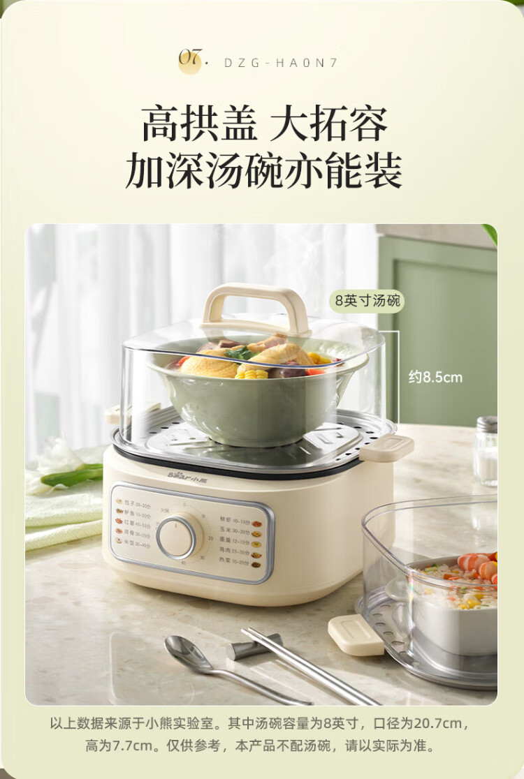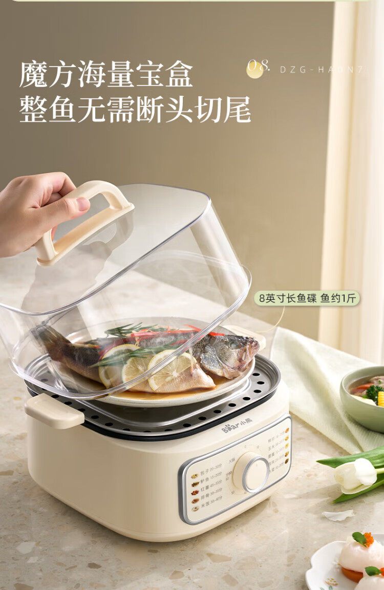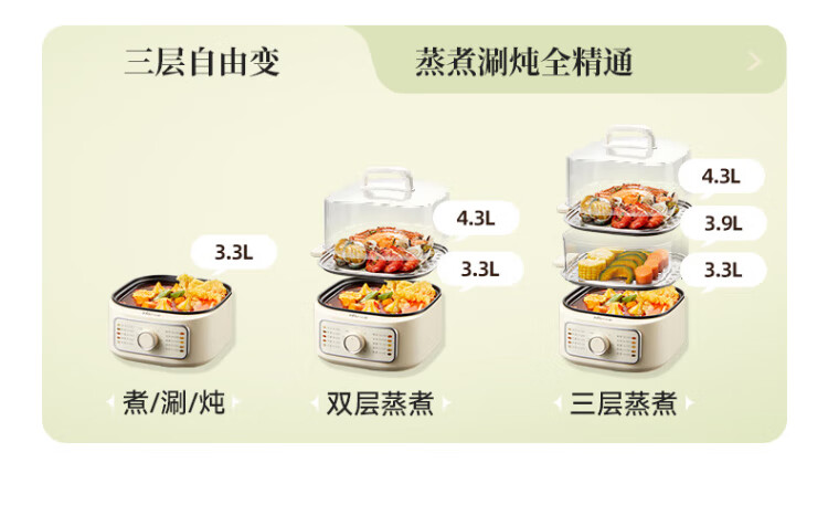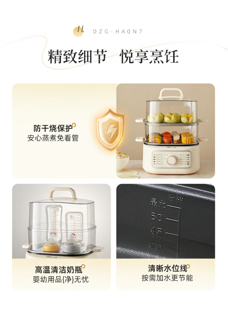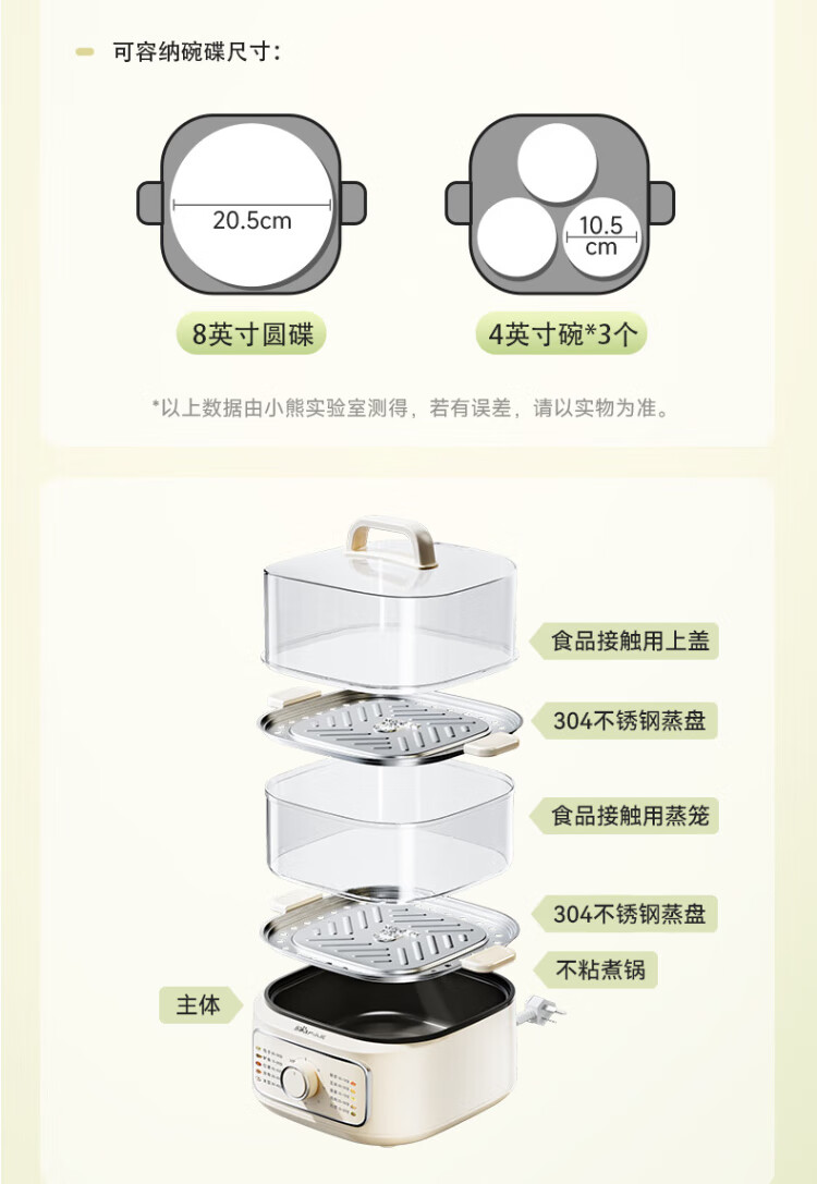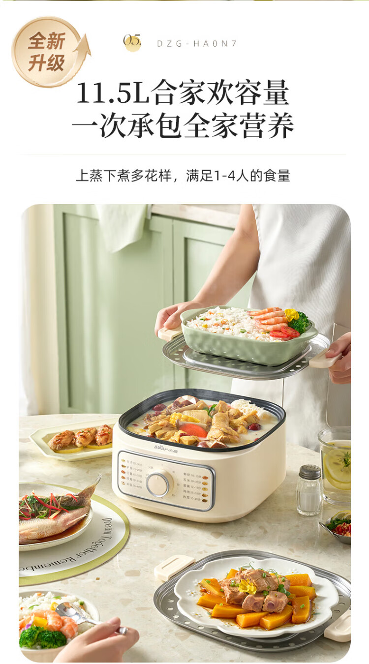 Bear electric steamer, household small, for 2-3 people, steaming and cooking integrated household electric pot, egg steamer, bun steamer, multifunctional pot 11.5L three-layer large capacity DZG-HA0N7
