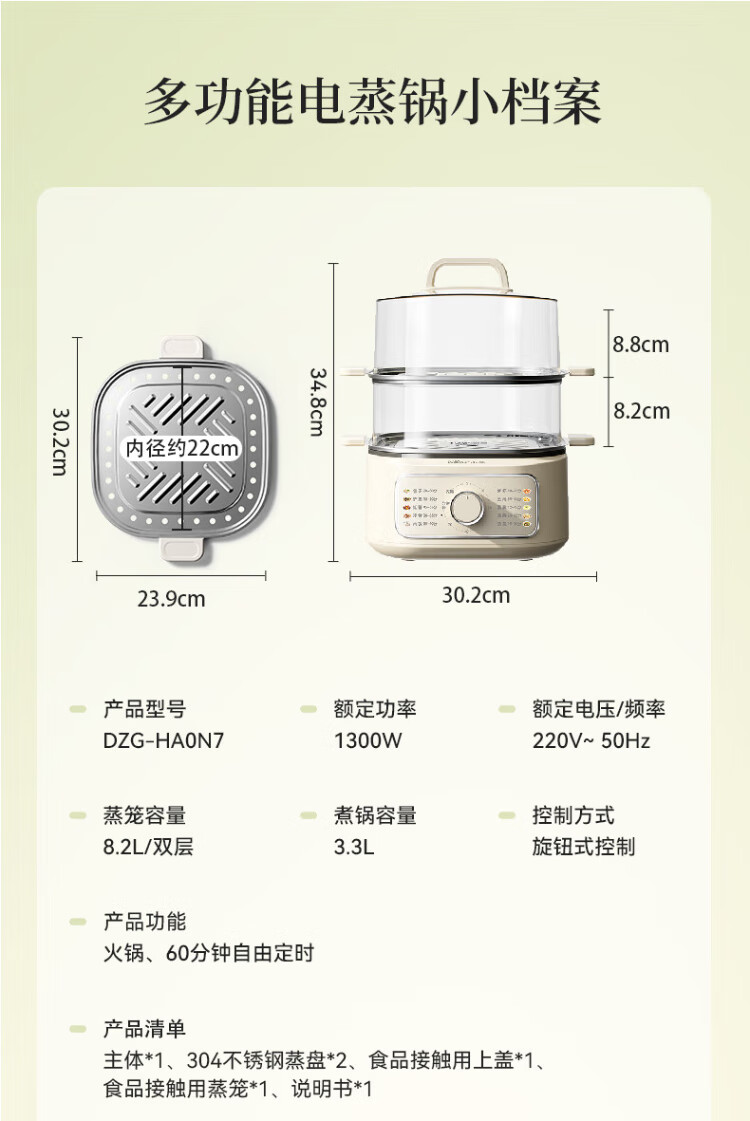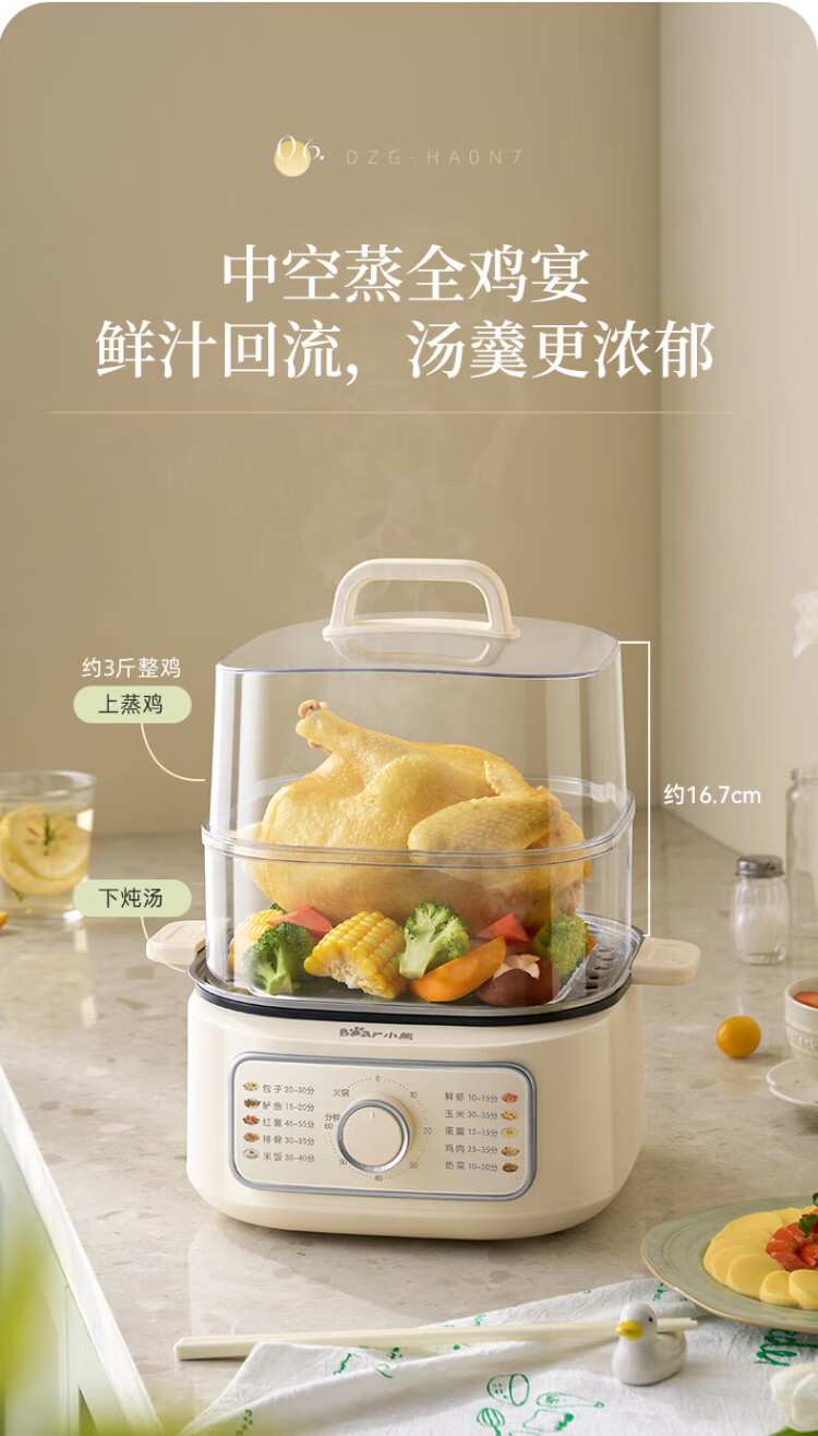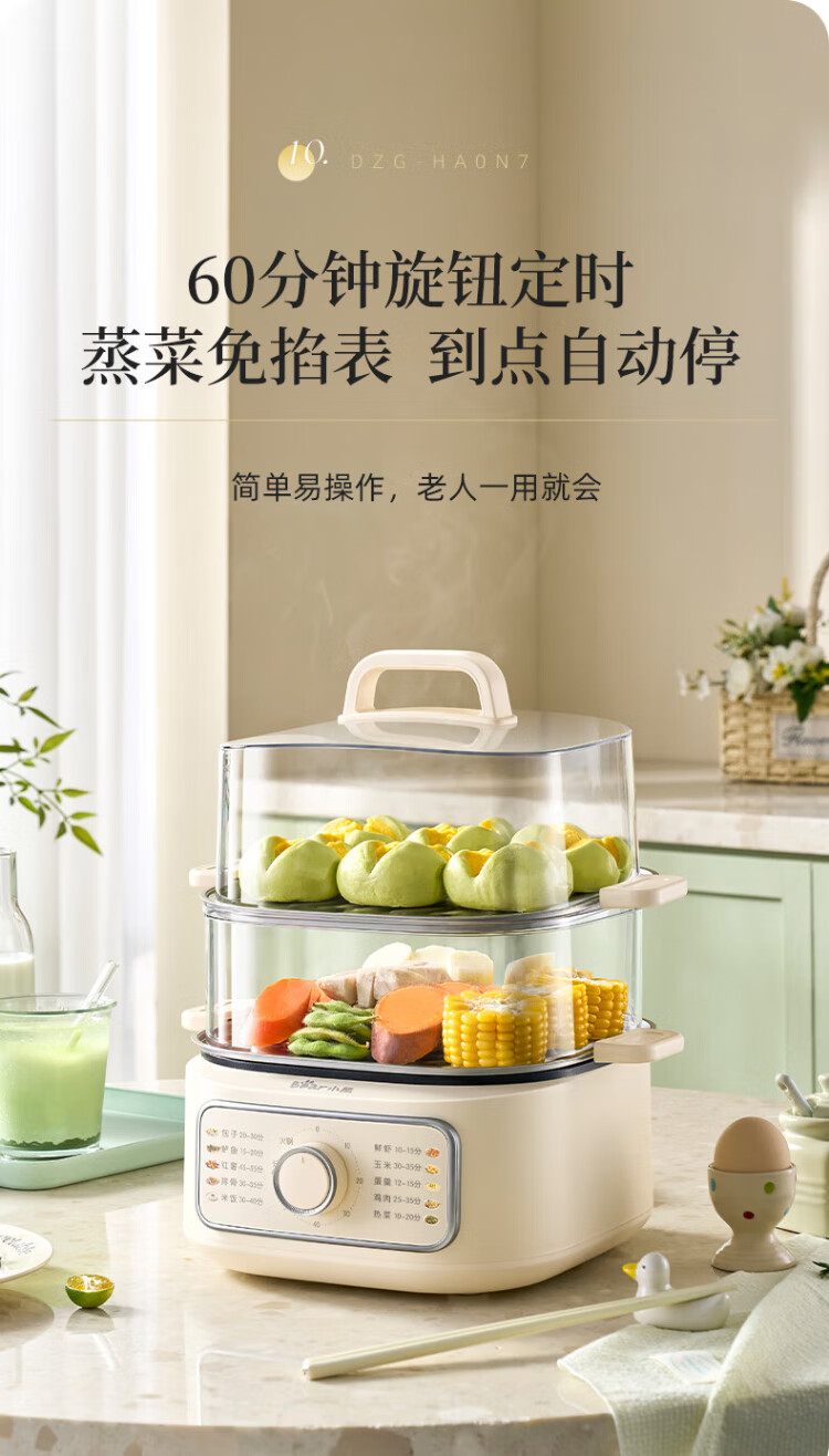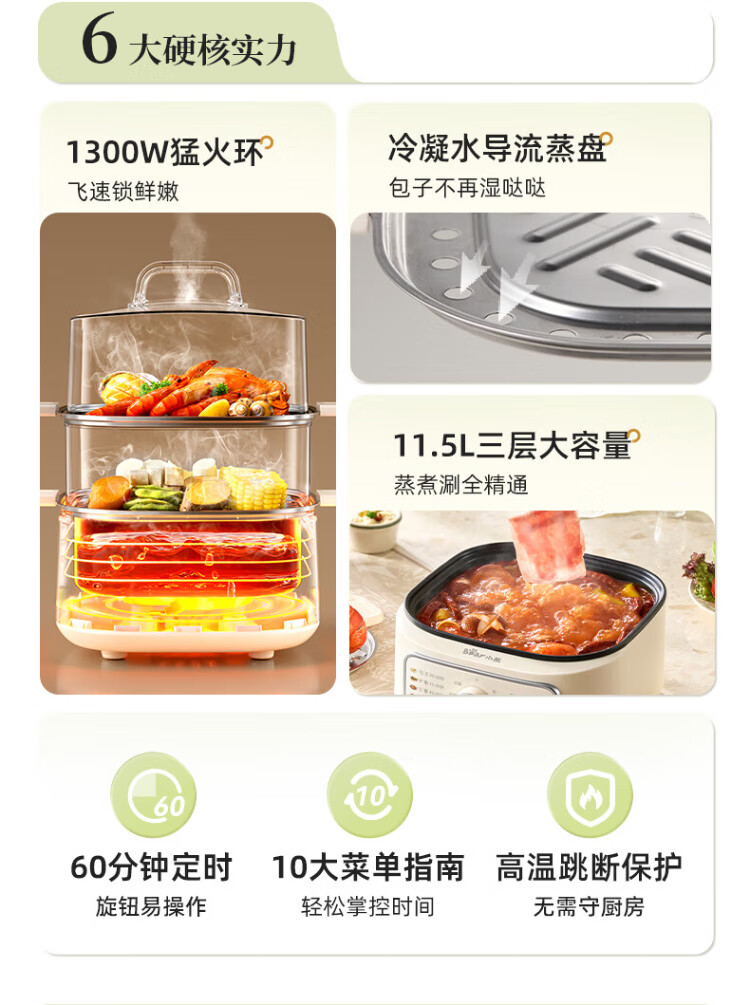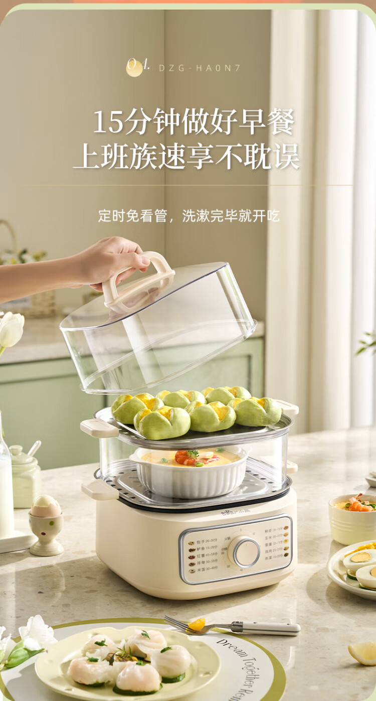 Bear electric steamer, household small, for 2-3 people, steaming and cooking integrated household electric pot, egg steamer, bun steamer, multifunctional pot 11.5L three-layer large capacity DZG-HA0N7