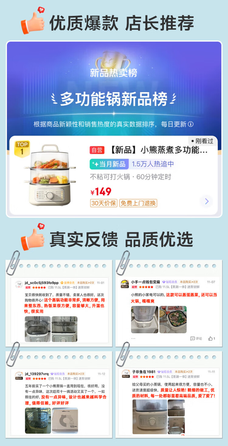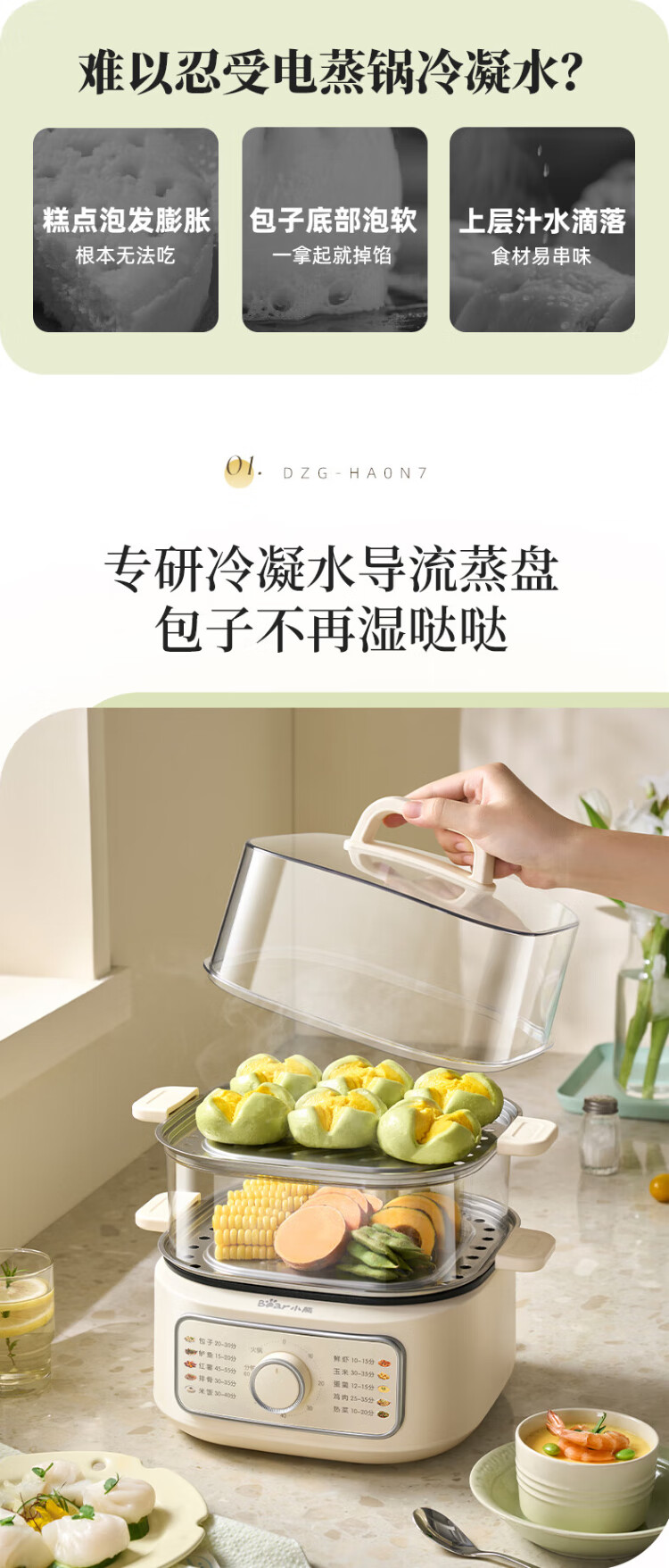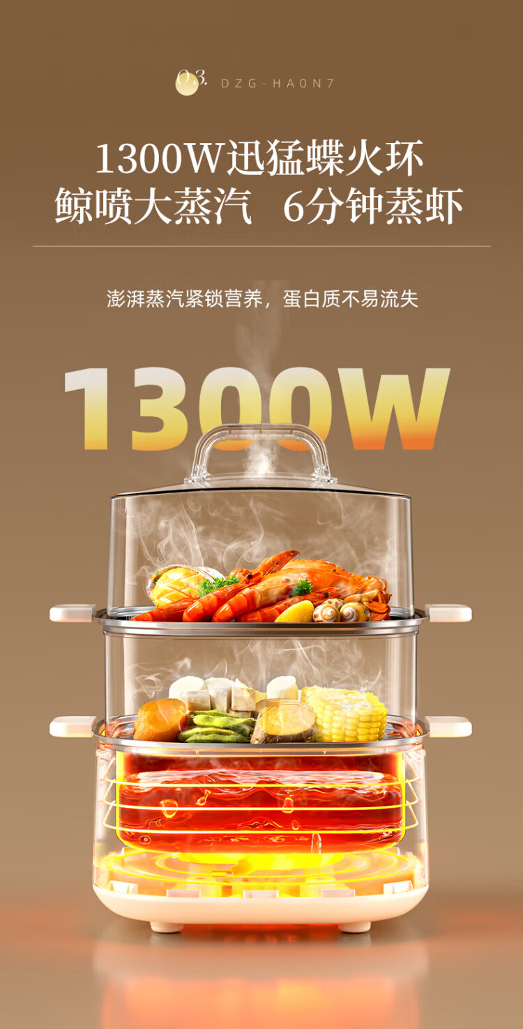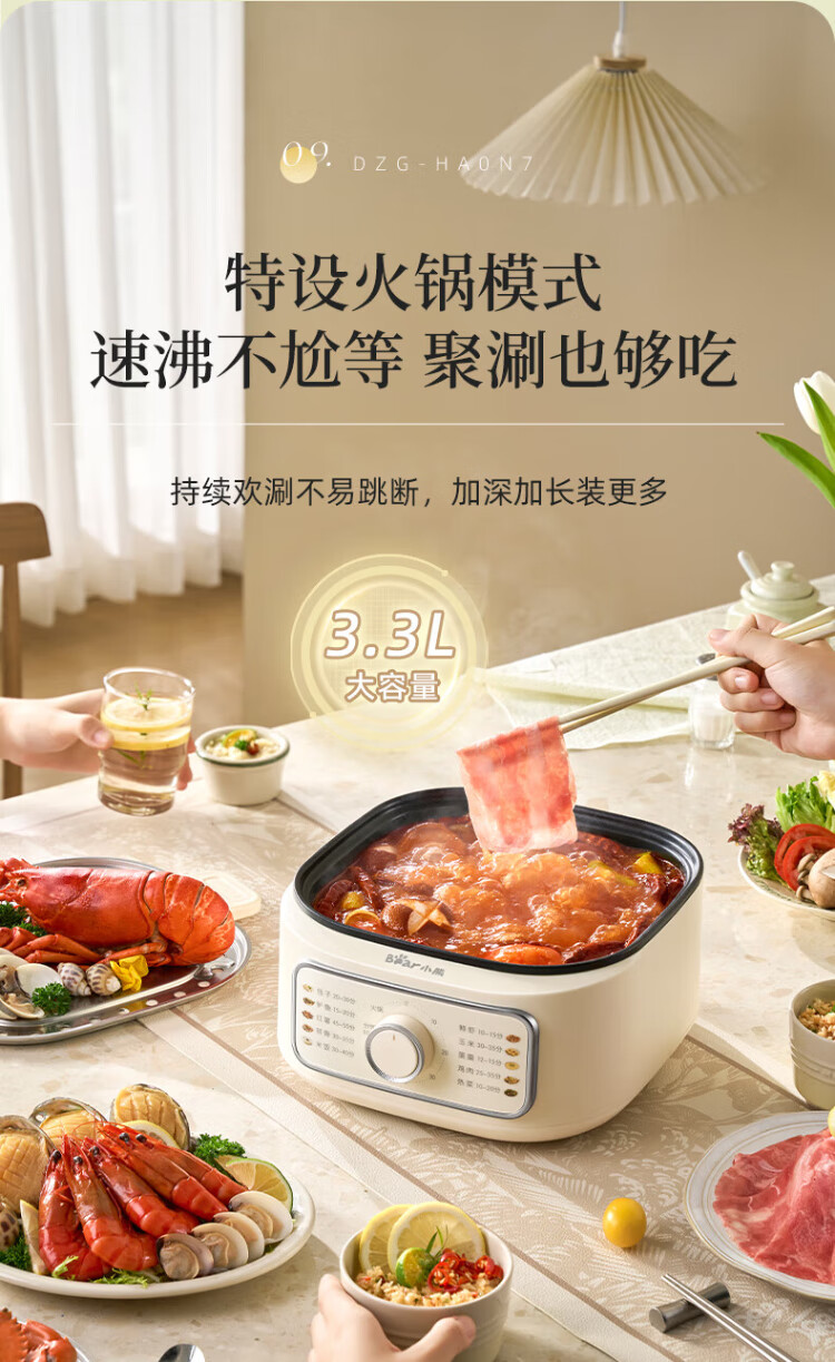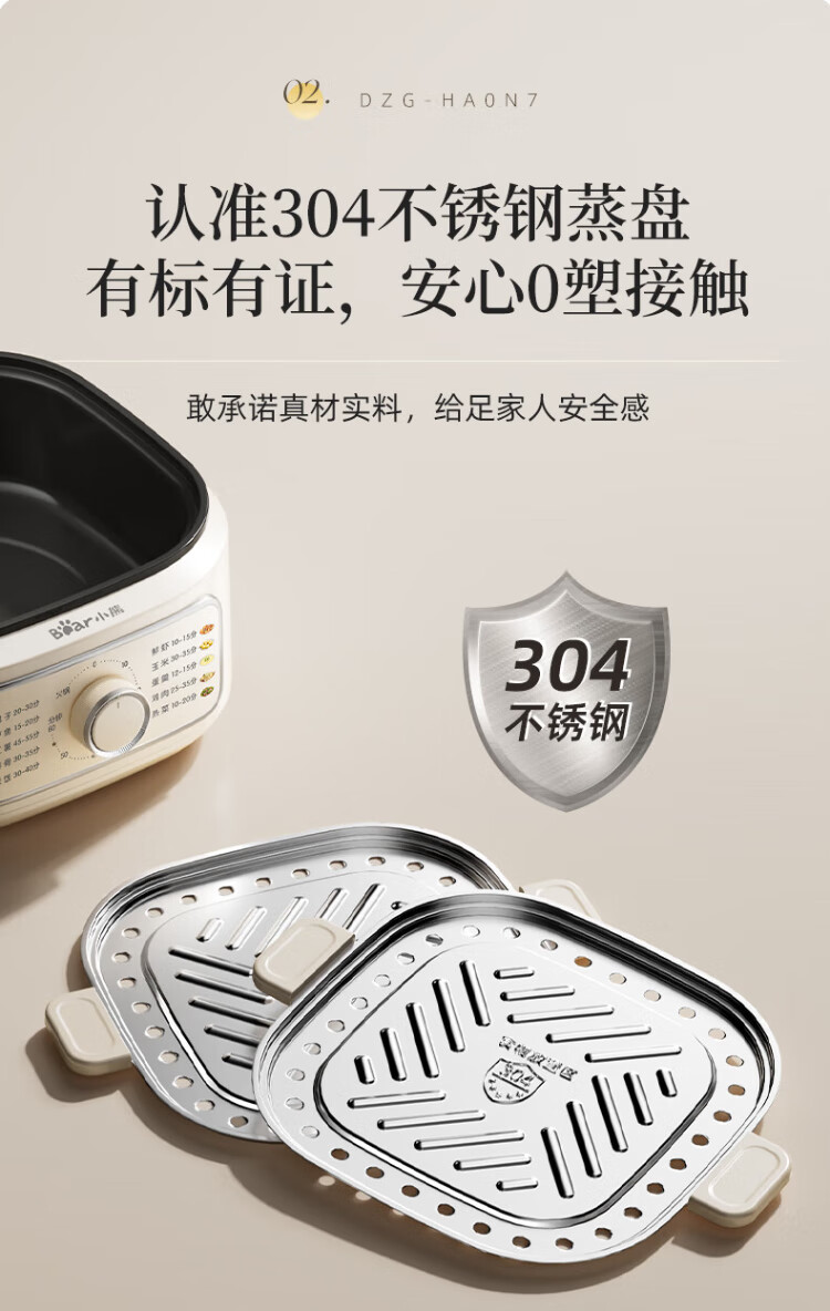Bear electric steamer, household small, for 2-3 people, steaming and cooking integrated household electric pot, egg steamer, bun steamer, multifunctional pot 11.5L three-layer large capacity DZG-HA0N7