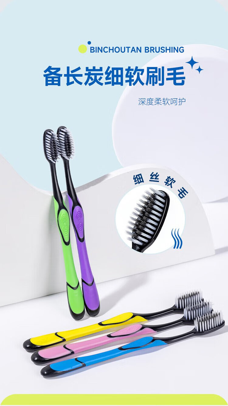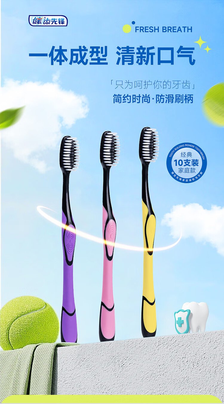 Jian brand adult round-head soft-bristled toothbrush with sharpened filaments to clean teeth and protect gums, 4 individually packaged