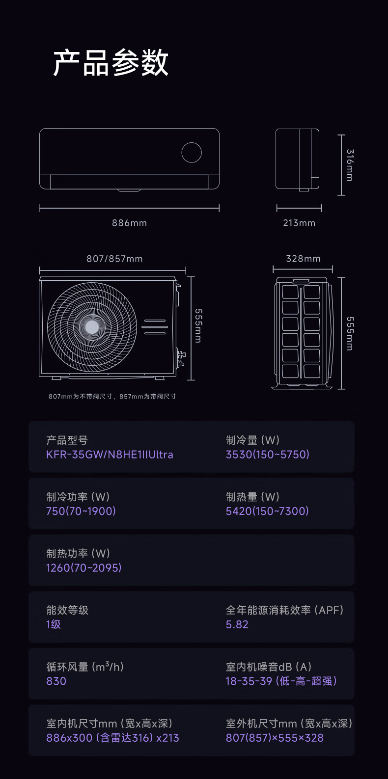 Hualing Air Conditioning Shenji Second Generation Ultra Large 1.5 HP First Class Energy Efficiency Double Row Copper Tube Intelligent Frequency Converter Hang-up Energy Saving KFR-35GW/N8HE1 Ultra Sky Blue