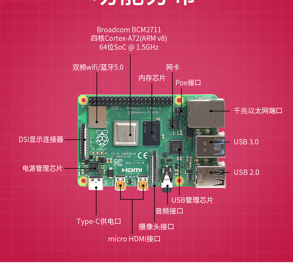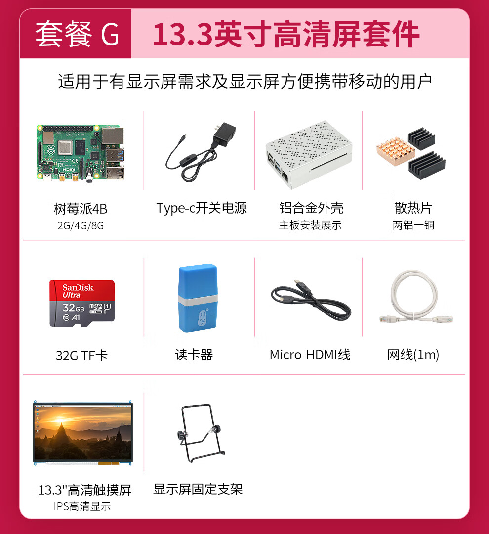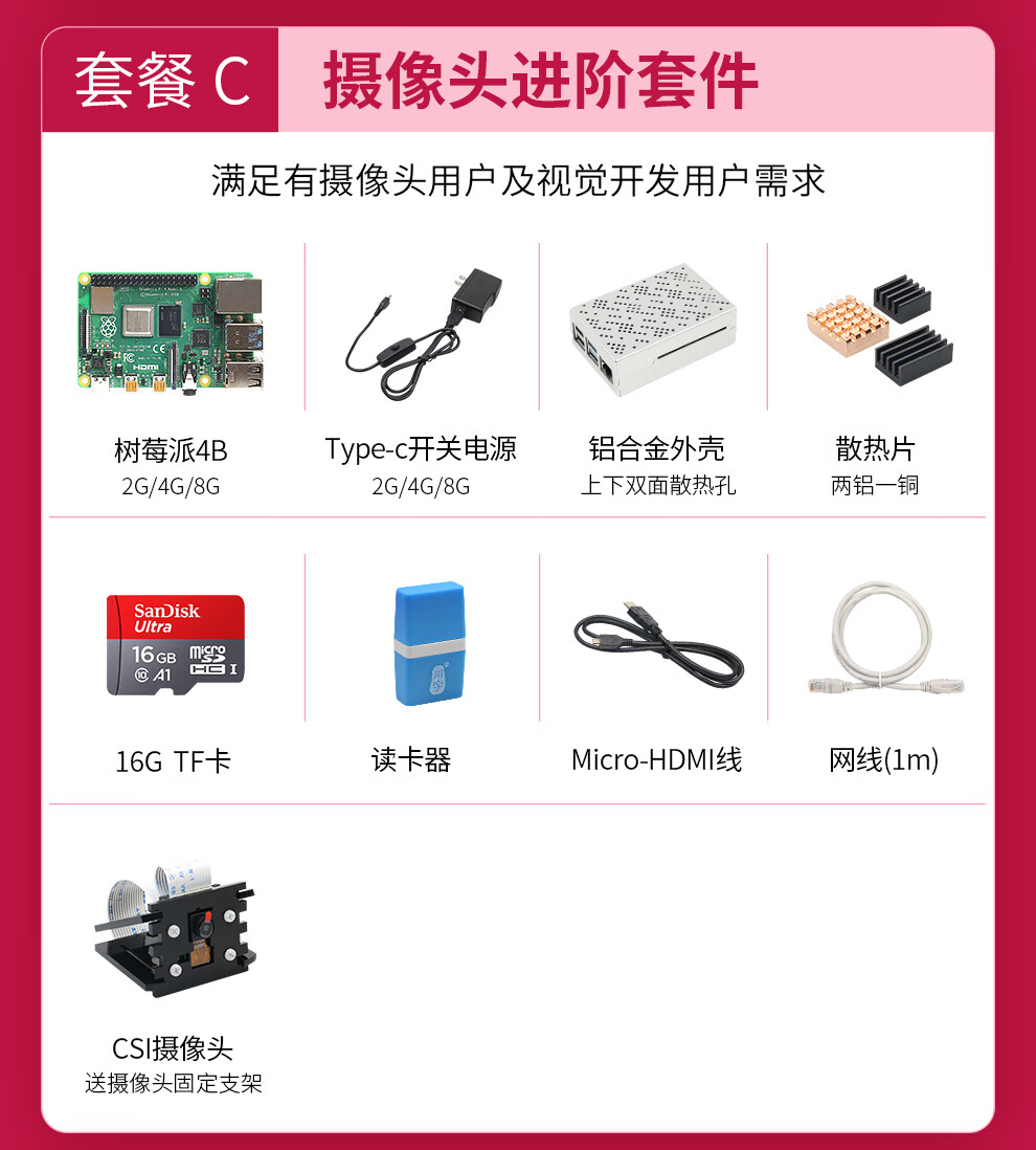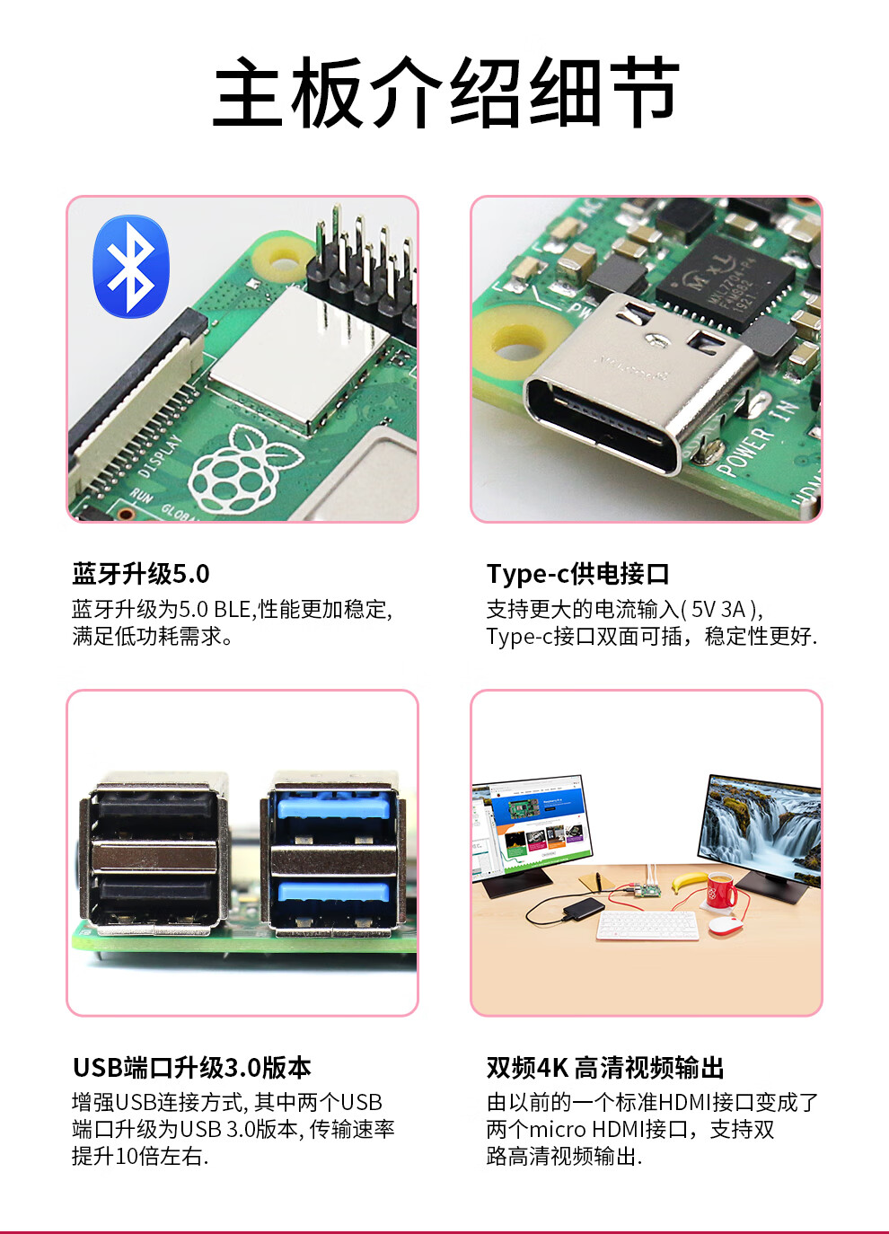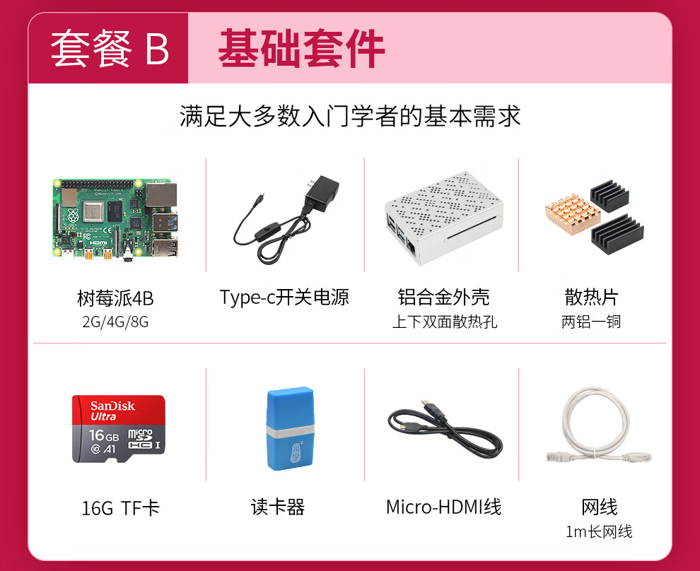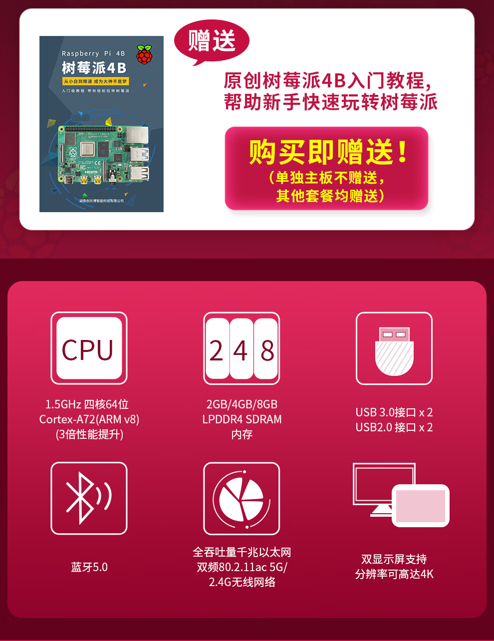 Chuanglebo Raspberry Pi 4B 4G Raspberry Pi 4 official basic package computer AI development board python kit free paper tutorial