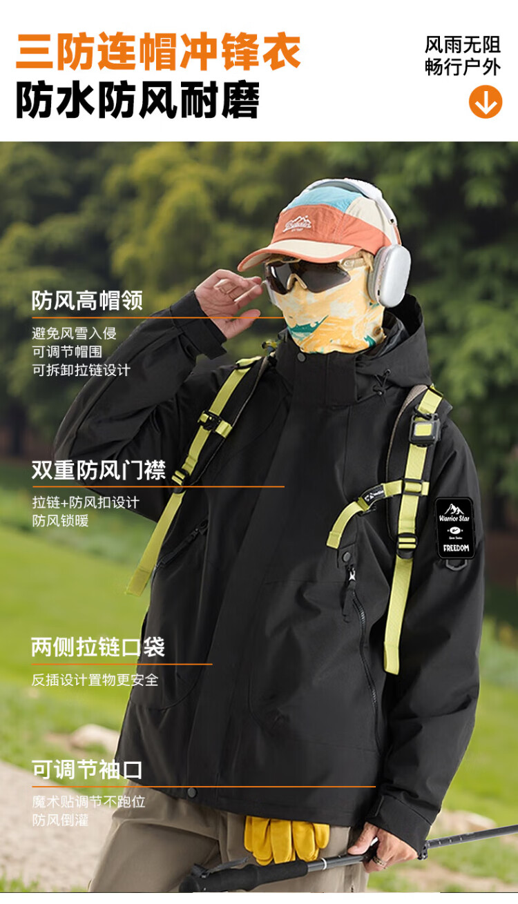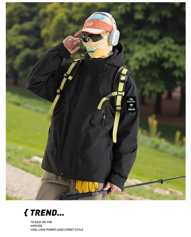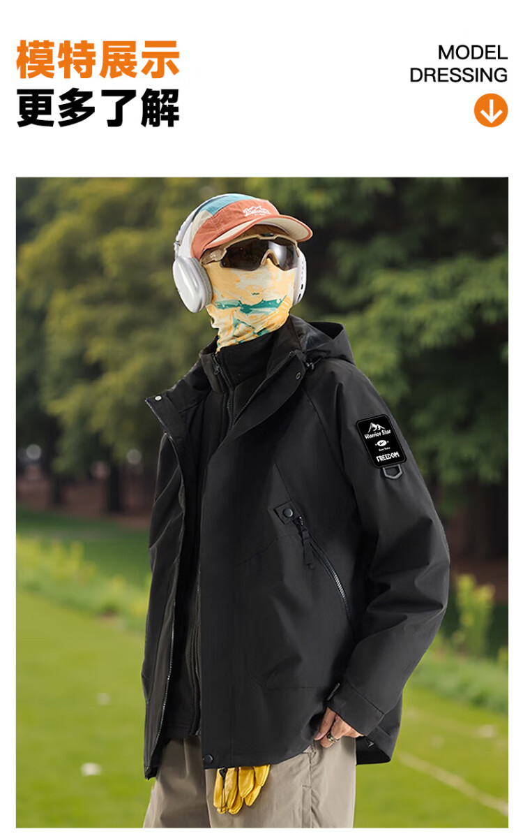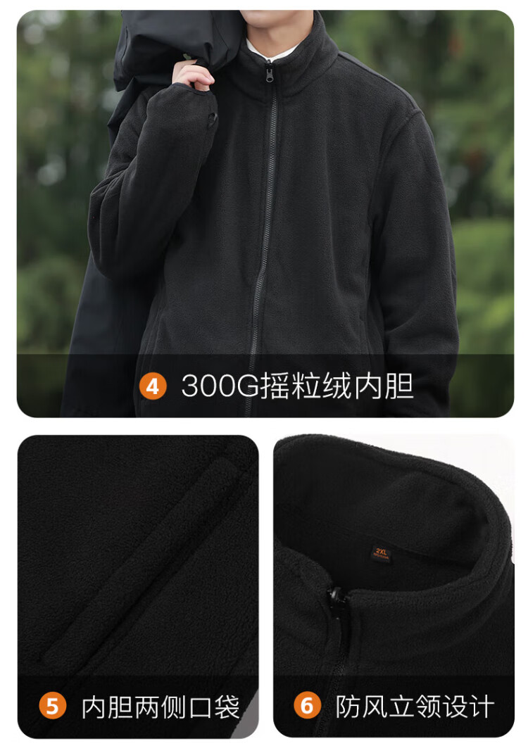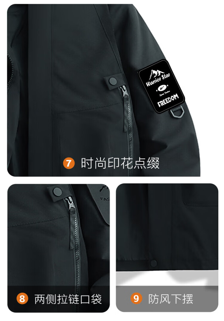 Warrior Jacket Men's Three-in-One Jacket Men's Autumn and Winter Outdoor Windproof and Water-Repellent Mountaineering Suit Men's Black XL