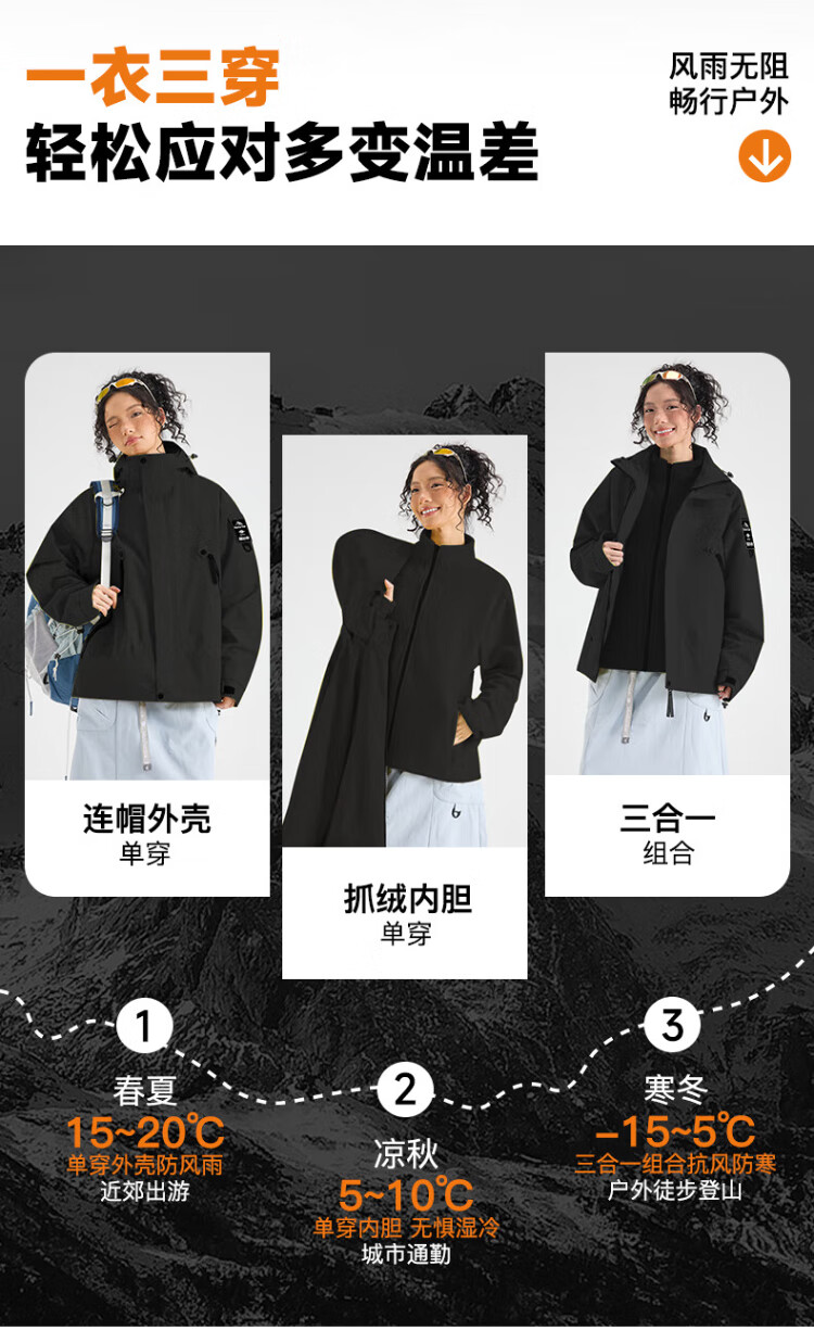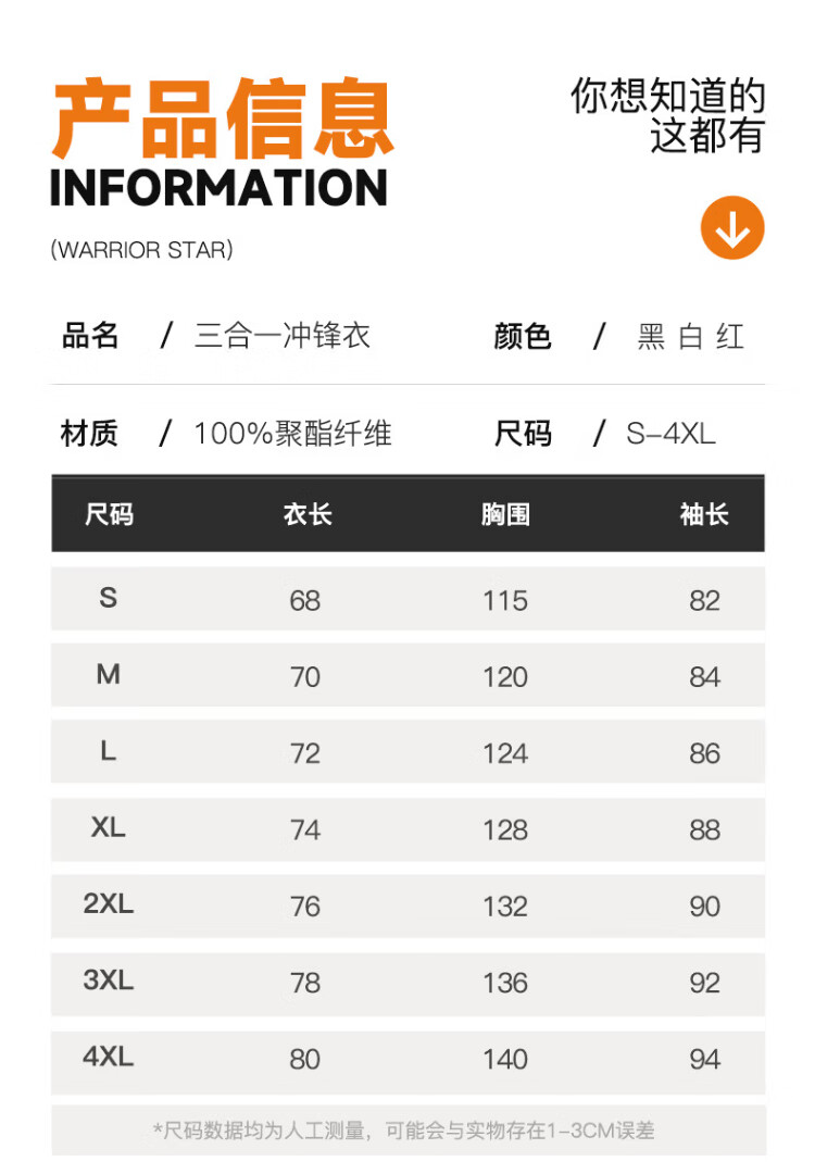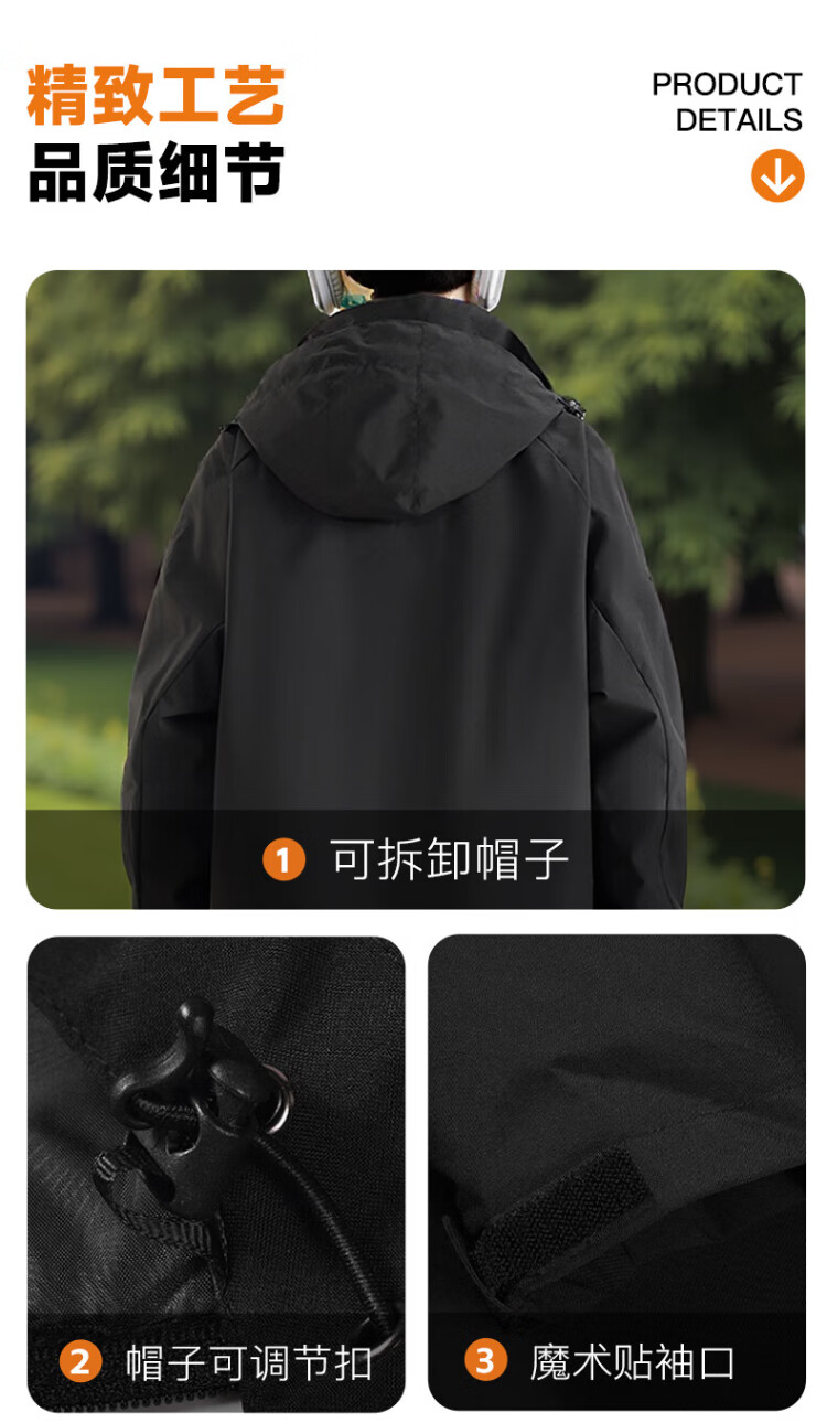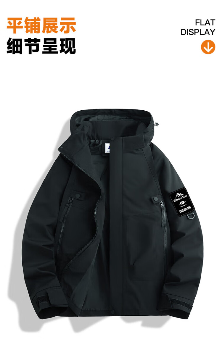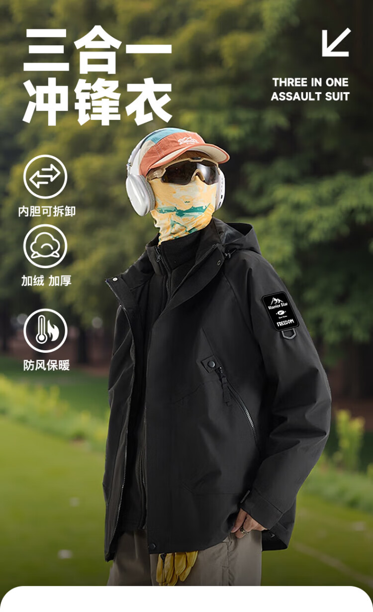 Warrior Jacket Men's Three-in-One Jacket Men's Autumn and Winter Outdoor Windproof and Water-Repellent Mountaineering Suit Men's Black XL
