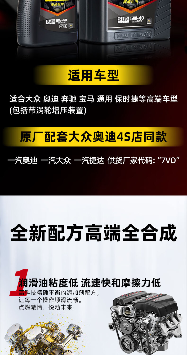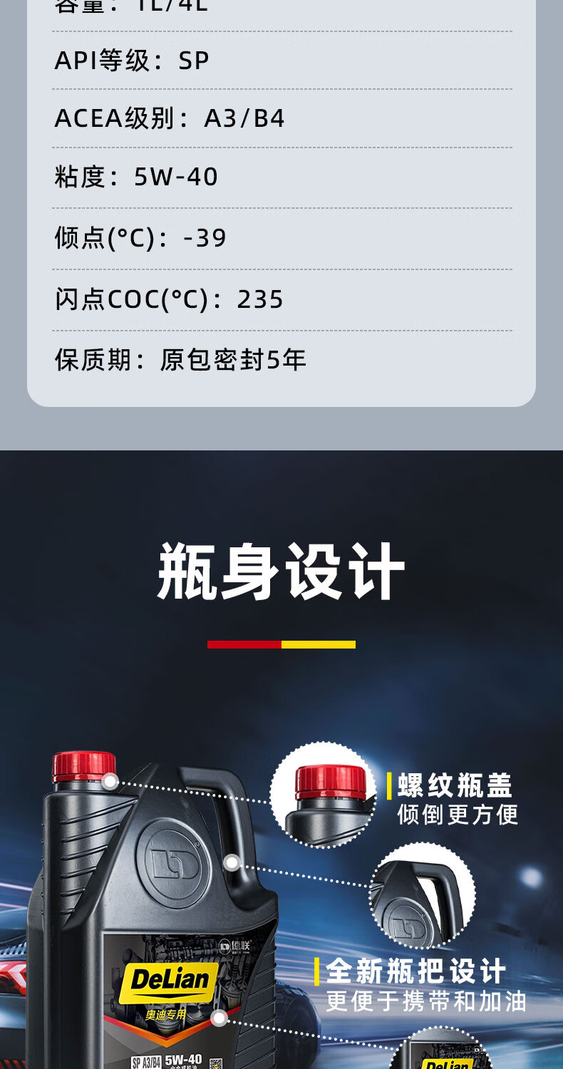 Delian fully synthetic engine oil Audi special engine lubricant SP A3/B4 5W-40 car maintenance 1L*1 bottle