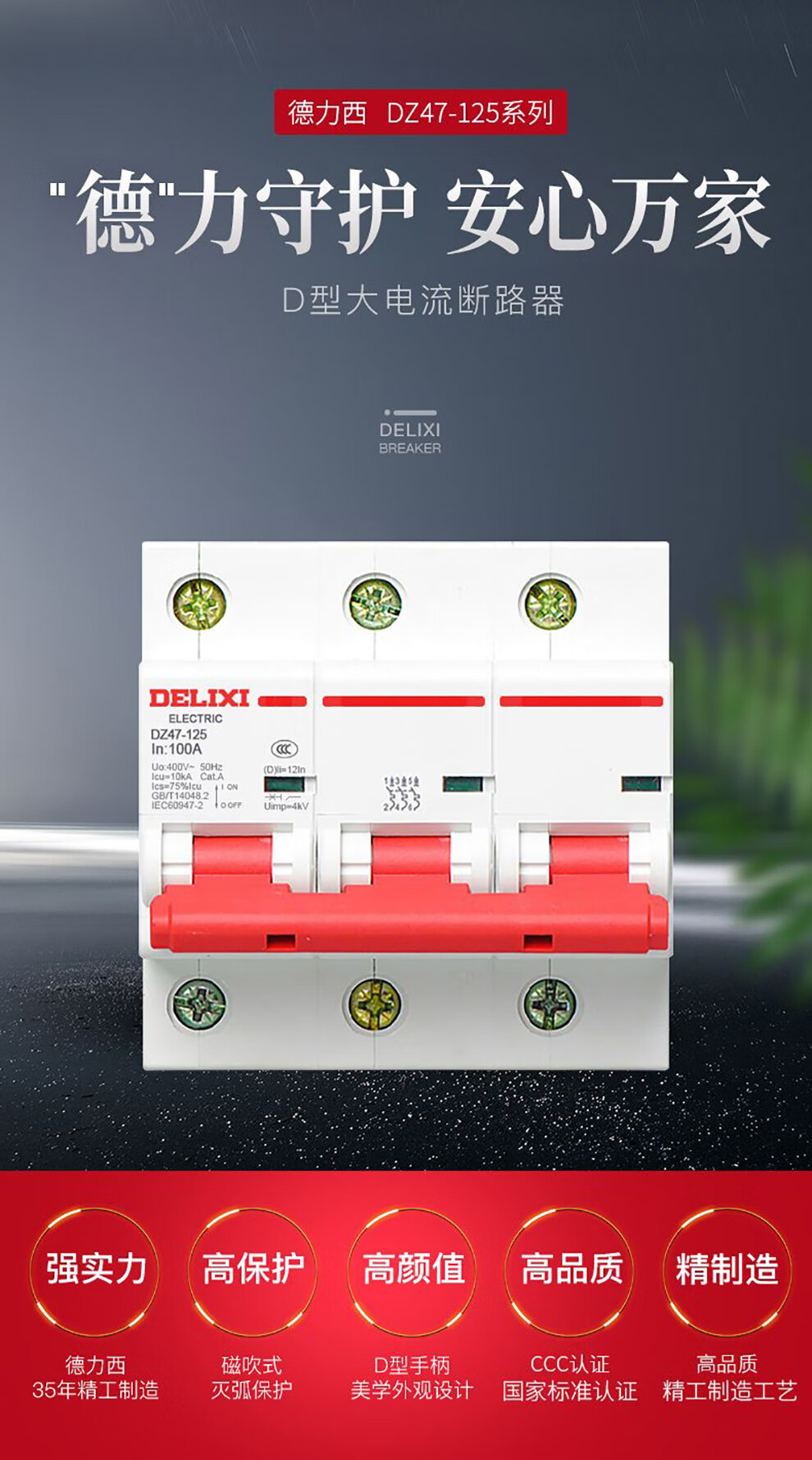 Delixi Electric DZ47-125 high current circuit breaker DZ471254D125 4P 125A D type 10kA 400VAC