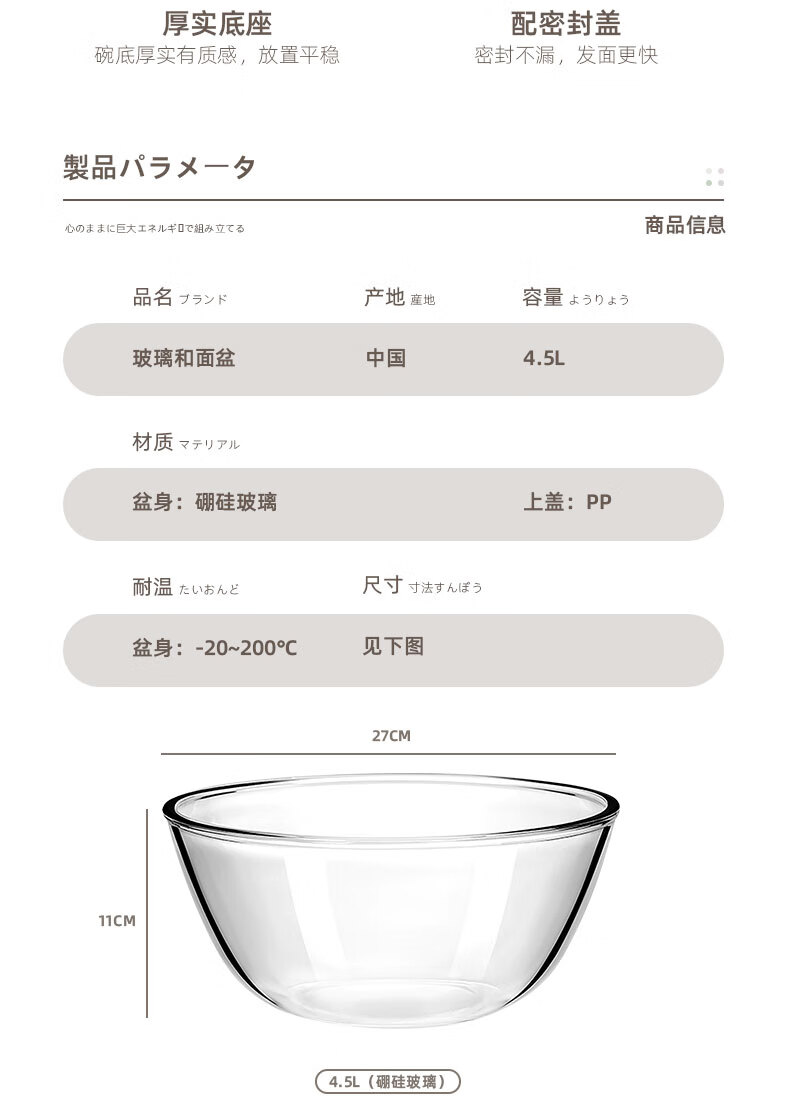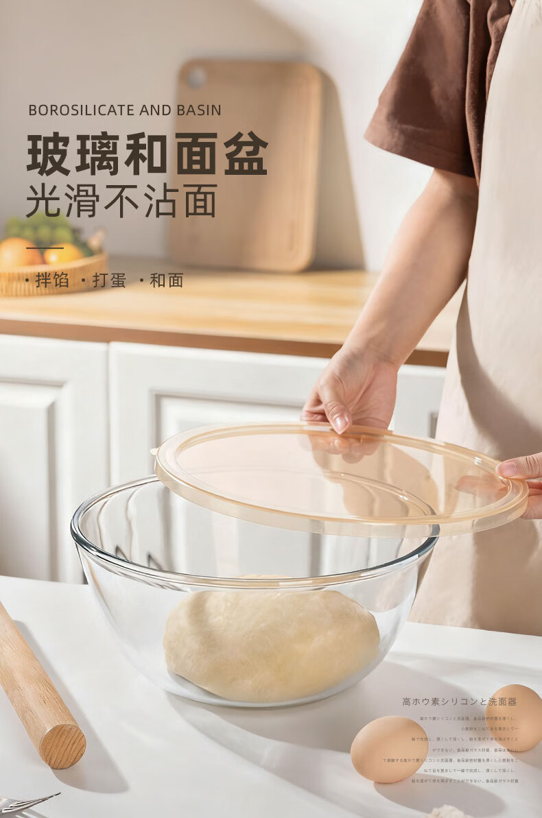 Newair noodle mixing bowl with lid, glass bowl, kneading dough, beating eggs, rising dough, fermentation, baking, kitchen food-grade cooking for everyone