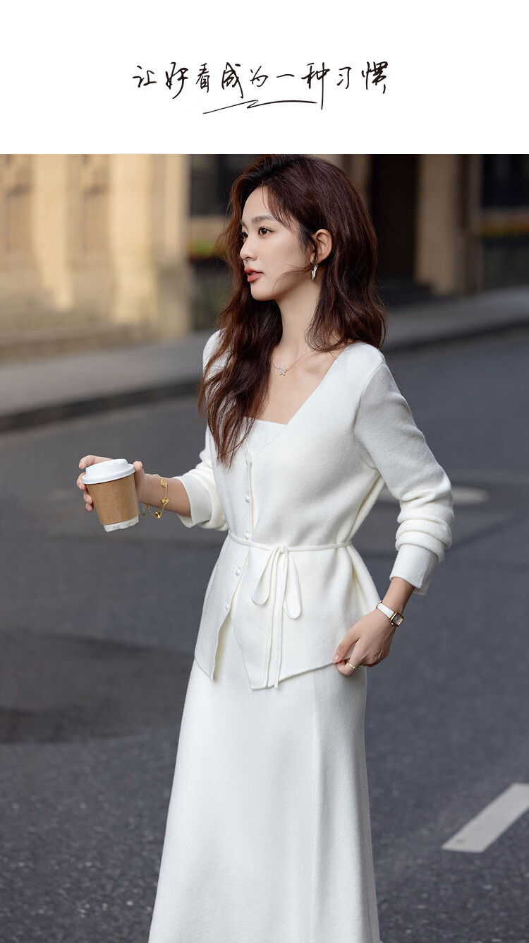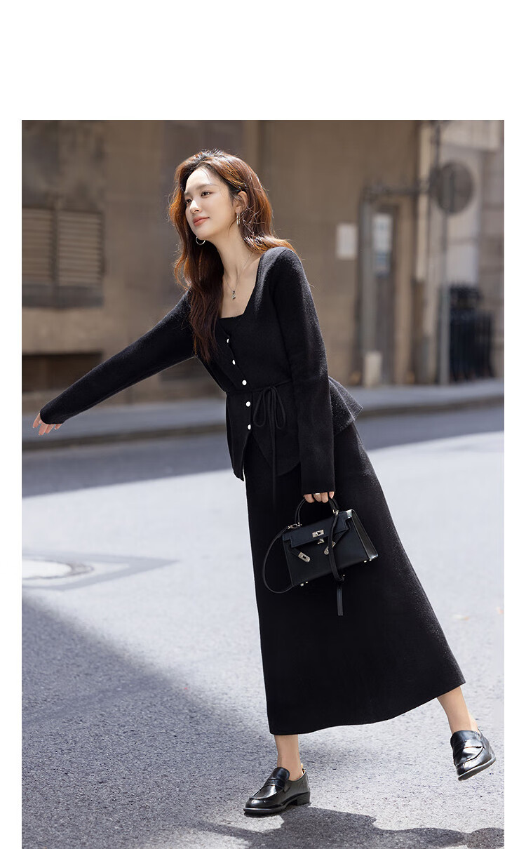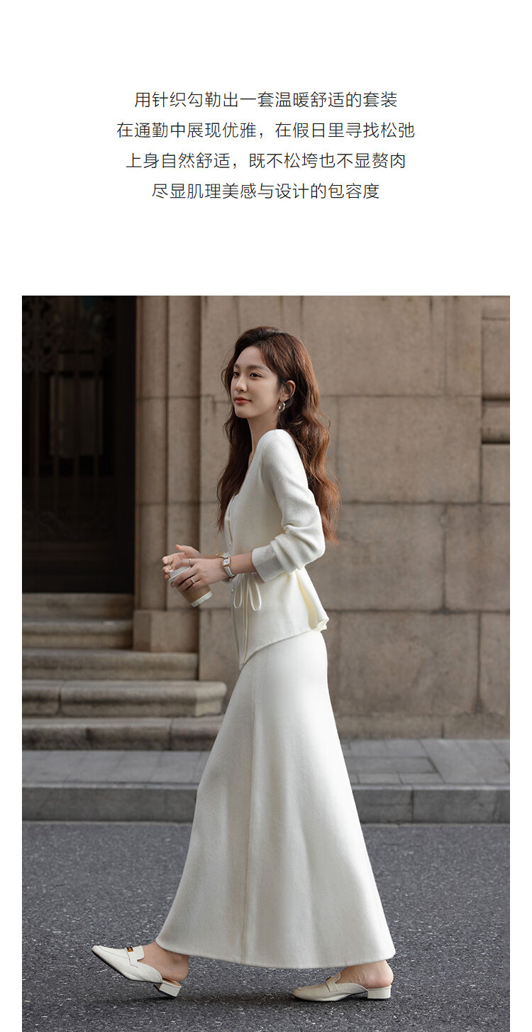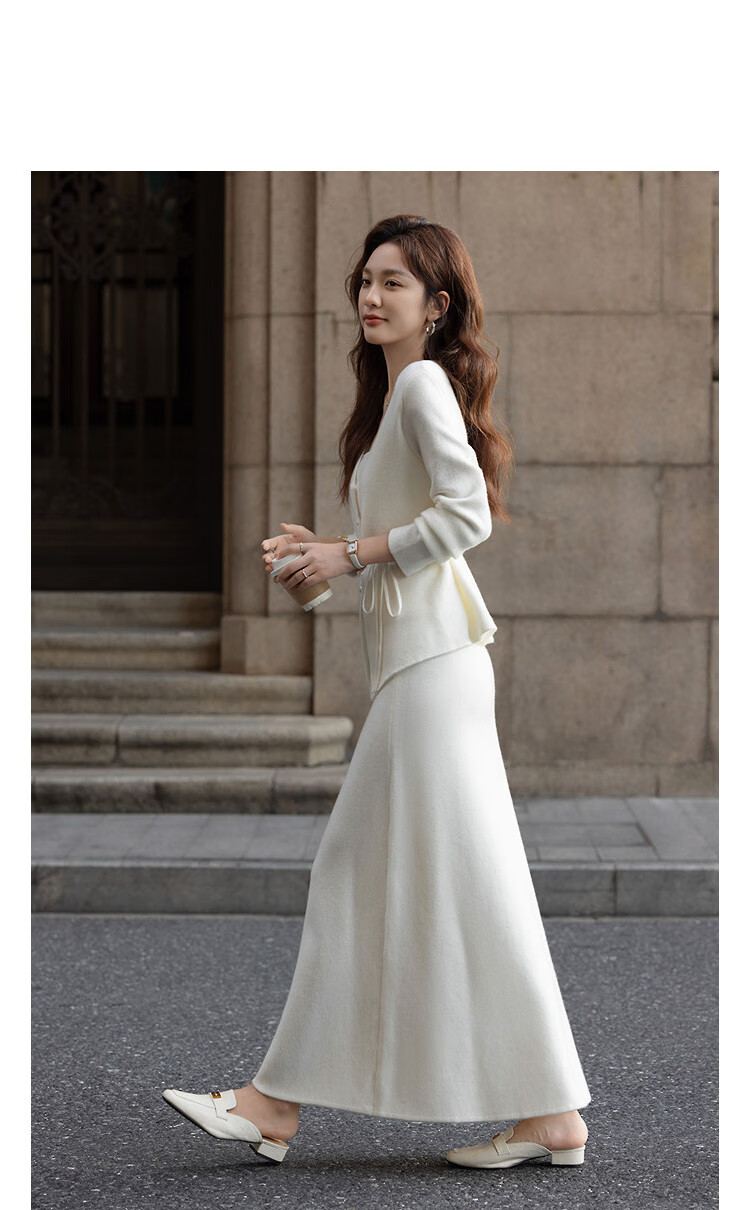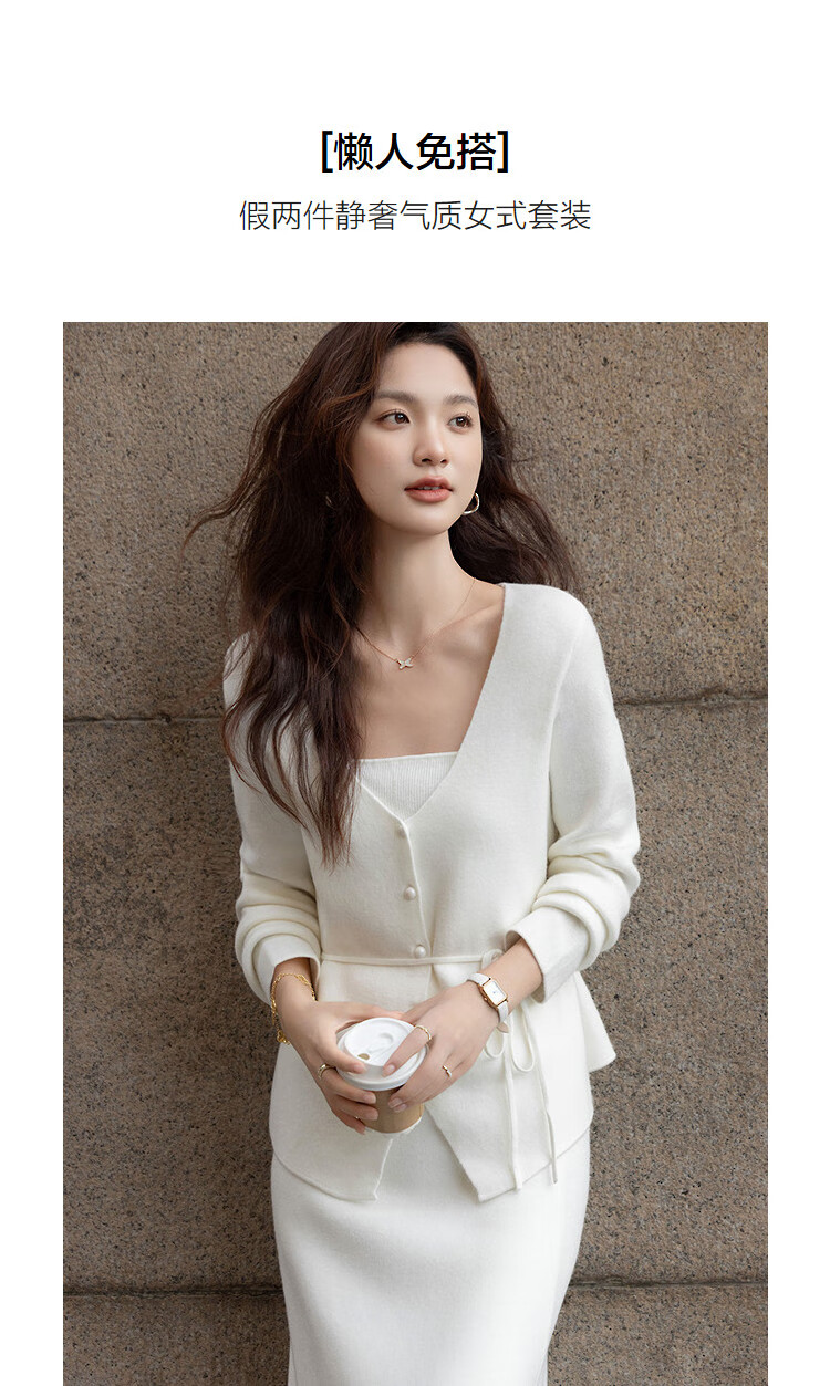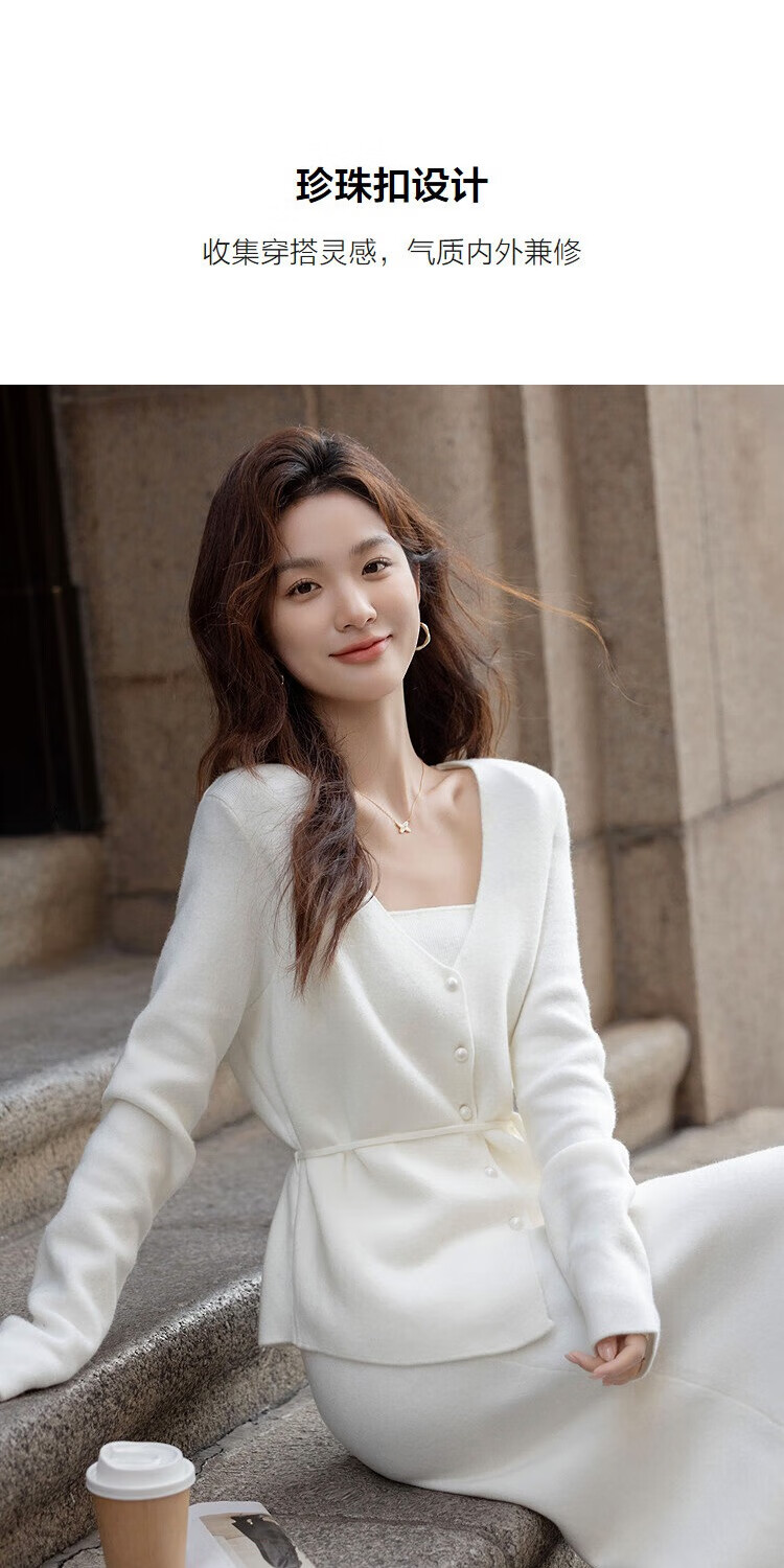 Demana Quiet Luxury Free Set Winter Holiday Two-piece V-neck Pearl Button Cardigan Lace-up Skirt Women's Knitted Two-piece Set