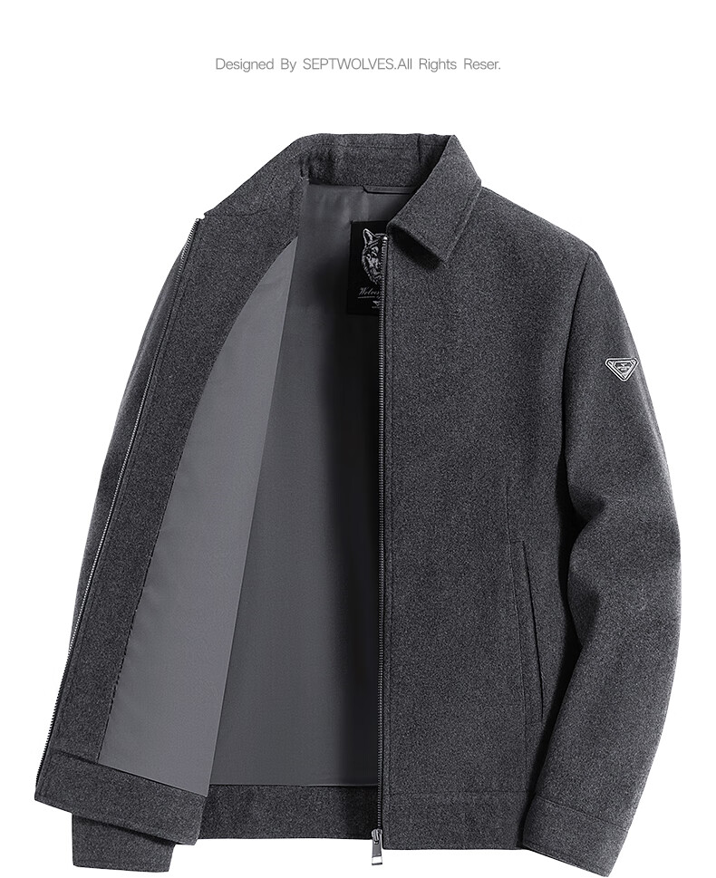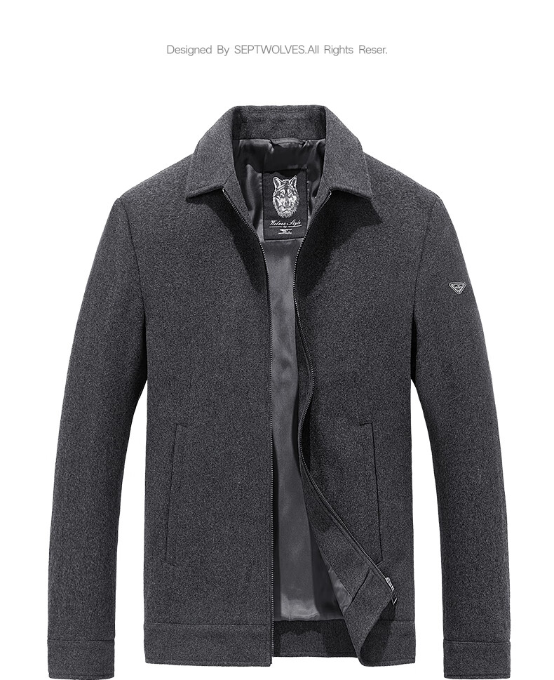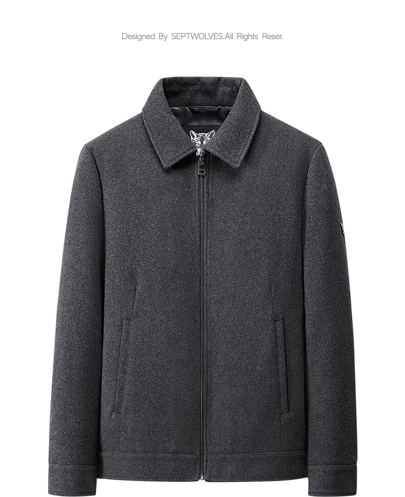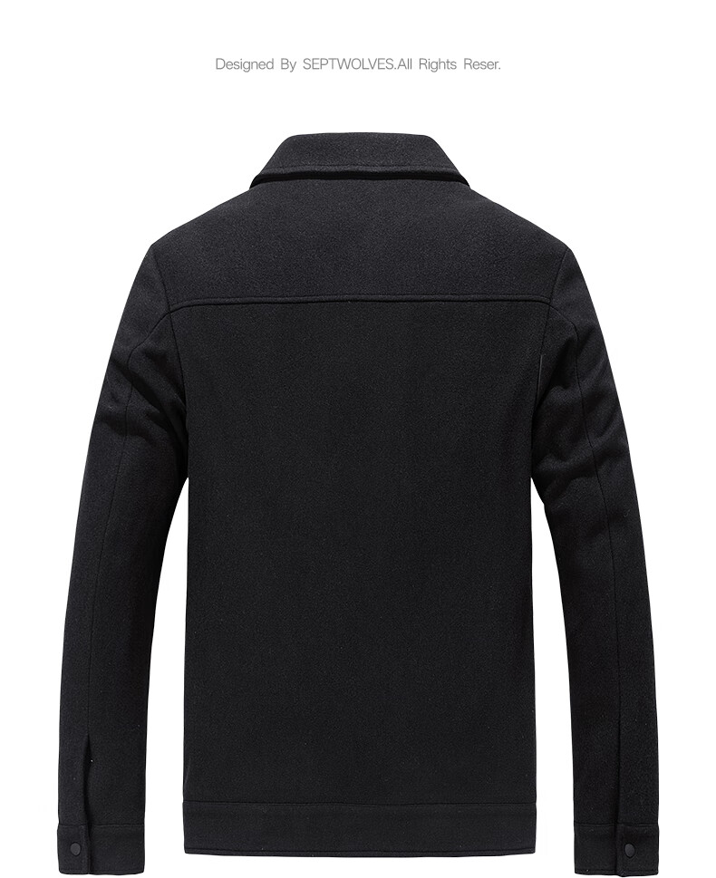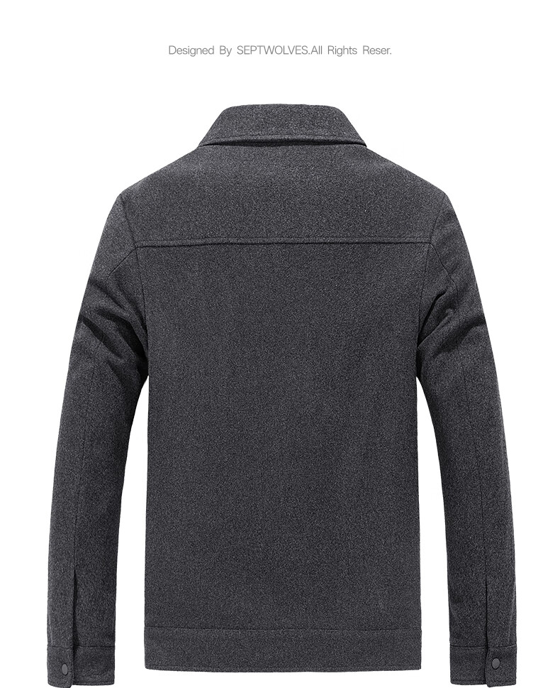 Septwolves Jacket Men's Autumn Lapel Solid Color Wool Jacket Business Casual Wool Warm Easy-Care Commuting Top