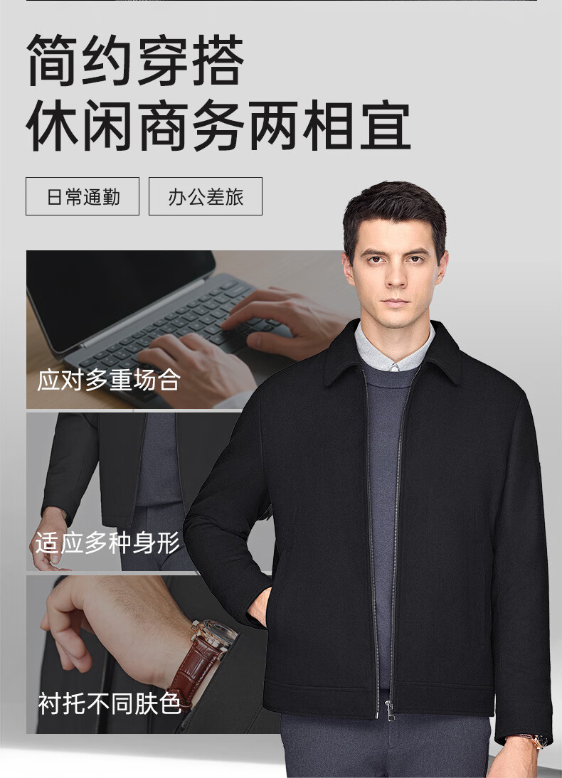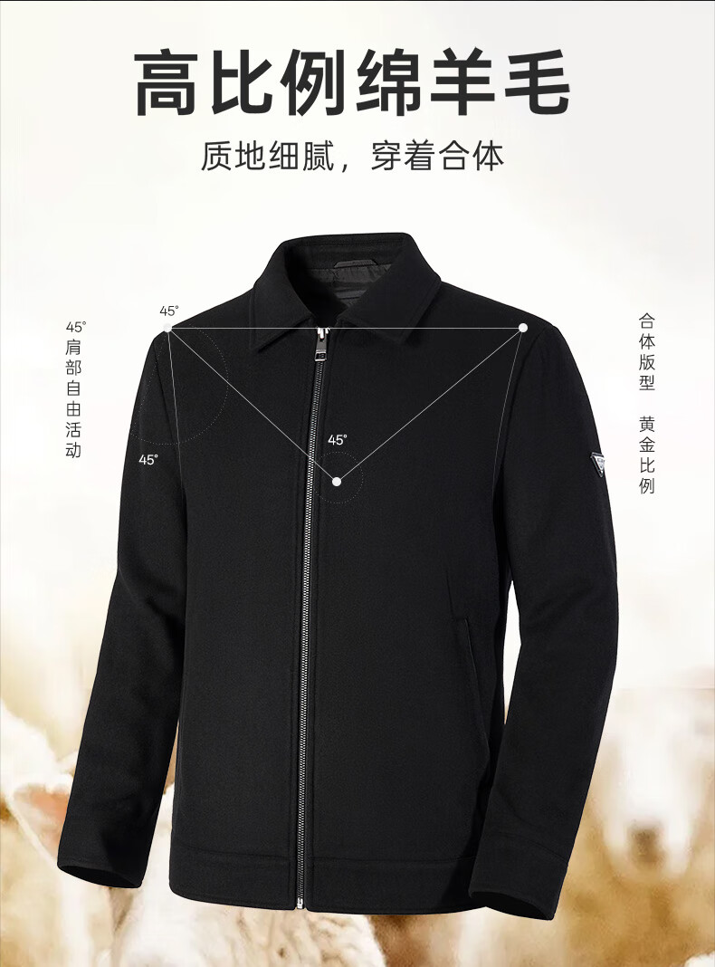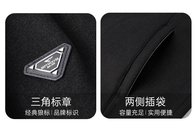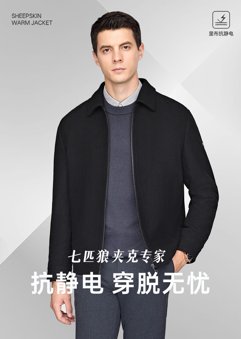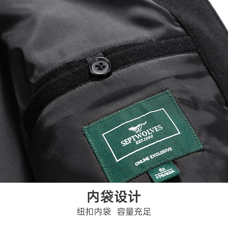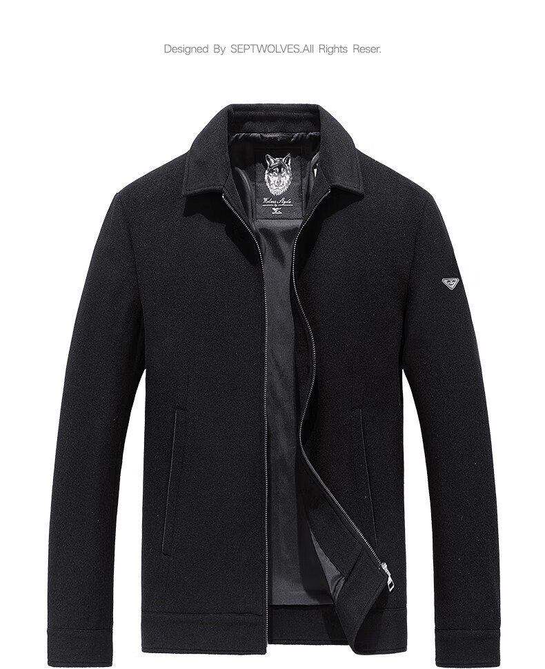 Septwolves Jacket Men's Autumn Lapel Solid Color Wool Jacket Business Casual Wool Warm Easy-Care Commuting Top