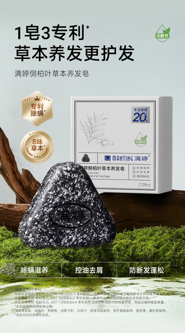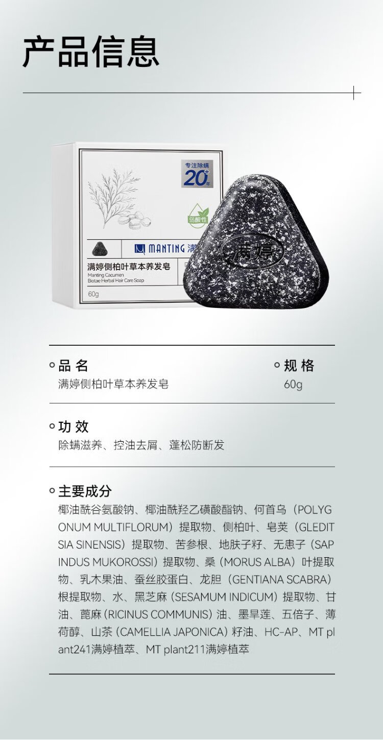 MANTING Platycladus orientalis leaf herbal hair soap 60g (shampoo soap, hair firming, anti-hair breakage, gentle cleansing, dandruff removal and mite removal)