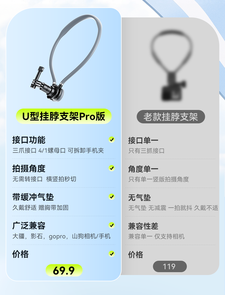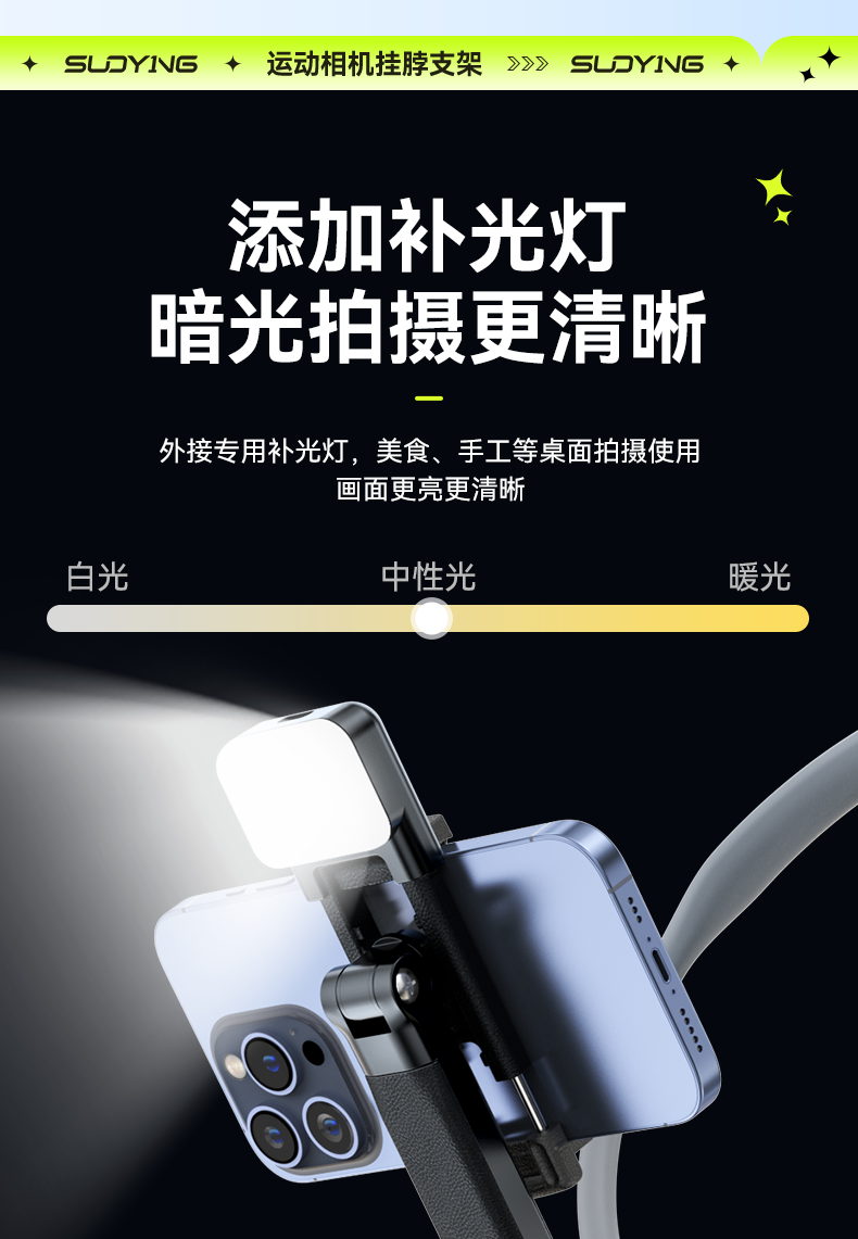 Soying mobile phone camera dual-use sports camera hanging neck bracket first-person shooting adapts to DJI Action6/5pro4/Pocket3 Shadow Stone Ace Pro2GoPro