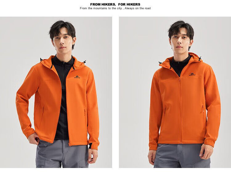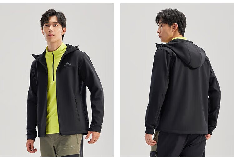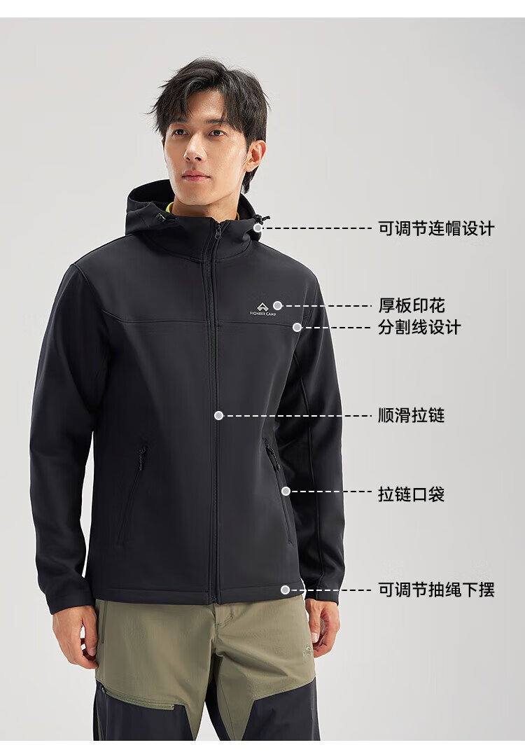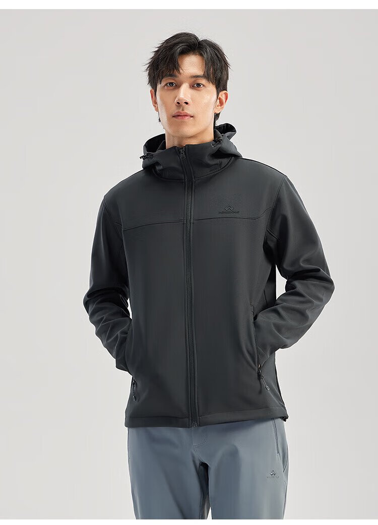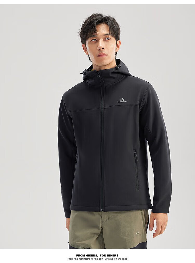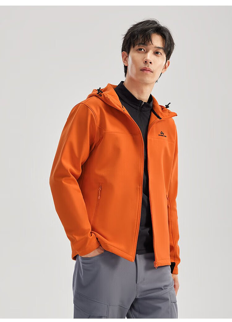 Pathfinder Outdoor Casual Soft Shell Jacket Autumn Men's Jacket Hooded Plus Velvet Wear-Resistant Windproof Hiking and Mountaineering Clothing Cardigan