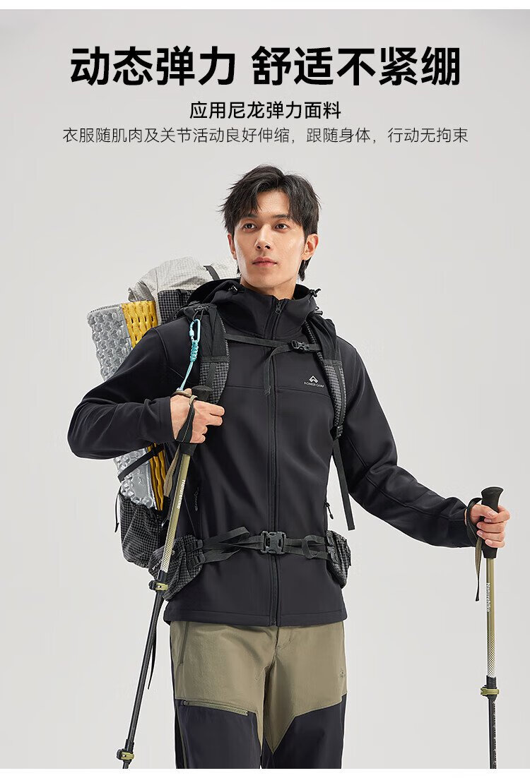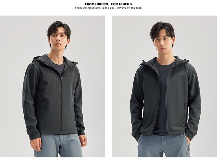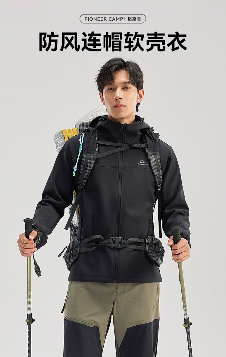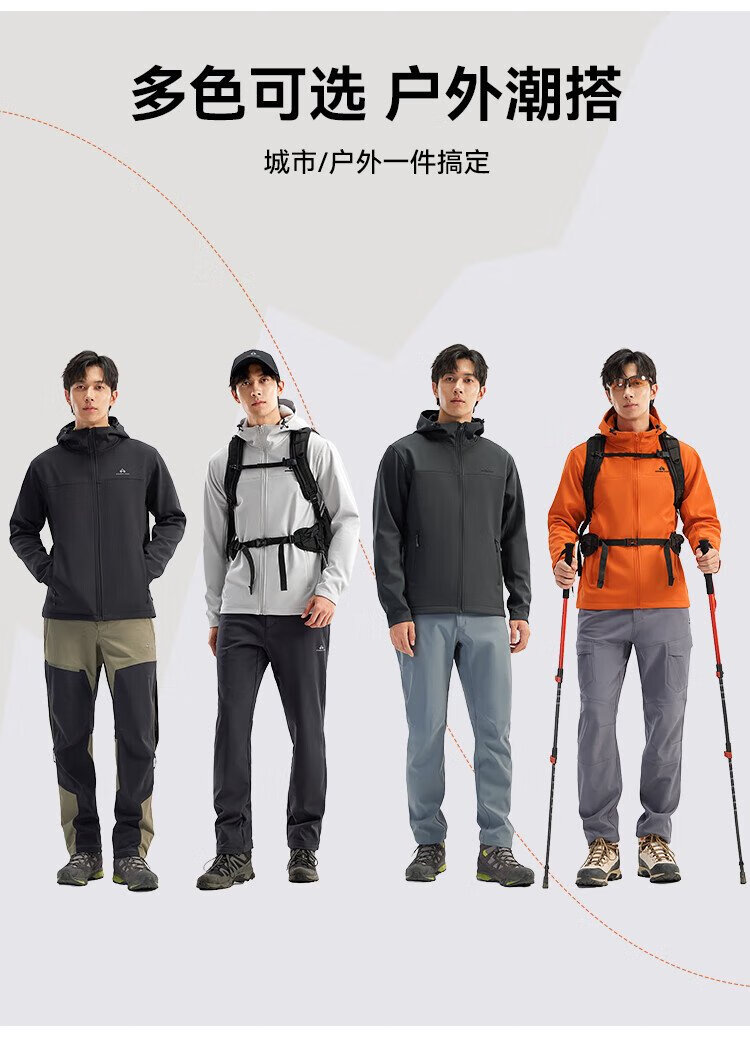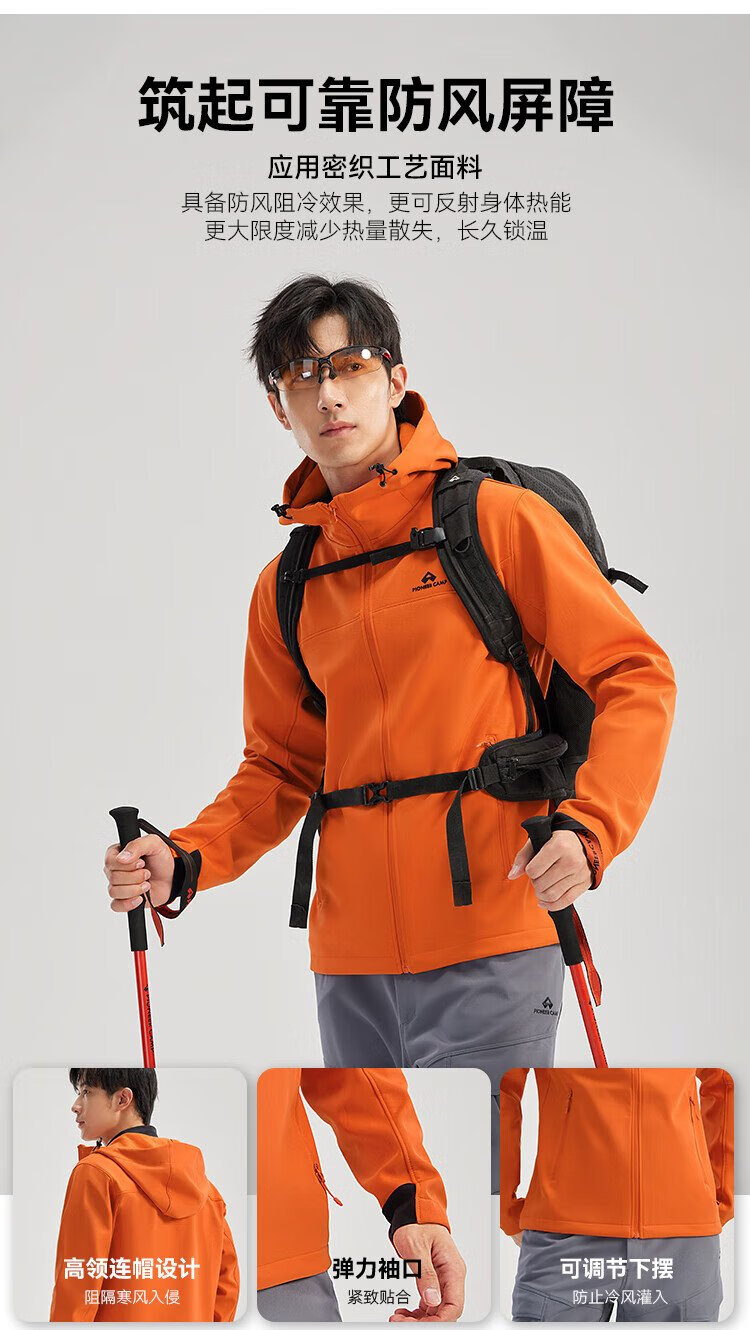 Pathfinder Outdoor Casual Soft Shell Jacket Autumn Men's Jacket Hooded Plus Velvet Wear-Resistant Windproof Hiking and Mountaineering Clothing Cardigan