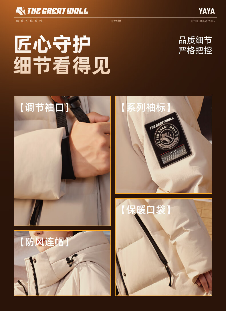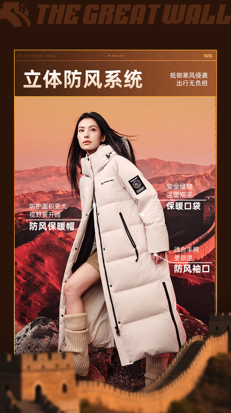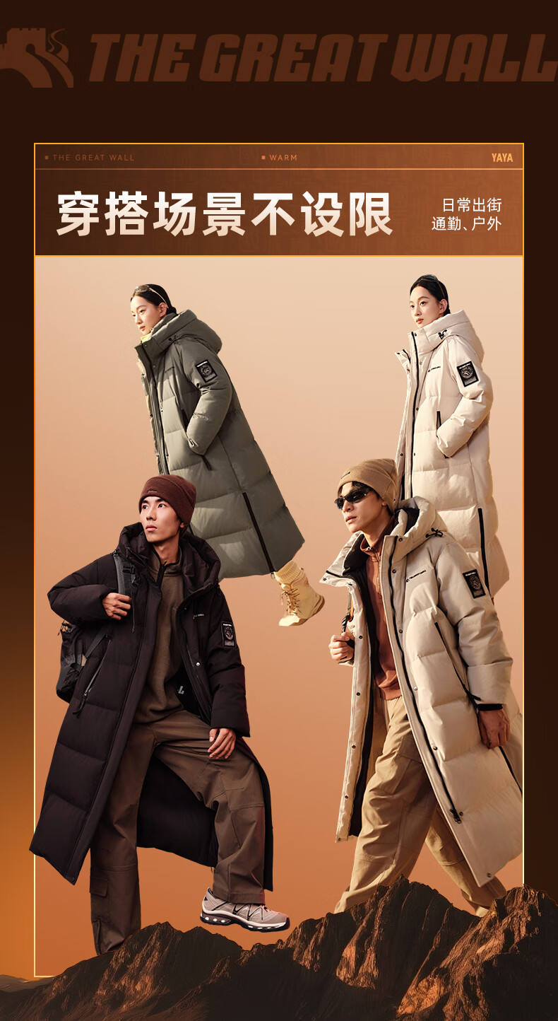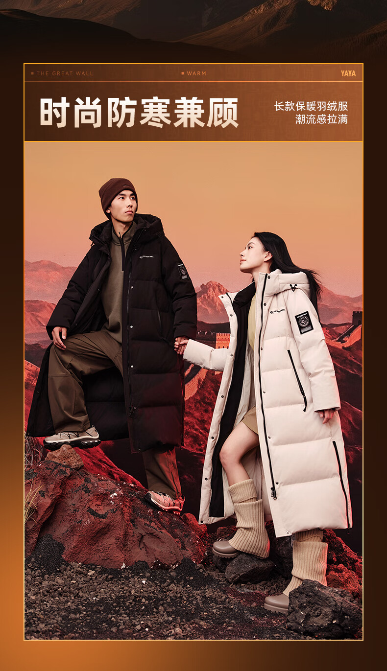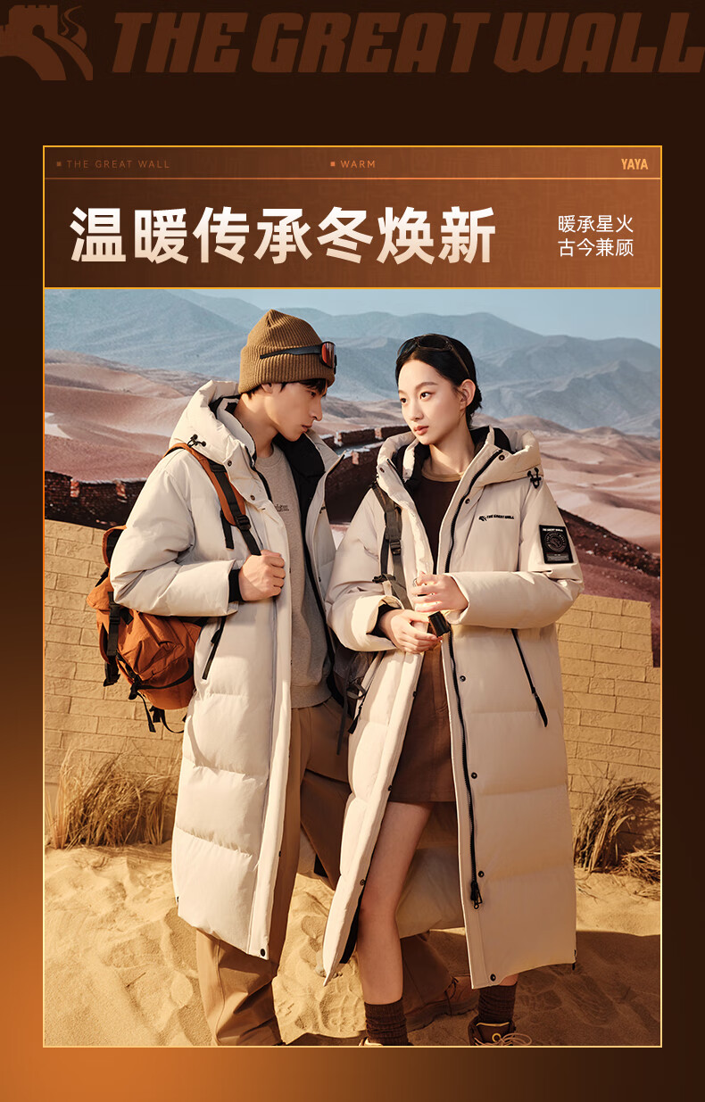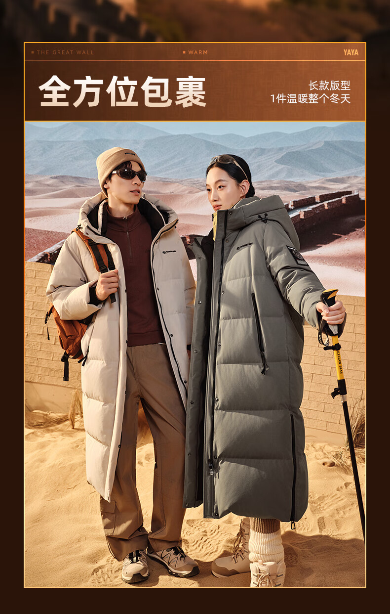 YAYA Great Wall Series Down Jackets for Men and Women 2025 Winter Mid-Length Extremely Cold Warm Thickened Couple Jacket