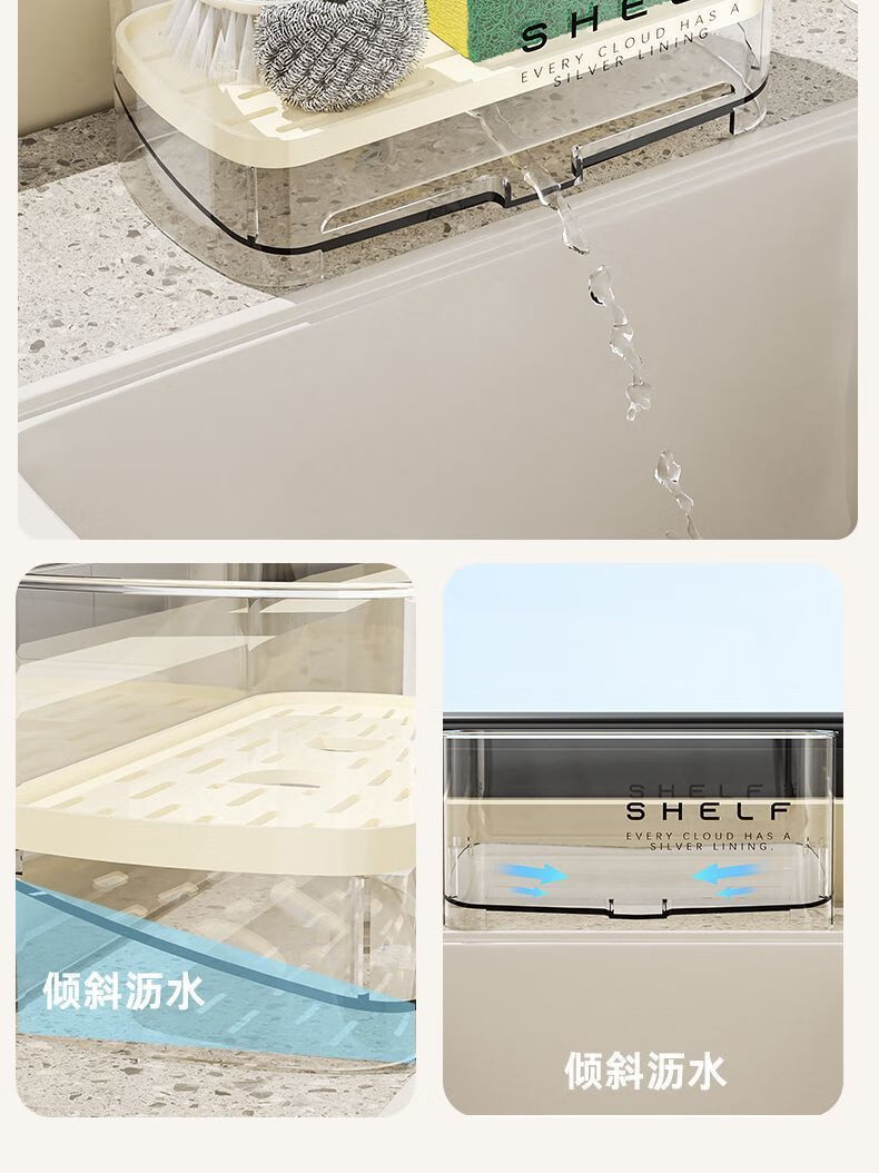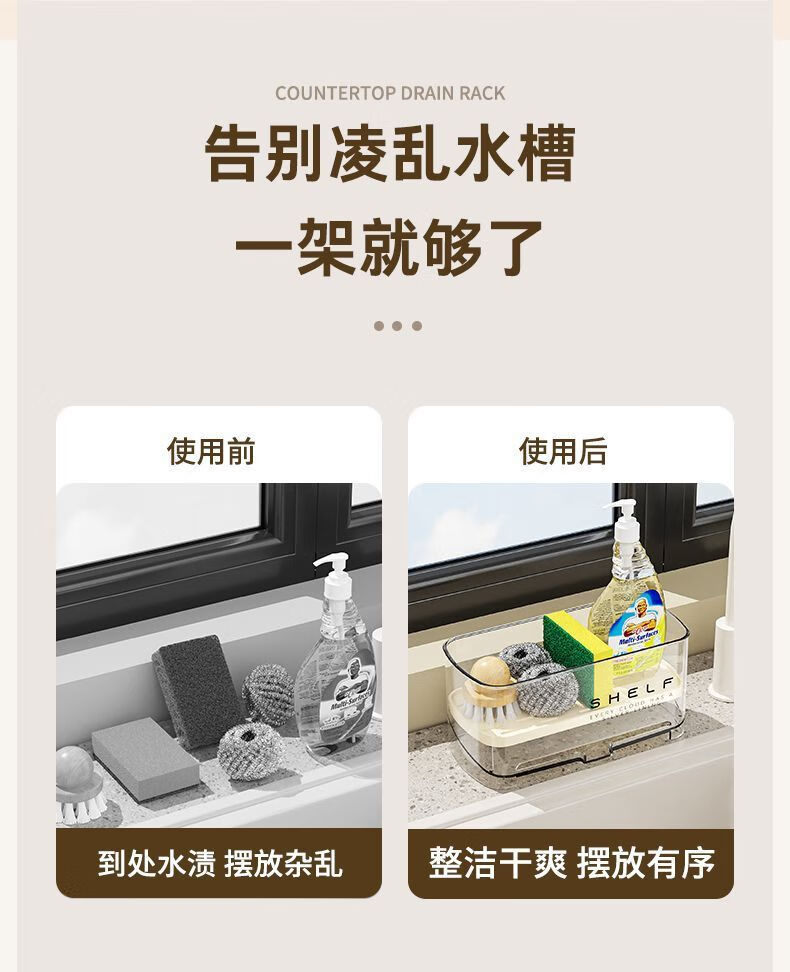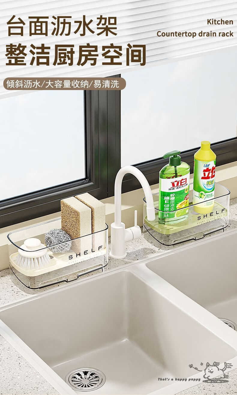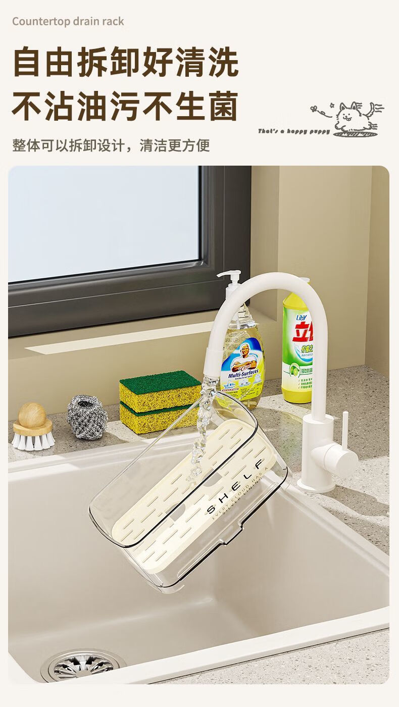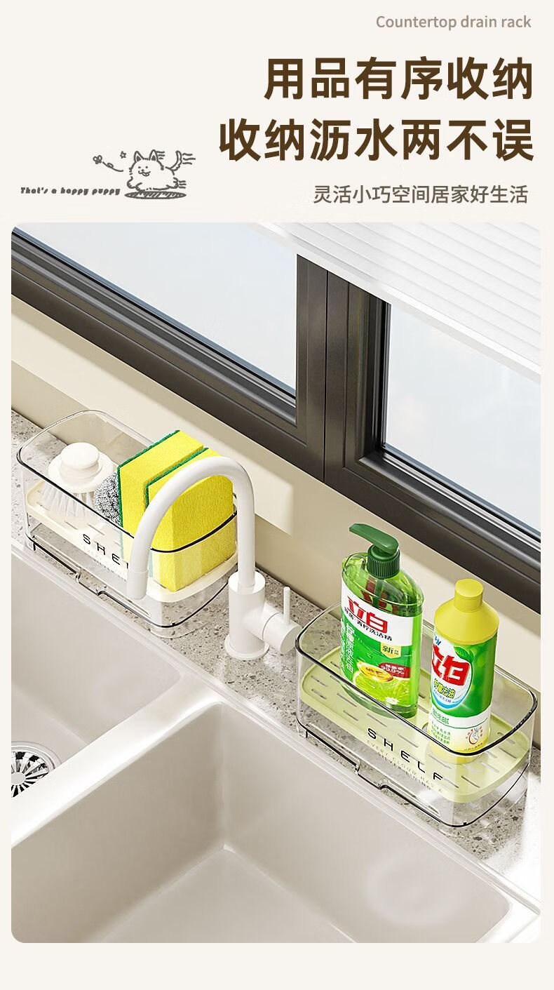 MUYA home kitchen sink wall-mounted rack without punching, multi-functional storage for draining dishwashing rags, sponges, countertop storage