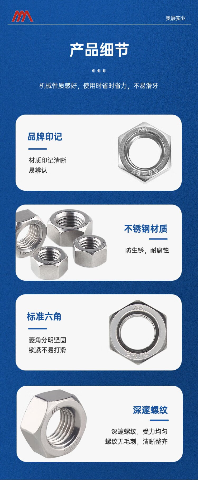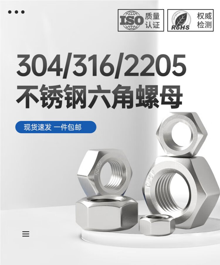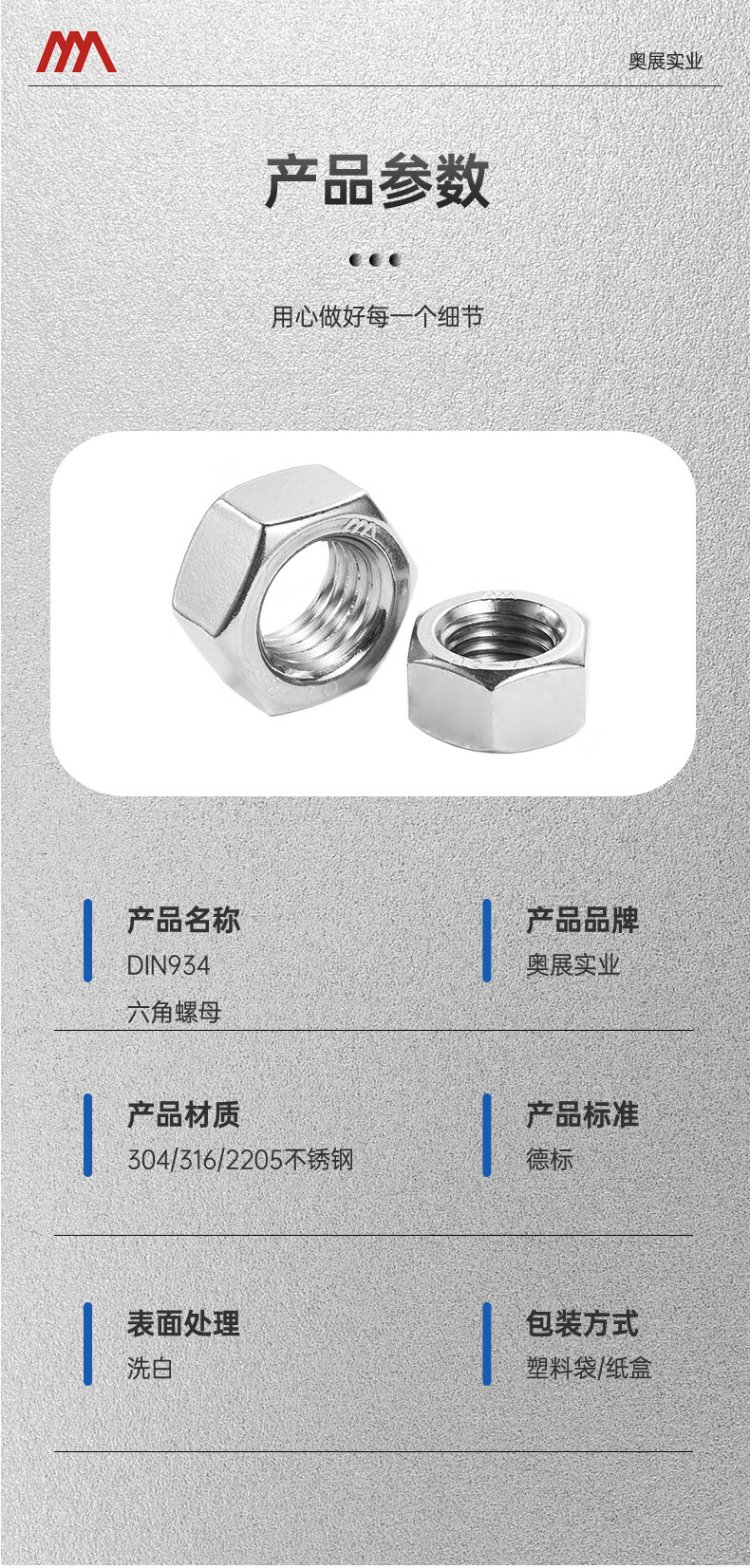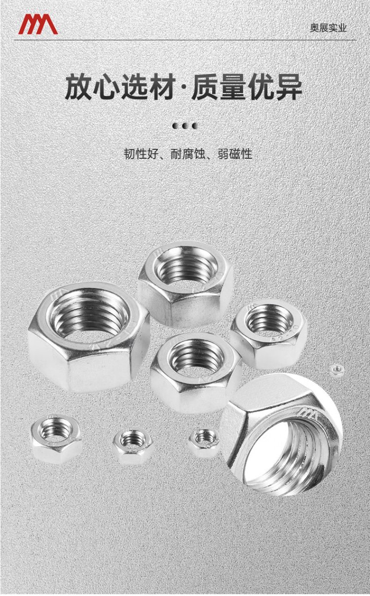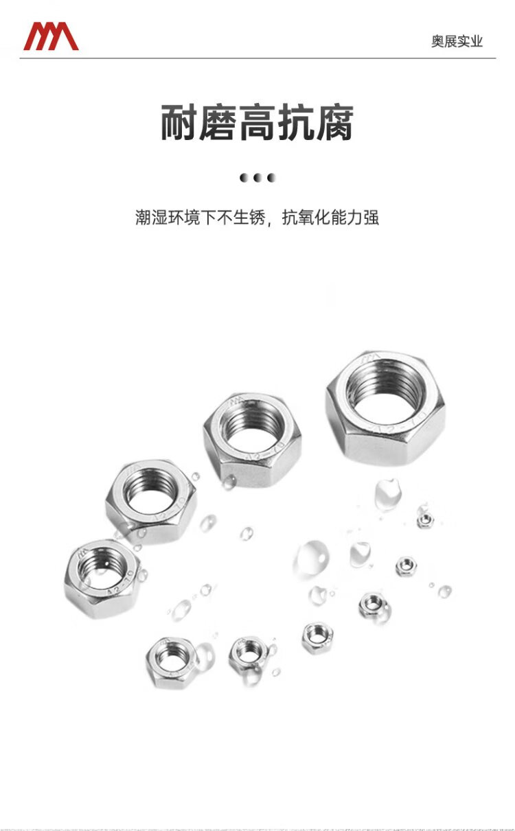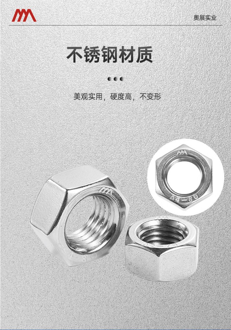 AOZHAN Industrial (AOZHAN) 304 stainless steel A2-70 hexagonal nut DIN934 full series M5 100 pieces/pack