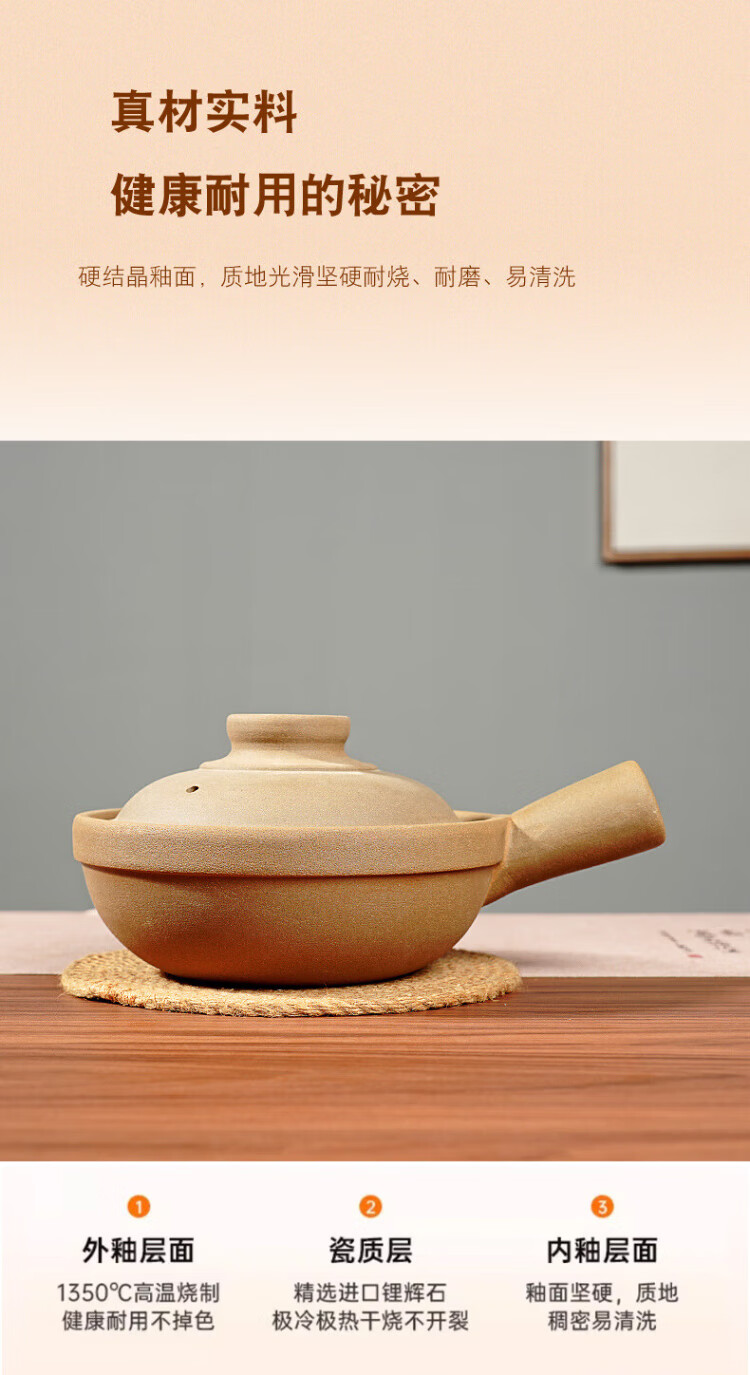 Yi Jia (IJARL) Cantonese-style clay pot special clay pot clay pot clay pot open fire electric ceramic stove commercial small clay pot single handle 1.2 liters