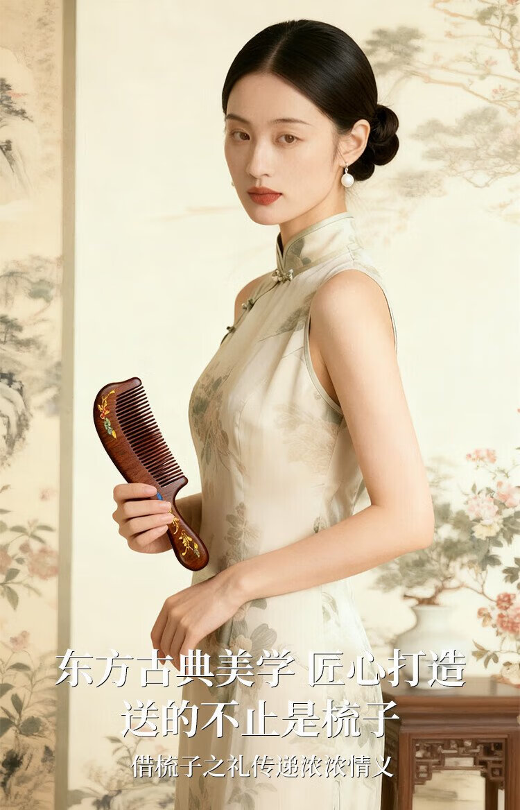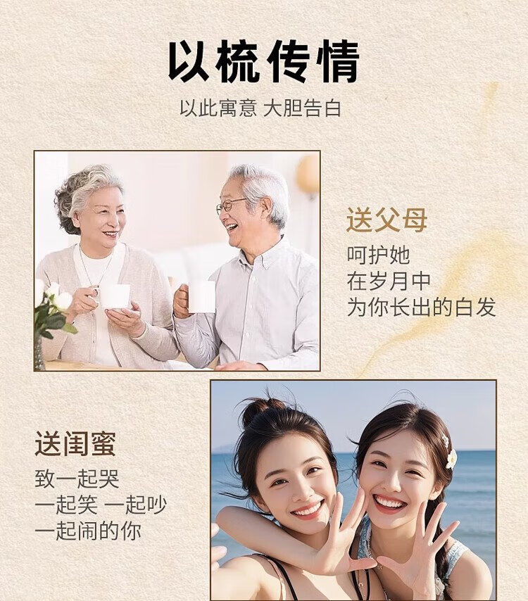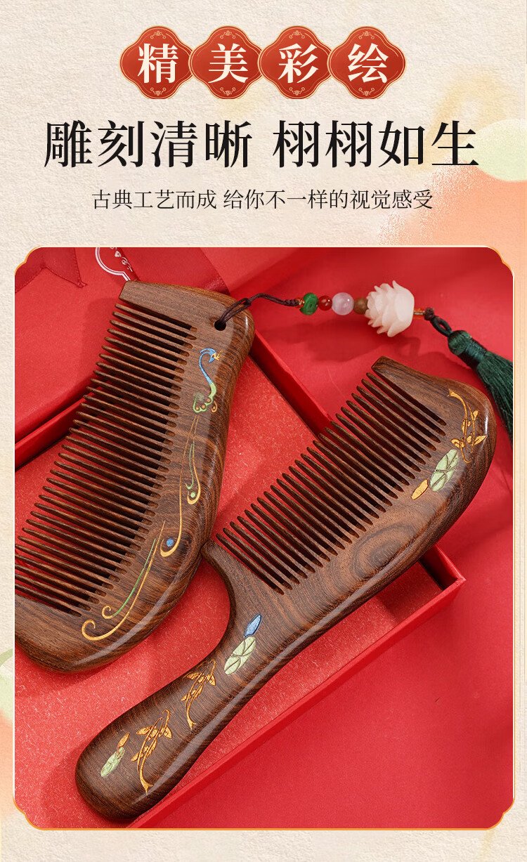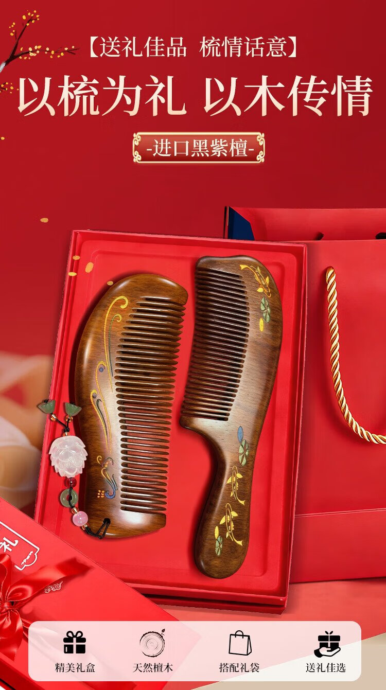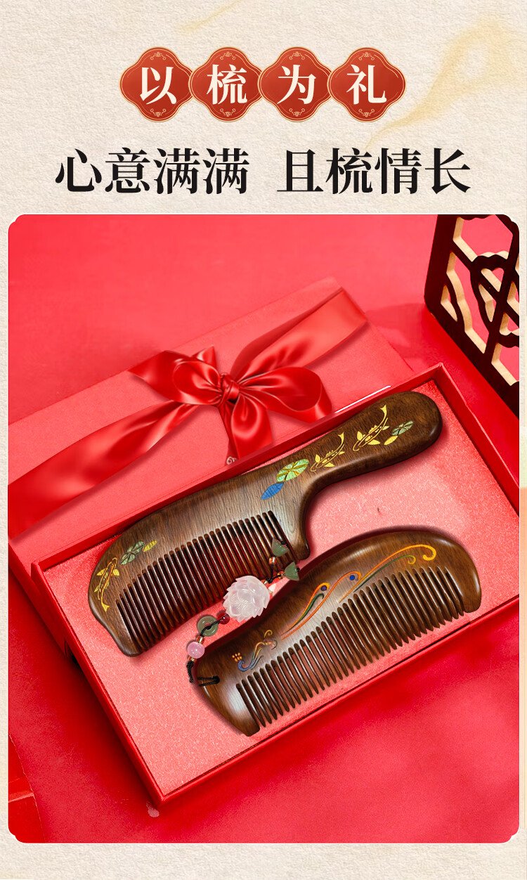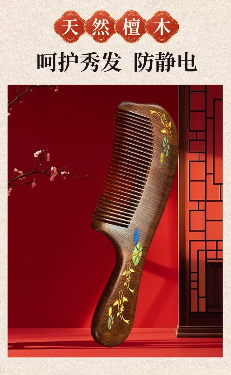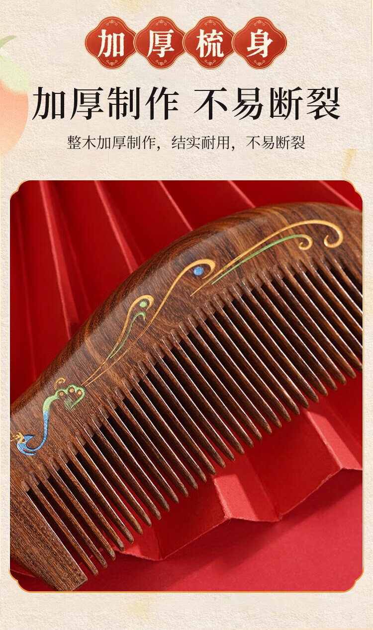 Lishikan Sandalwood Comb Gift Box Massage Anti-static Women's Birthday New Year's Day Gift Premium for Mom, Girlfriend and Wife