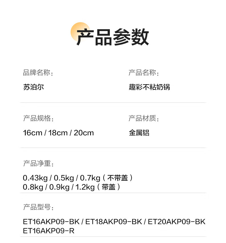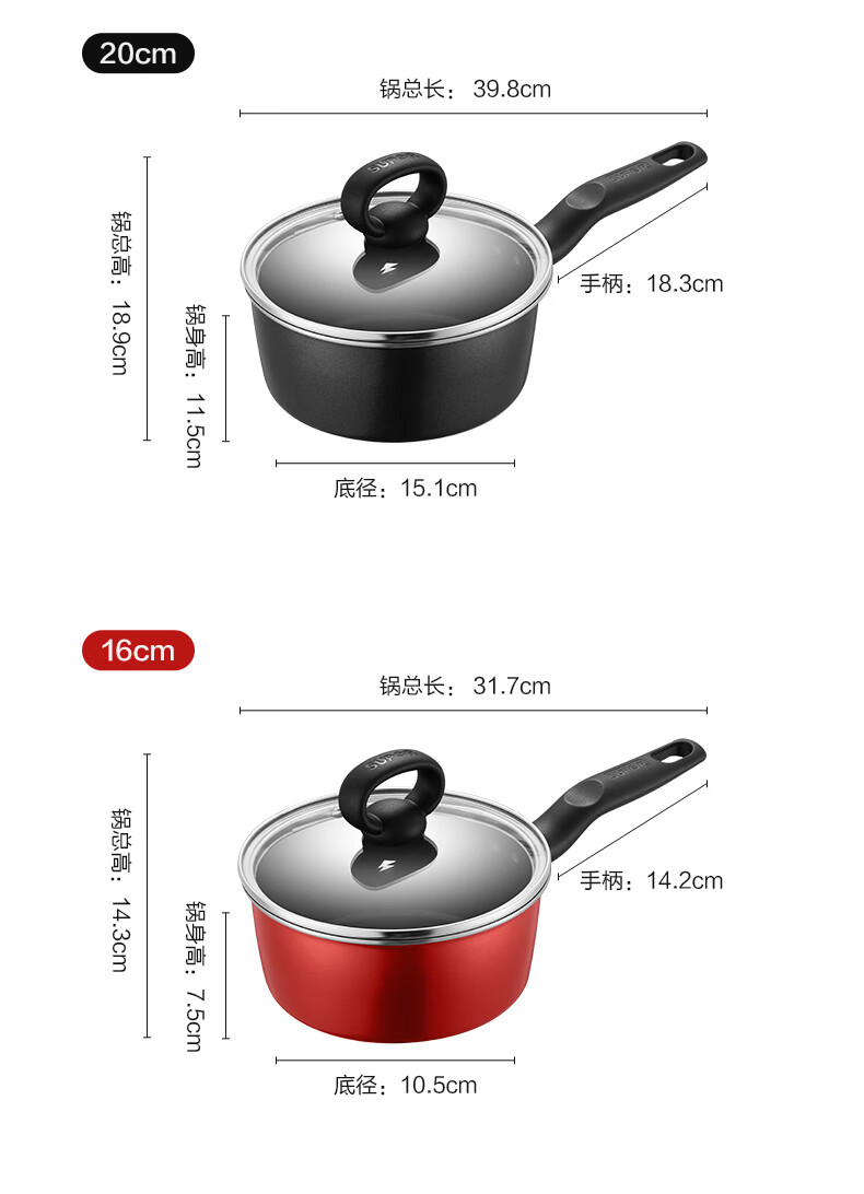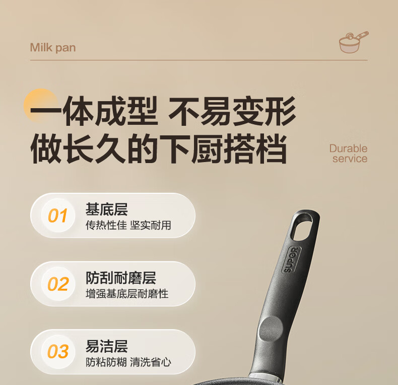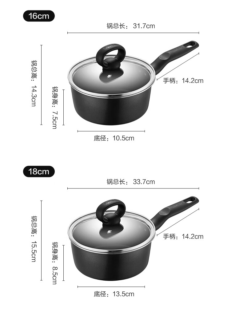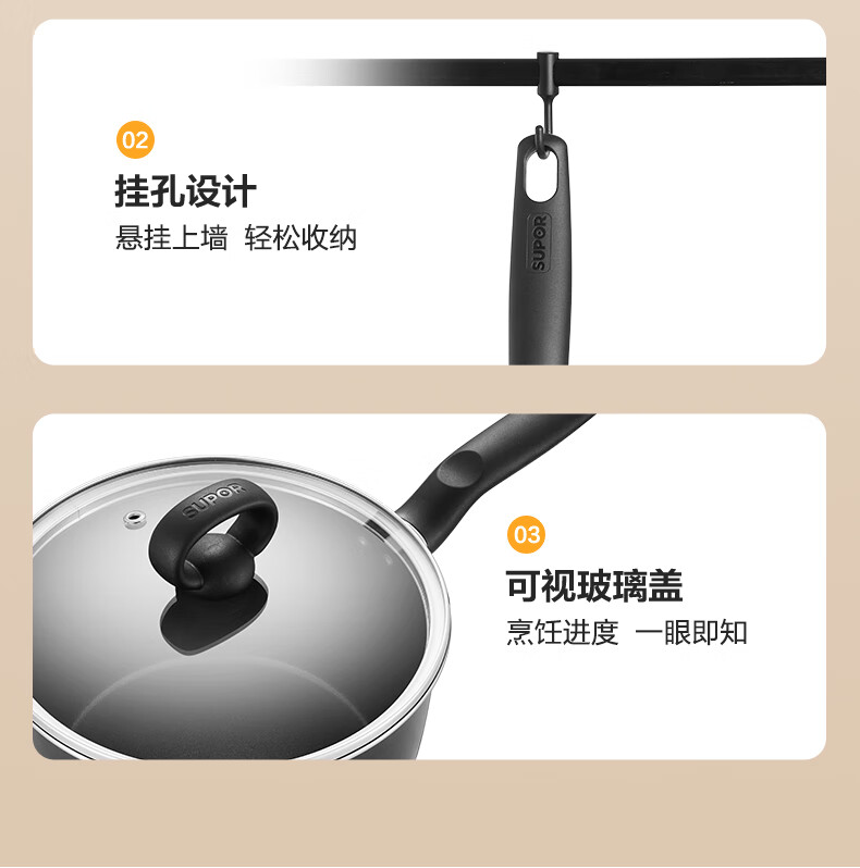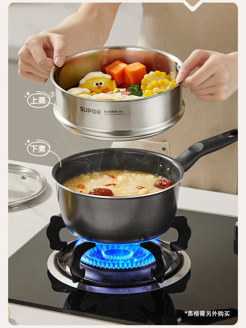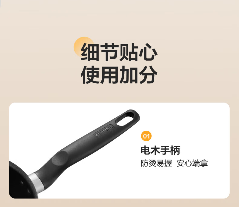 SUPOR Qucai non-stick milk pot, food supplement pot, instant noodle pot ET20AKP09- BK pearlescent black 20cm