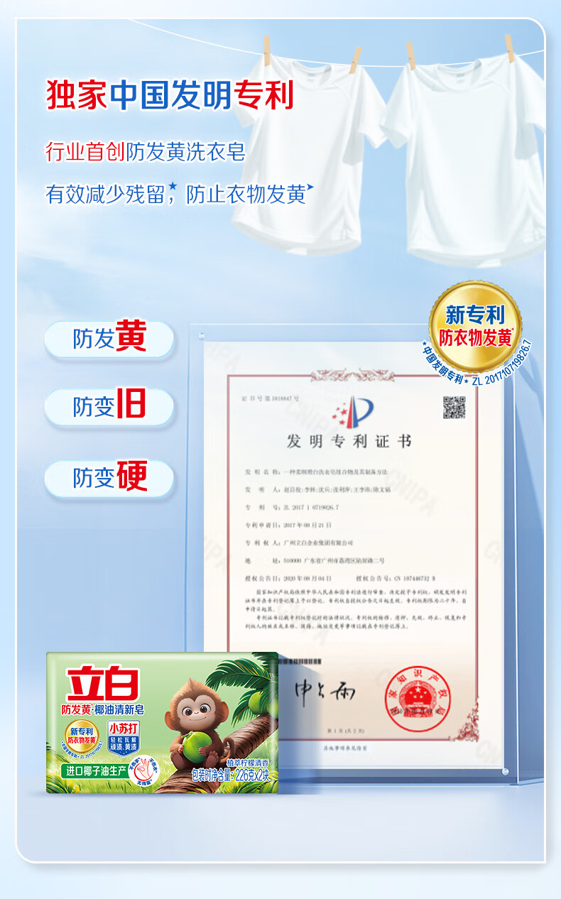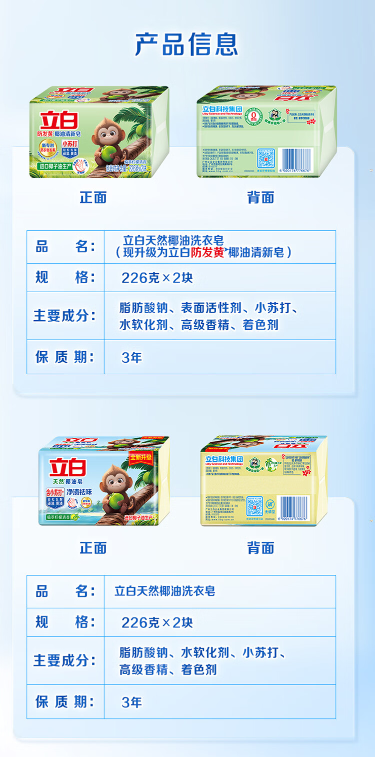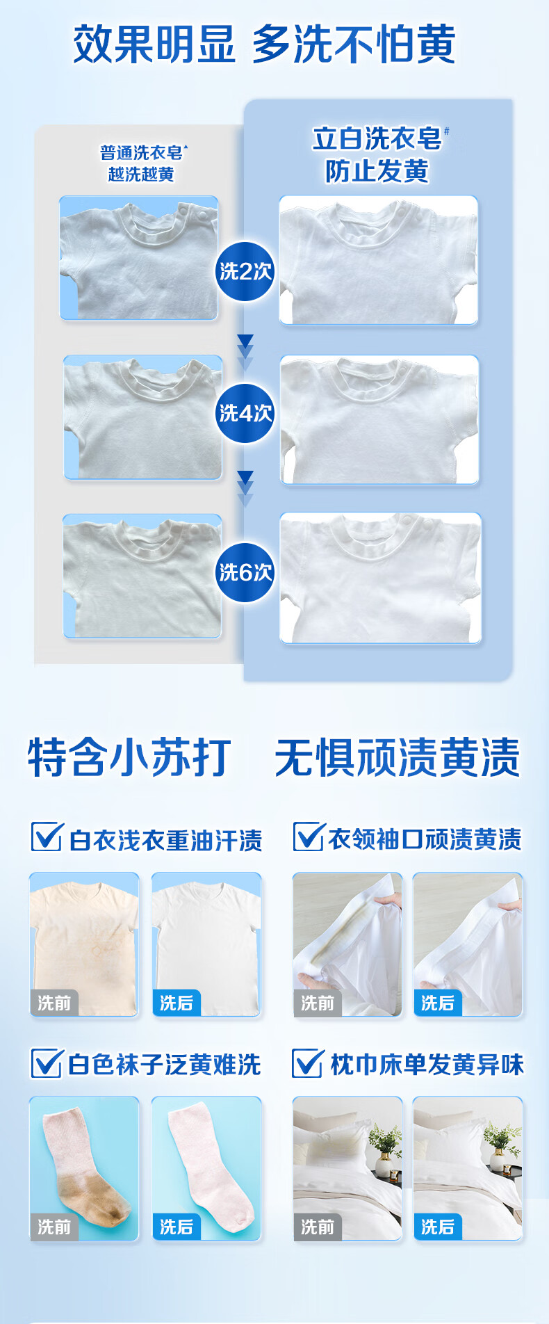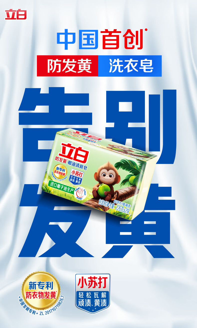 Liby baking soda laundry soap 226g*2 pieces*3 sets, plant extract lemon fragrance, special stain and odor removal soap