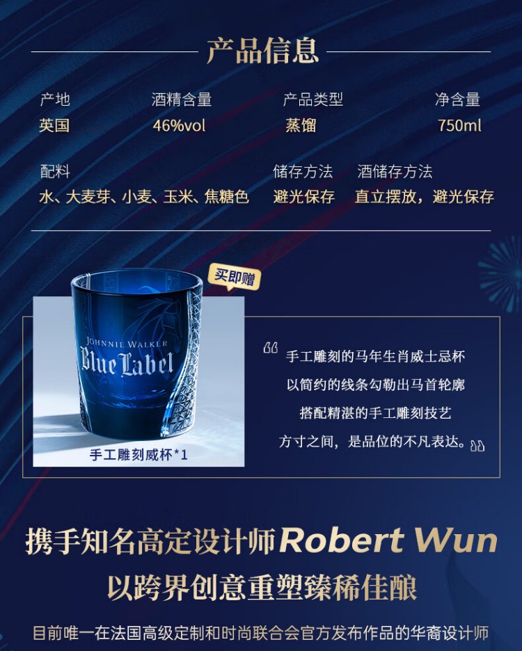 JOHNNIE WALKER Blue Label Blue Label Ma Yue Xin Cheng Special Edition Zodiac Wine Gift Box Whiskey Wine 750ml New Year Gift