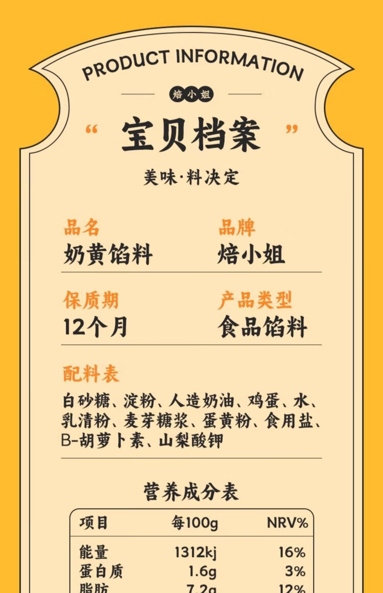 Miss Bao's custard filling, moon cake buns, egg yolk pastry filling, pure commercial household semi-finished product 500g