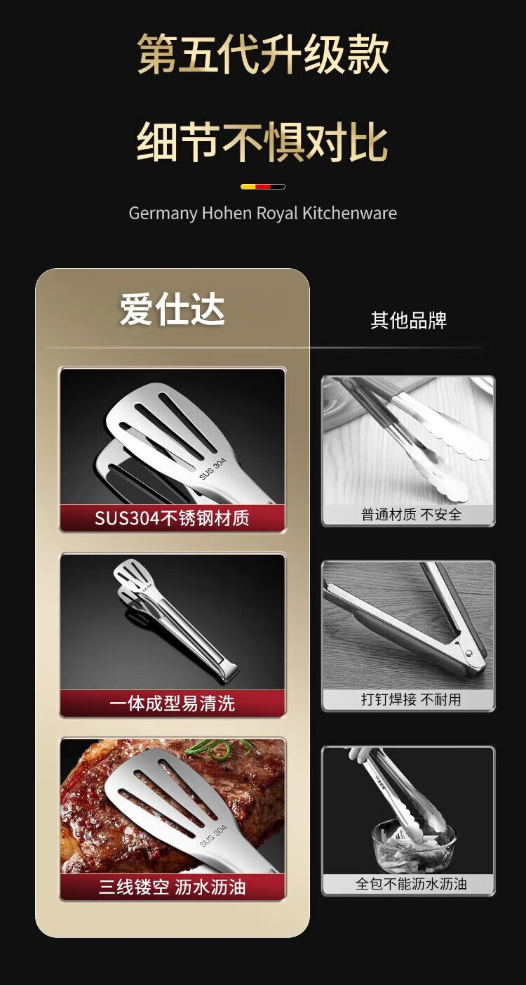 Aistar steak clip barbecue clip kitchen food clip 304 stainless steel food clip multi-functional anti-scalding barbecue clip