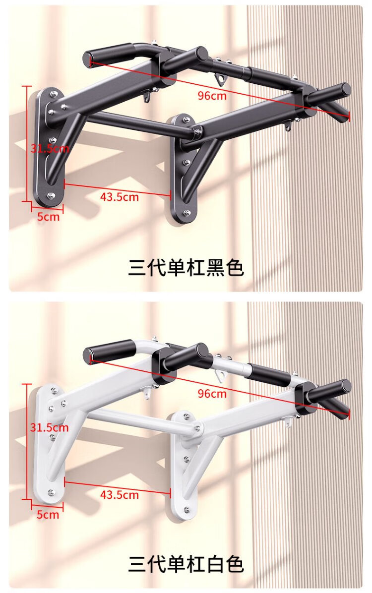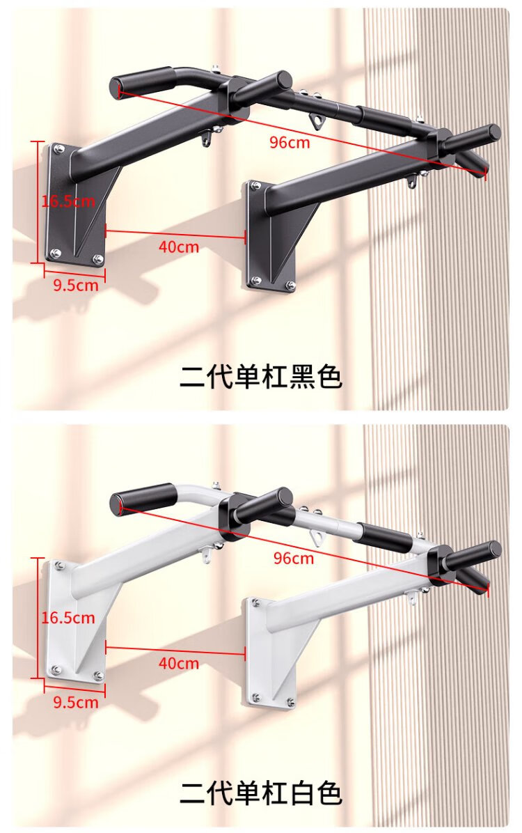 Zhuo brand pull-up device home indoor punched horizontal bar wall fixed single pole fitness equipment trainer 2nd generation black model