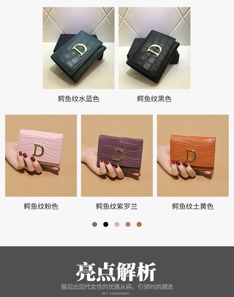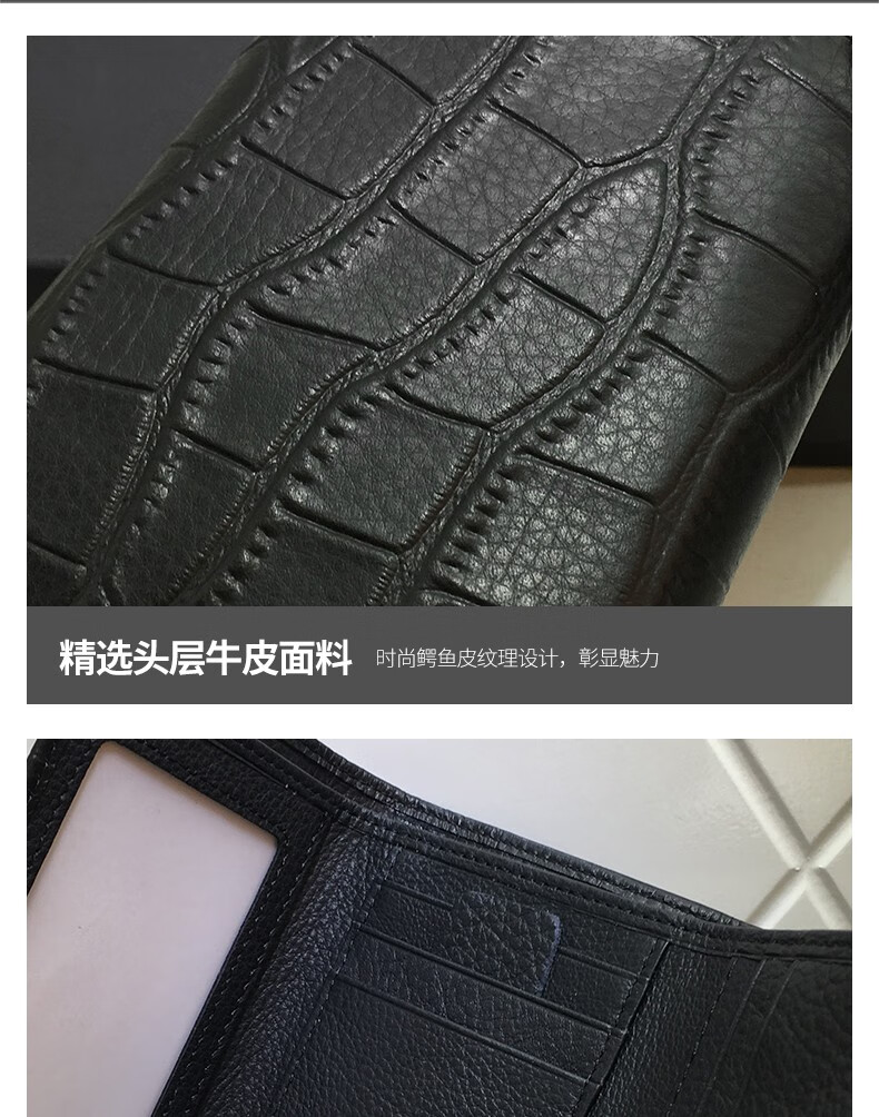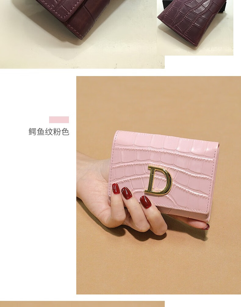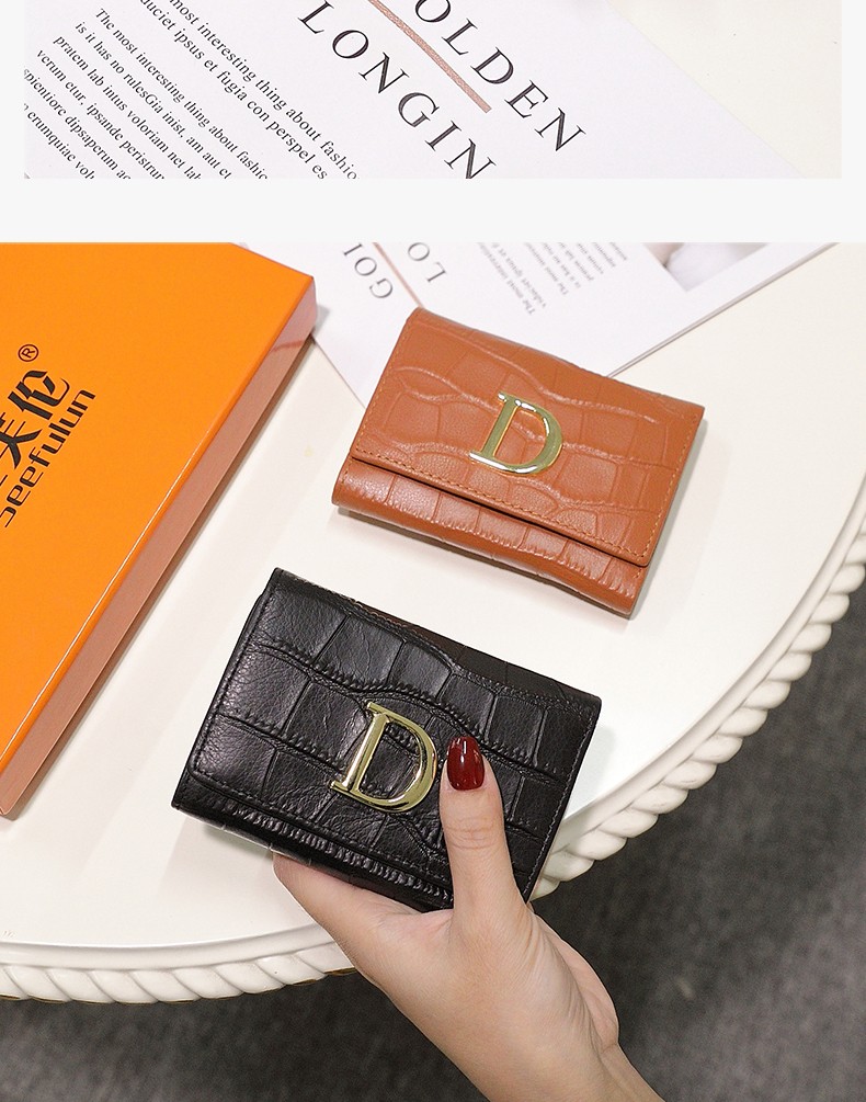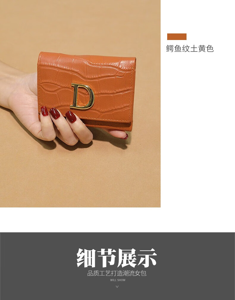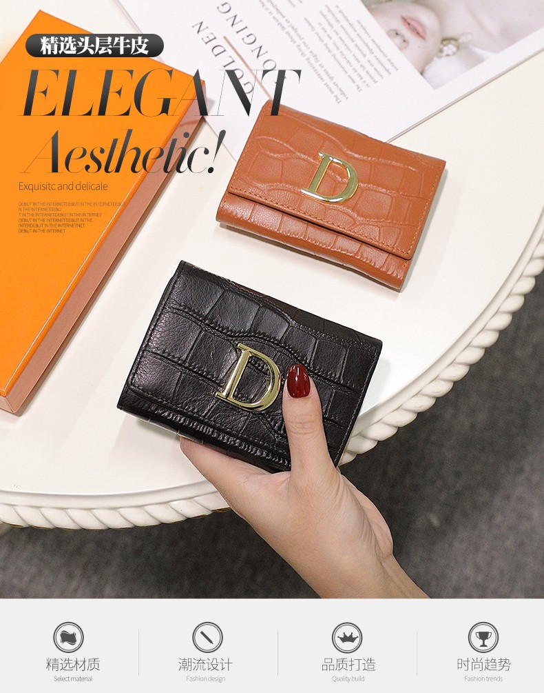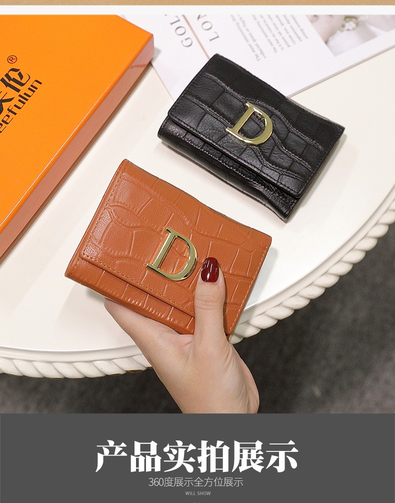 Sephoron Genuine Leather Short Wallet Women's Simple Casual Folding Wallet 2026 New Crocodile Pattern Soft Cowhide Thin Wallet Crocodile Pattern Black