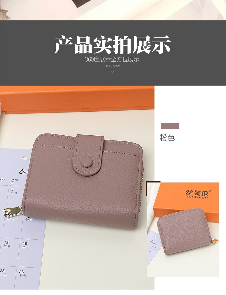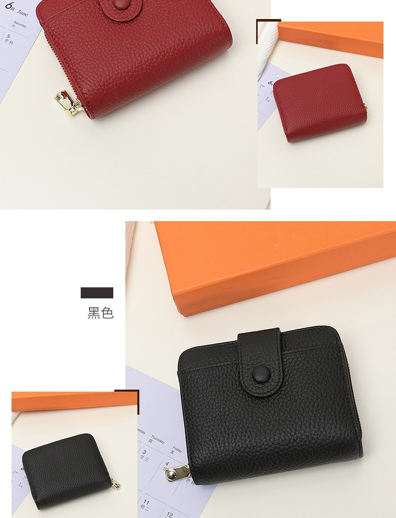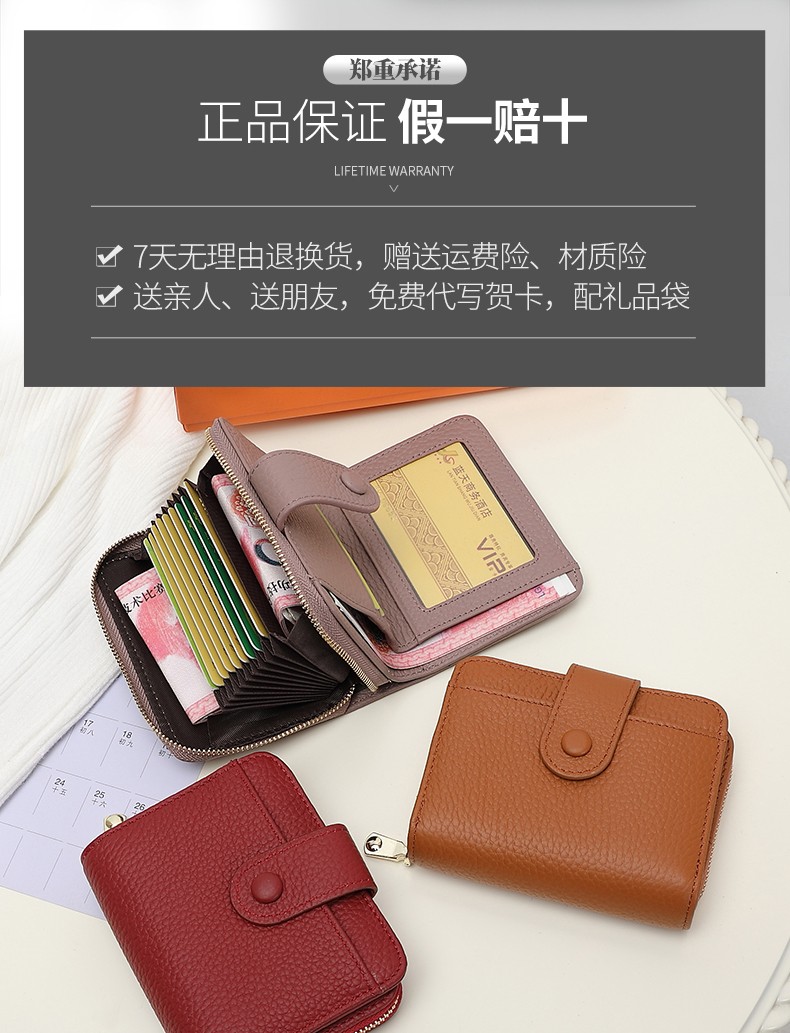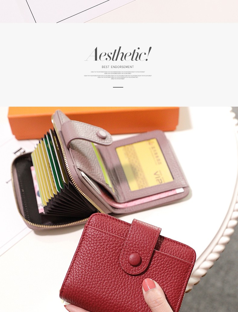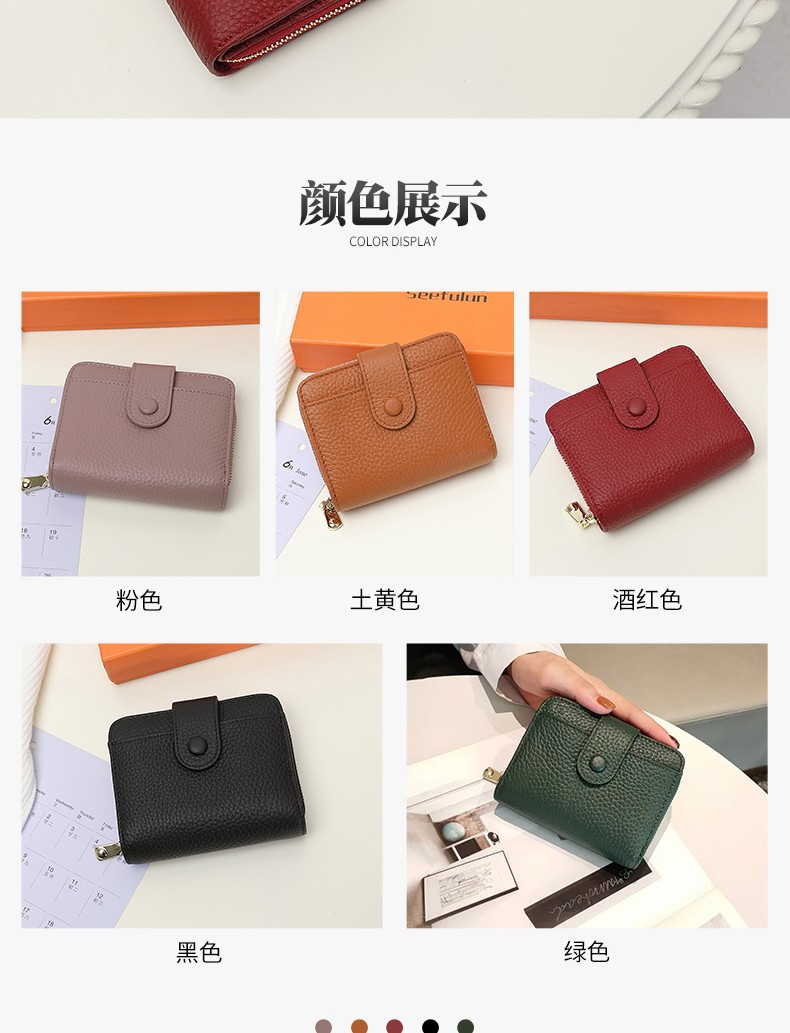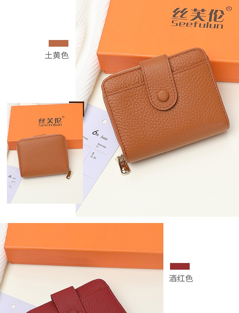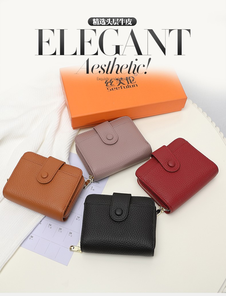 Sephoron 2026 New Genuine Leather Short Wallet Card Holder Integrated Folding Wallet Women's Versatile Valentine's Day Zipper Card Holder Soft Leather Burgundy