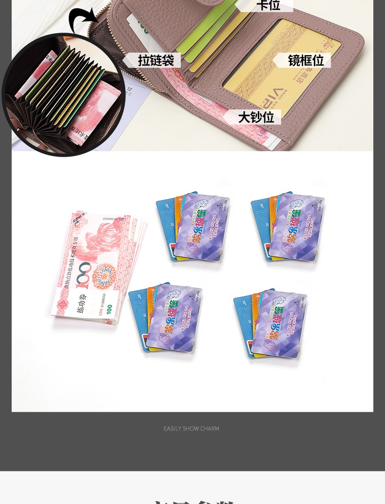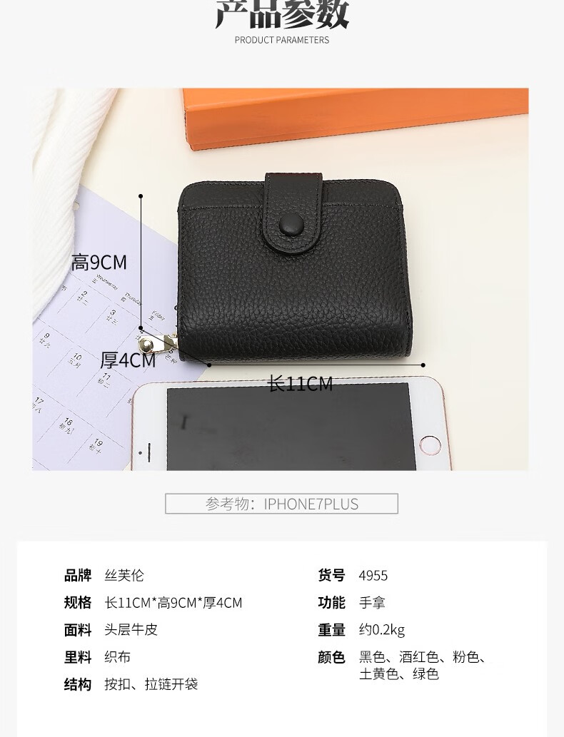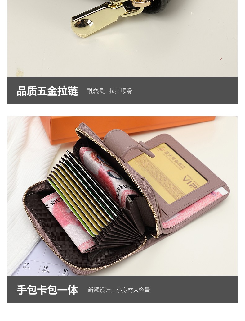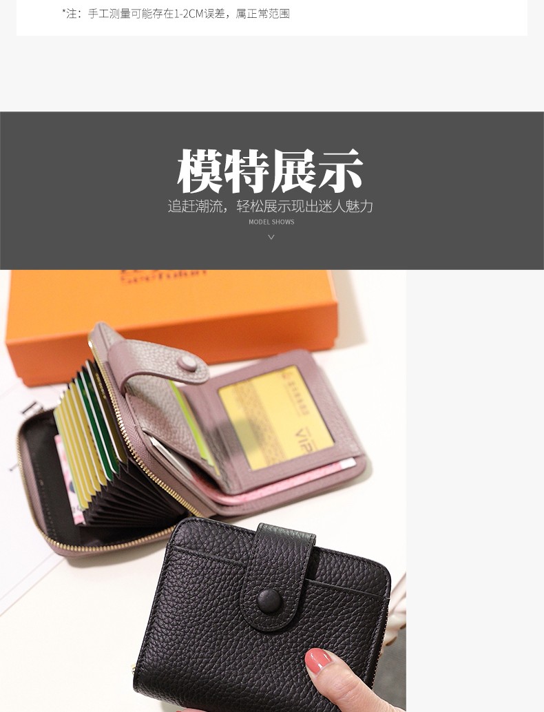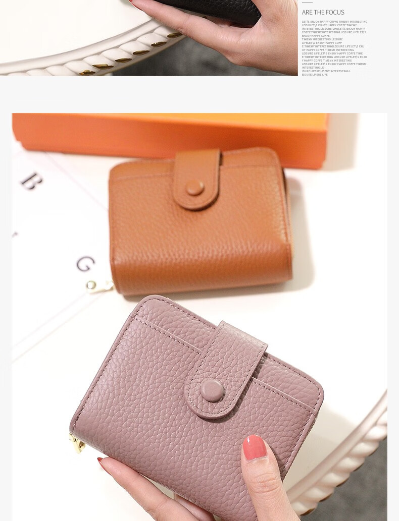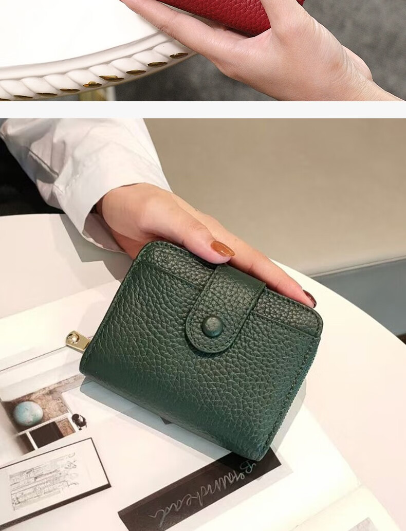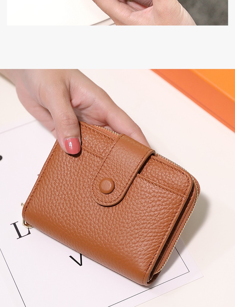 Sephoron 2026 New Genuine Leather Short Wallet Card Holder Integrated Folding Wallet Women's Versatile Valentine's Day Zipper Card Holder Soft Leather Burgundy