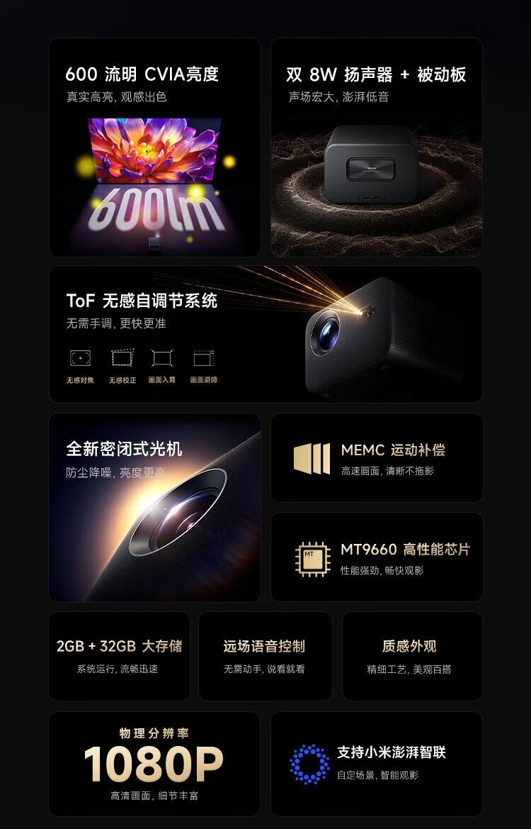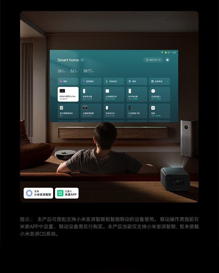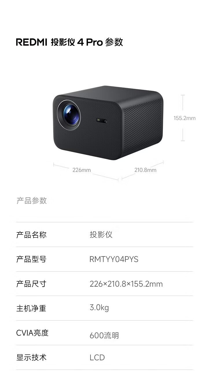 Xiaomi REDMI Projector 4 Pro Projector Smart Home Theater 600 Lumens CVIA Brightness Dual 8W Speakers + Bass Passive Board MEMC Dynamic Compensation