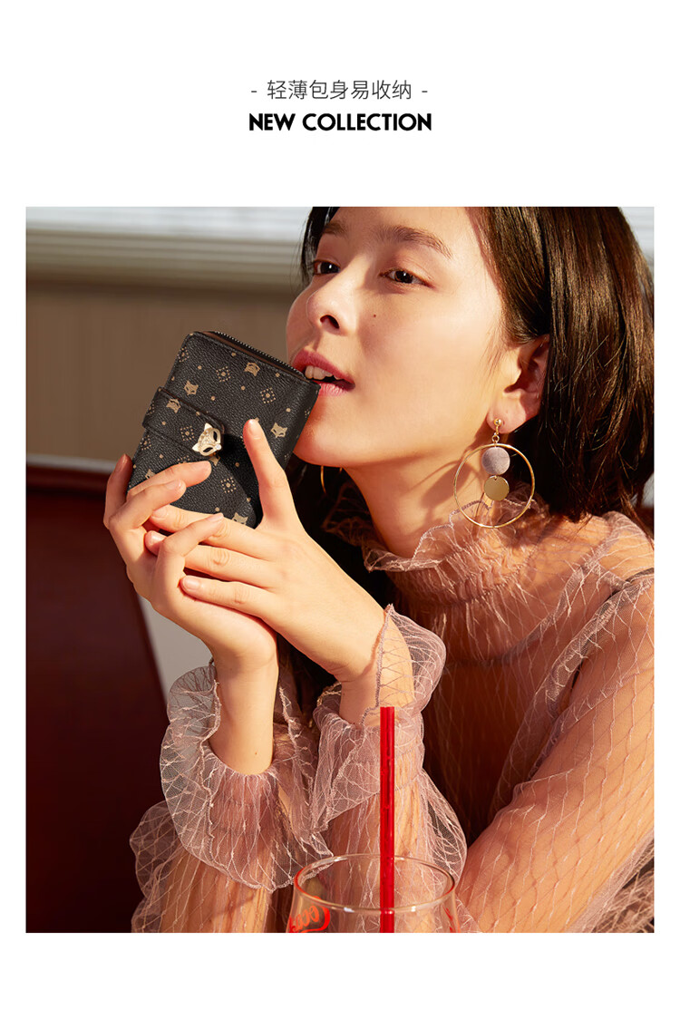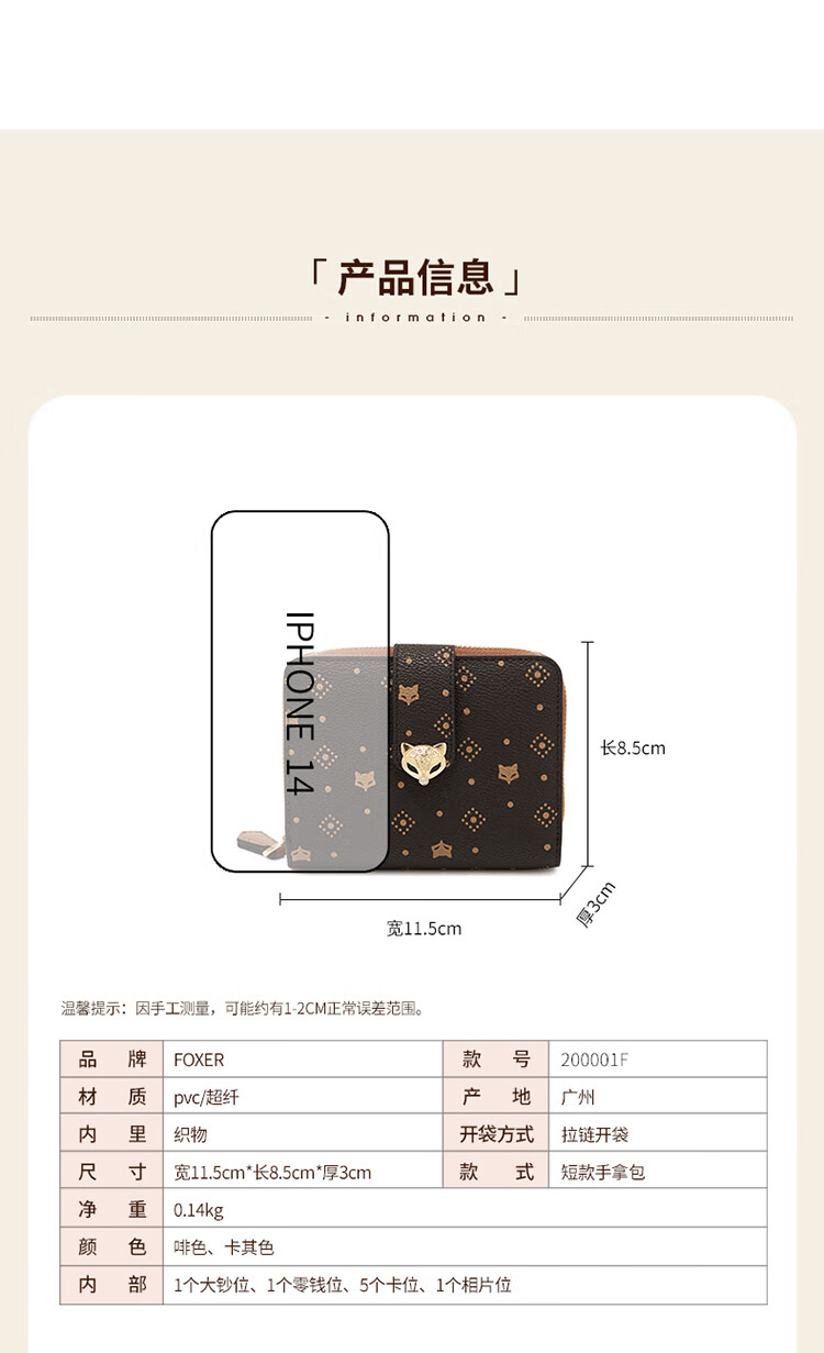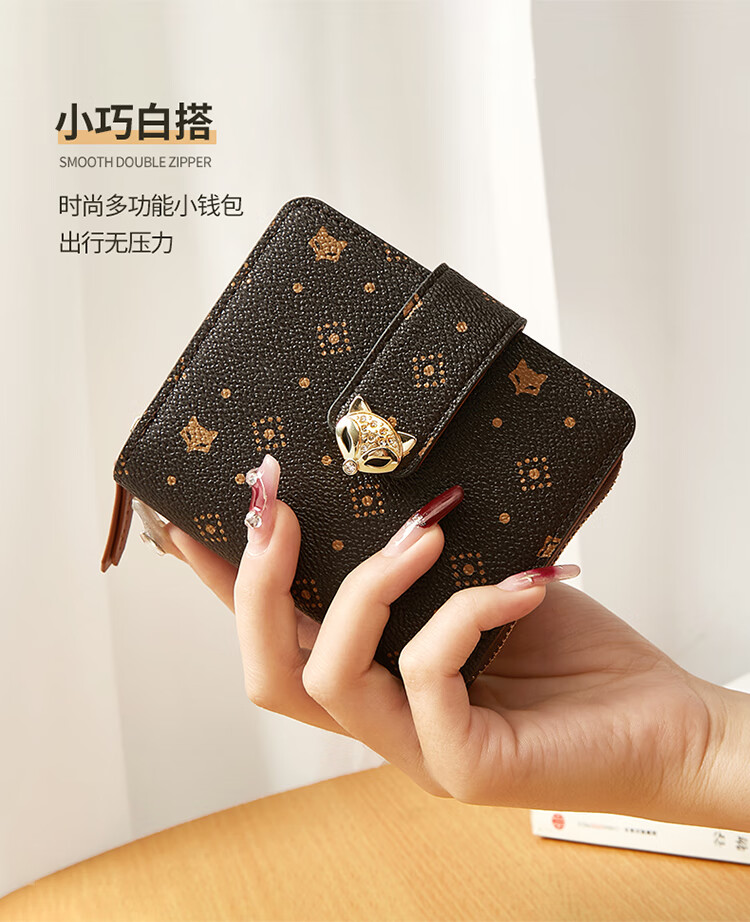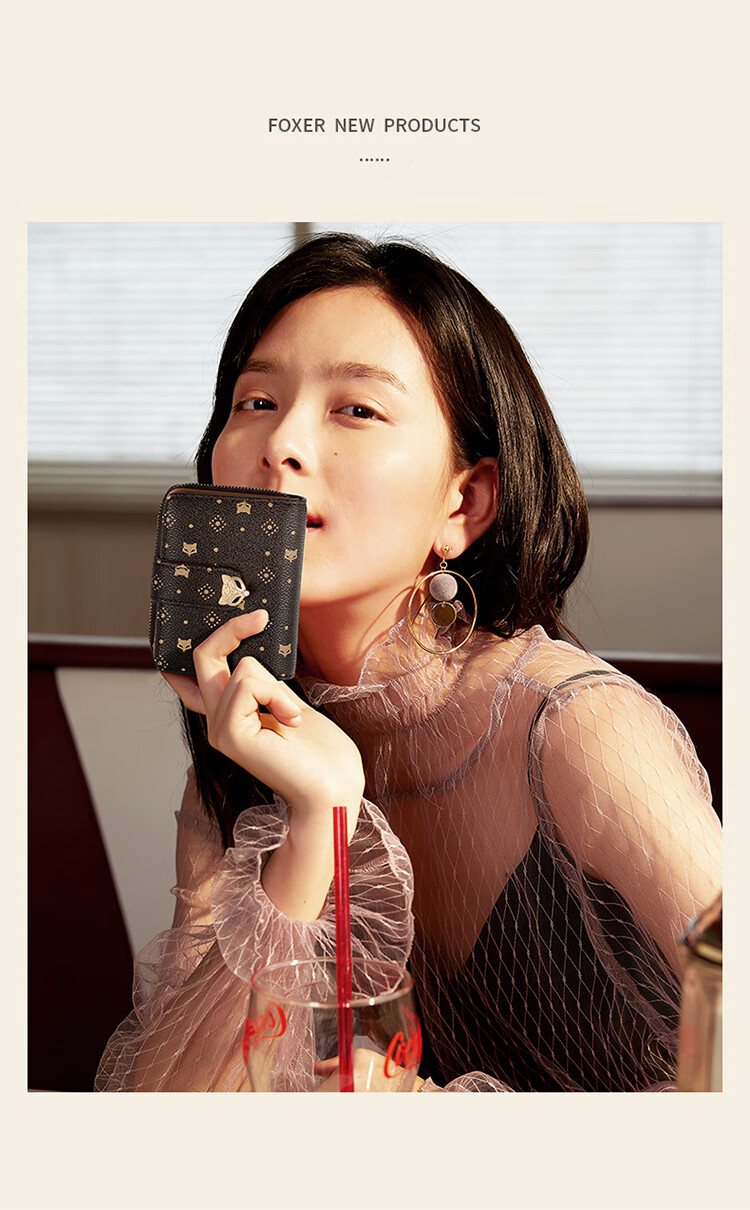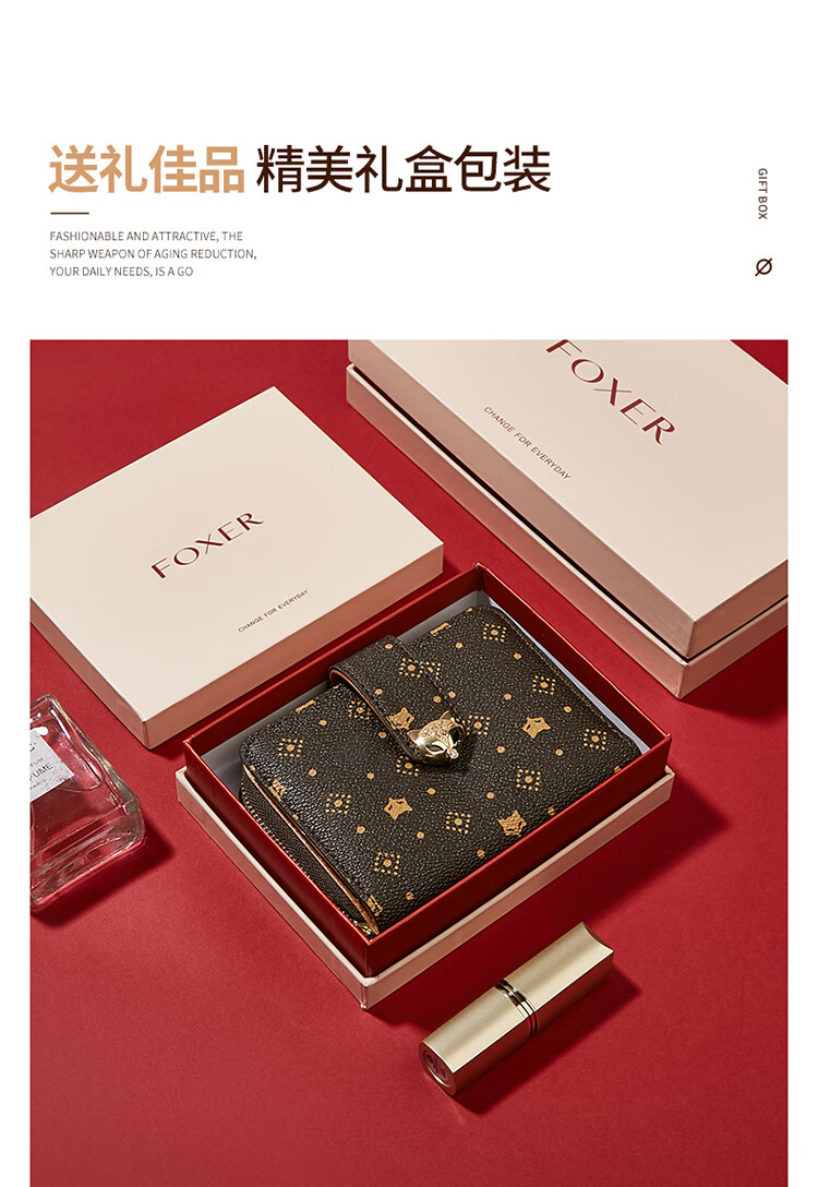 Golden Fox (FOXER) women's wallet large capacity short card holder wallet wallet clutch bag light luxury birthday Valentine's Day gift