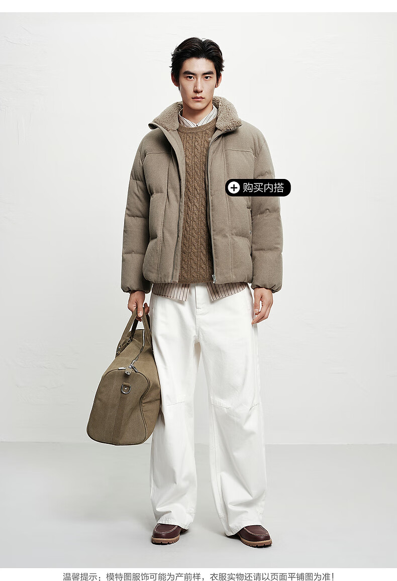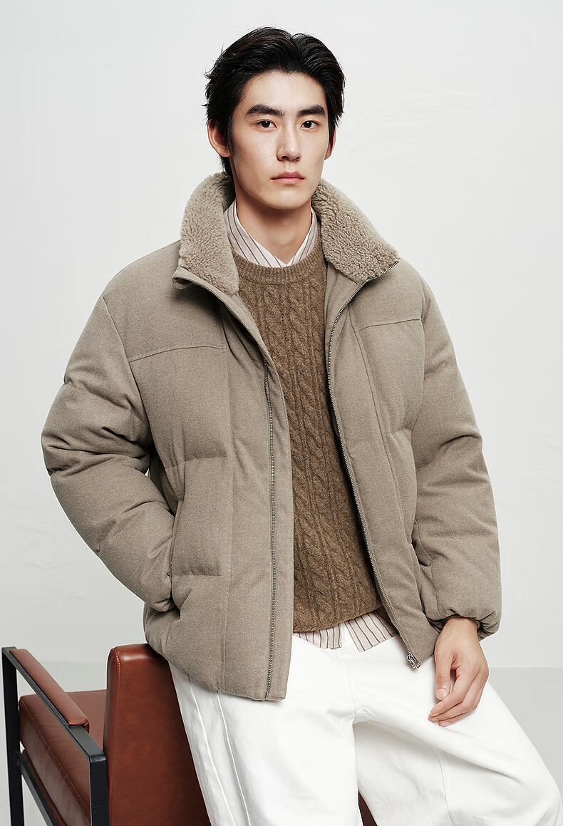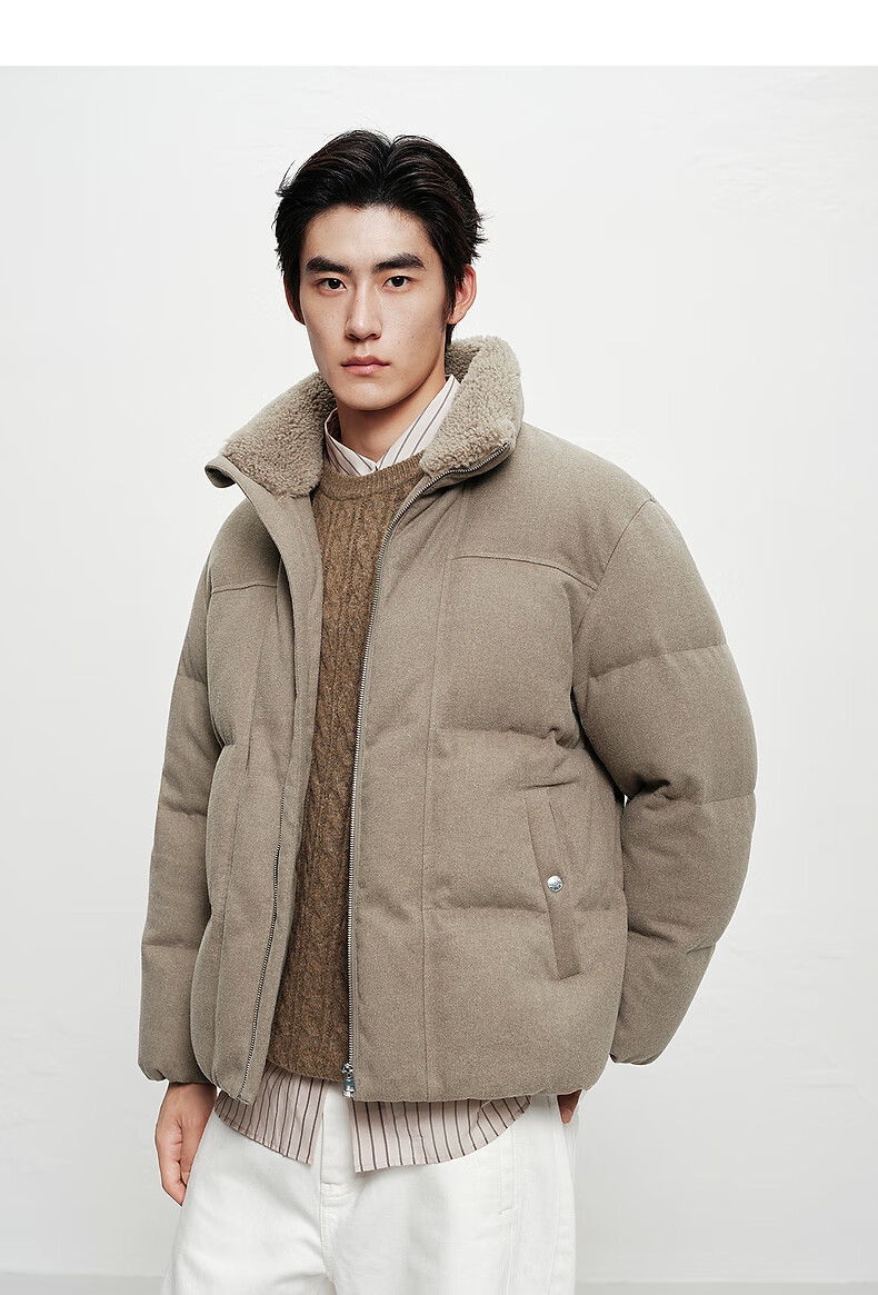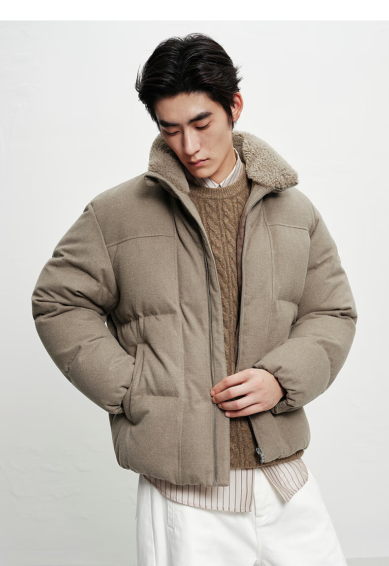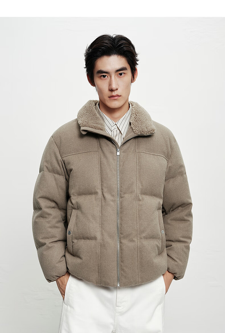 PEACEBIRD Men's Fur Collar Down Jacket Men's 25th Winter New Winter Protection# Pebble Brown First Batch L