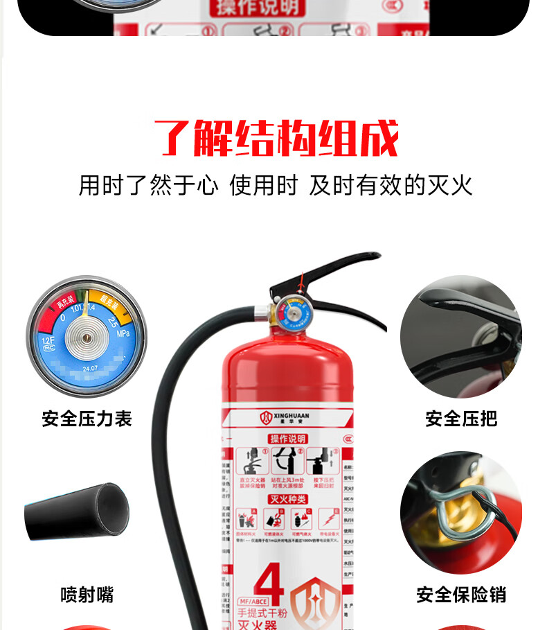 Xinghuaan 25-year-old new national standard dry powder fire extinguisher 5kg property commercial household national fire certification MF/ABCE5