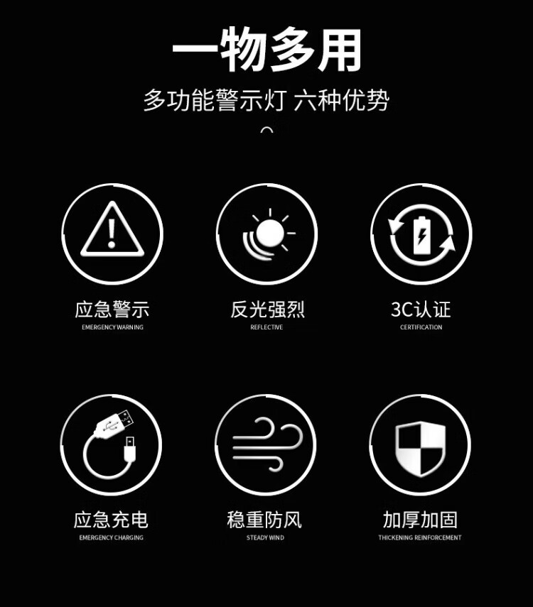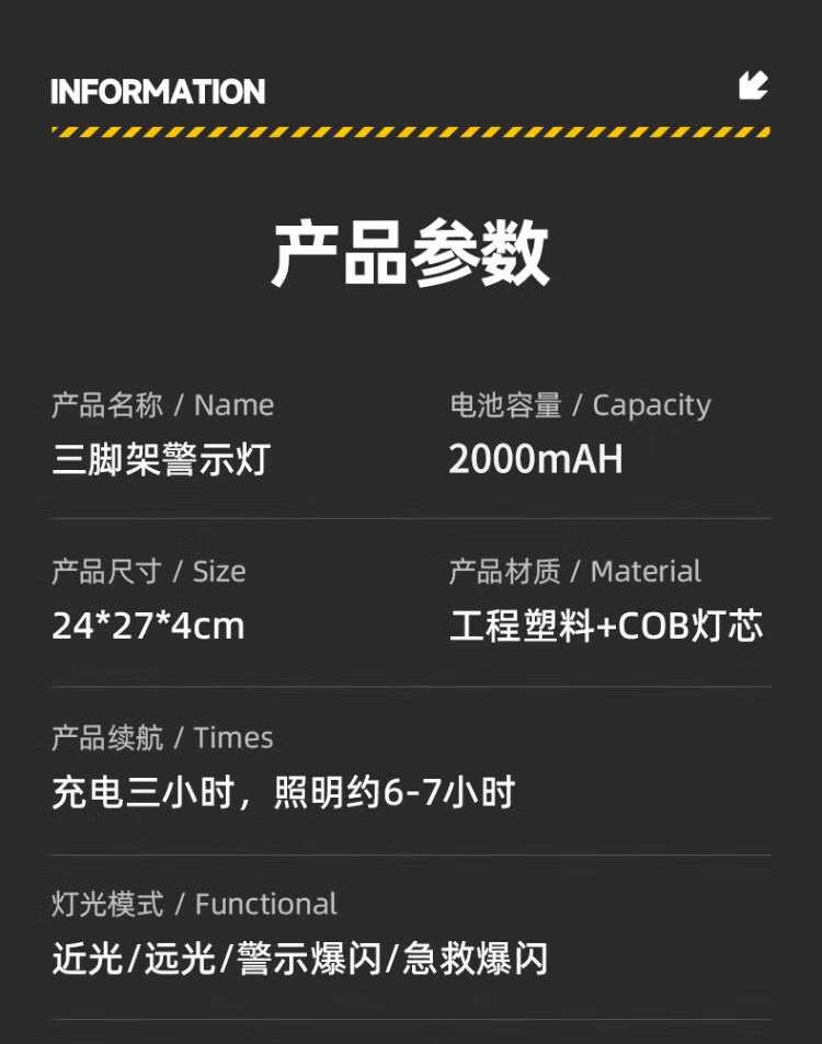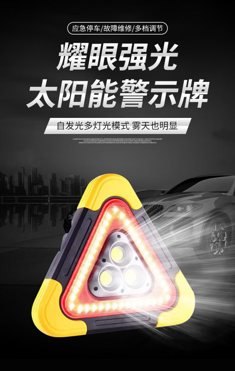 Jingshoudun tripod warning light LED car multifunctional parking emergency tripod safety warning sign solar charging