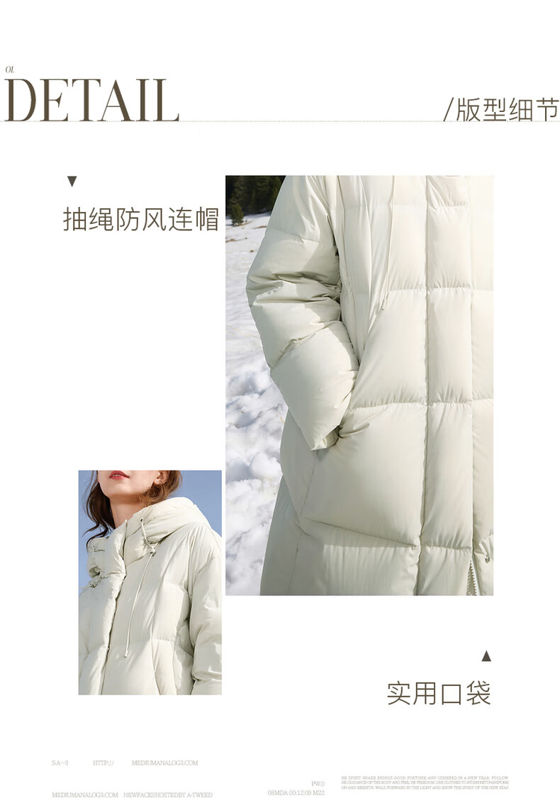 Sancai 2025 new winter loose long down jacket waterproof easy care quilt jacket M