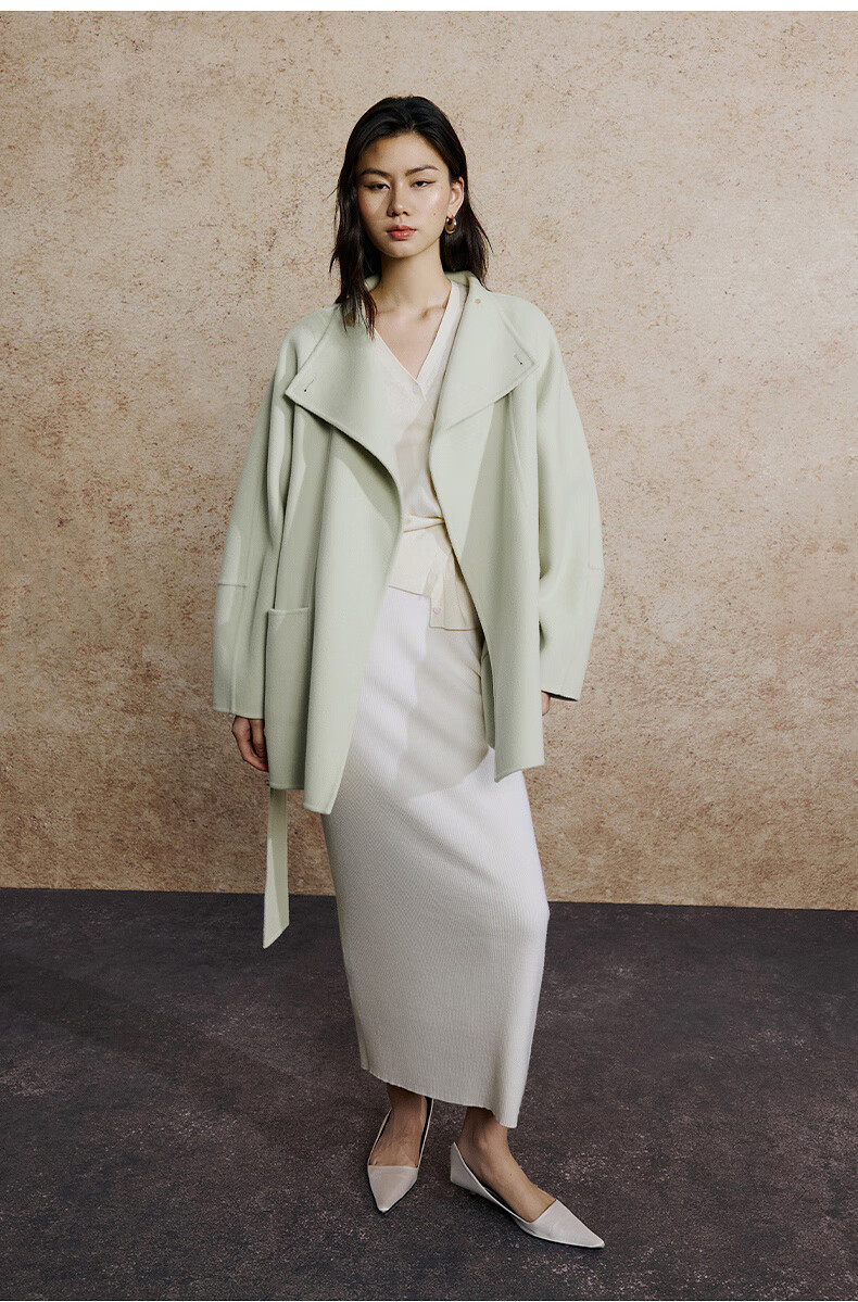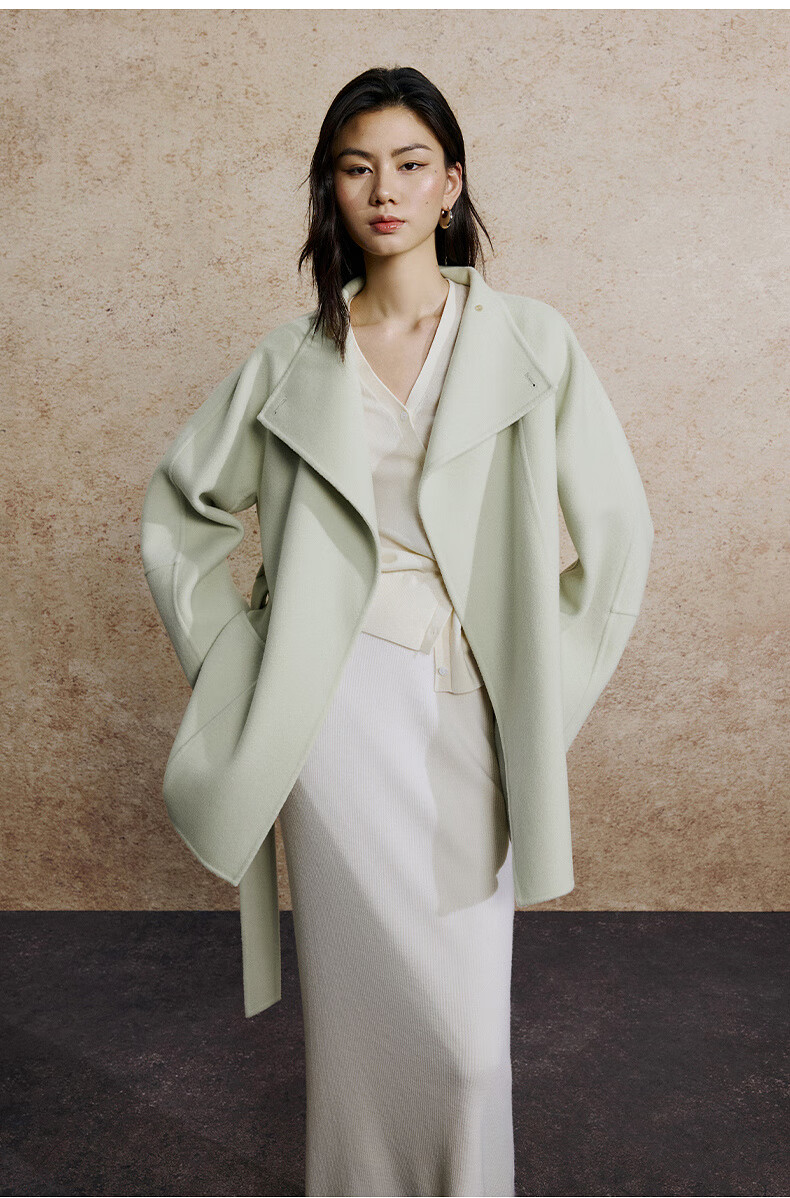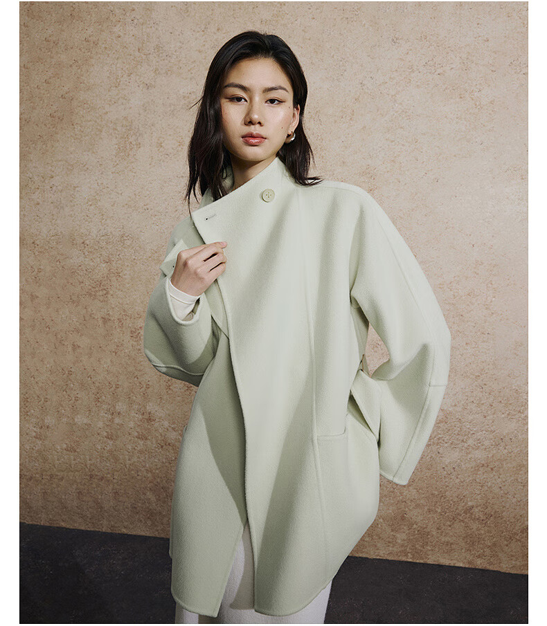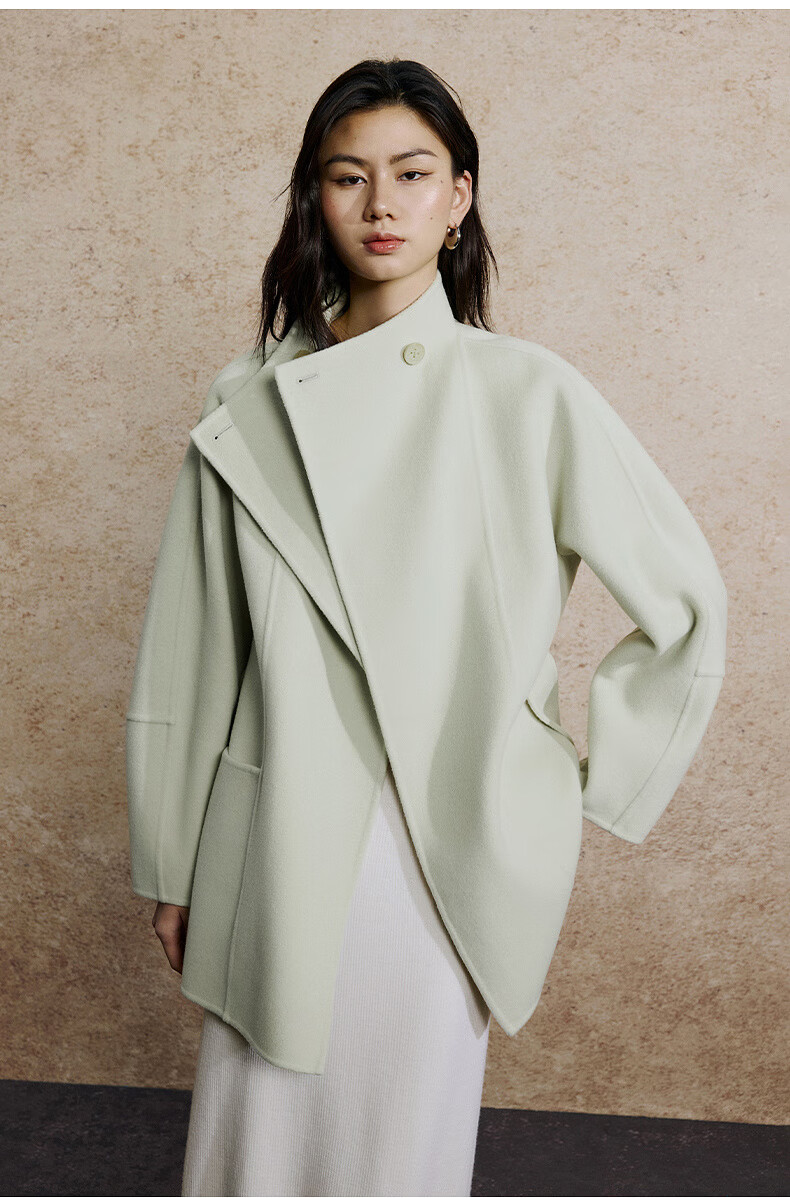 Zhizhi Xiangsiyin all-wool one-button swoosh coat, simple and light, autumn 2025, light green S