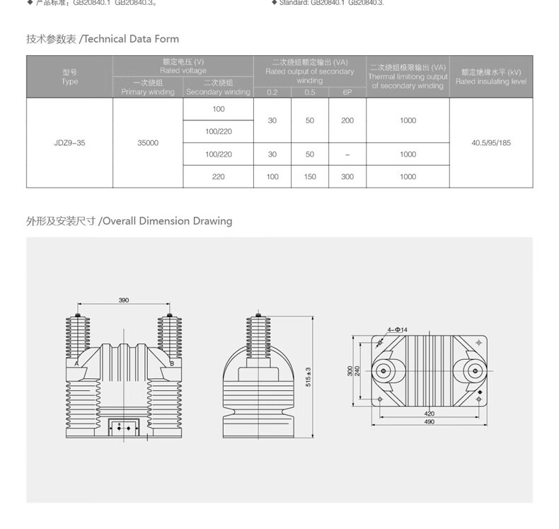 USAMR 35Kv indoor high voltage voltage transformer JDZ9-35Q single-phase fully insulated epoxy resin voltage transformer