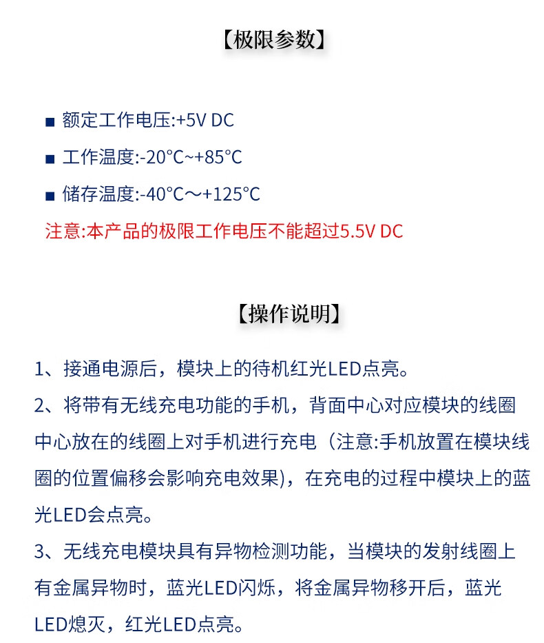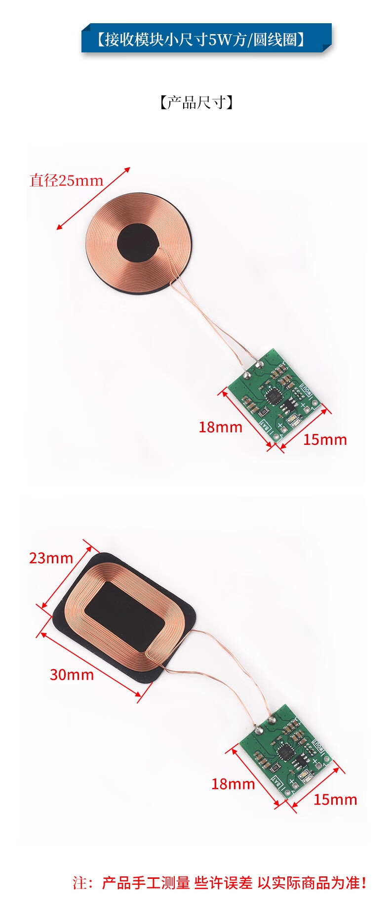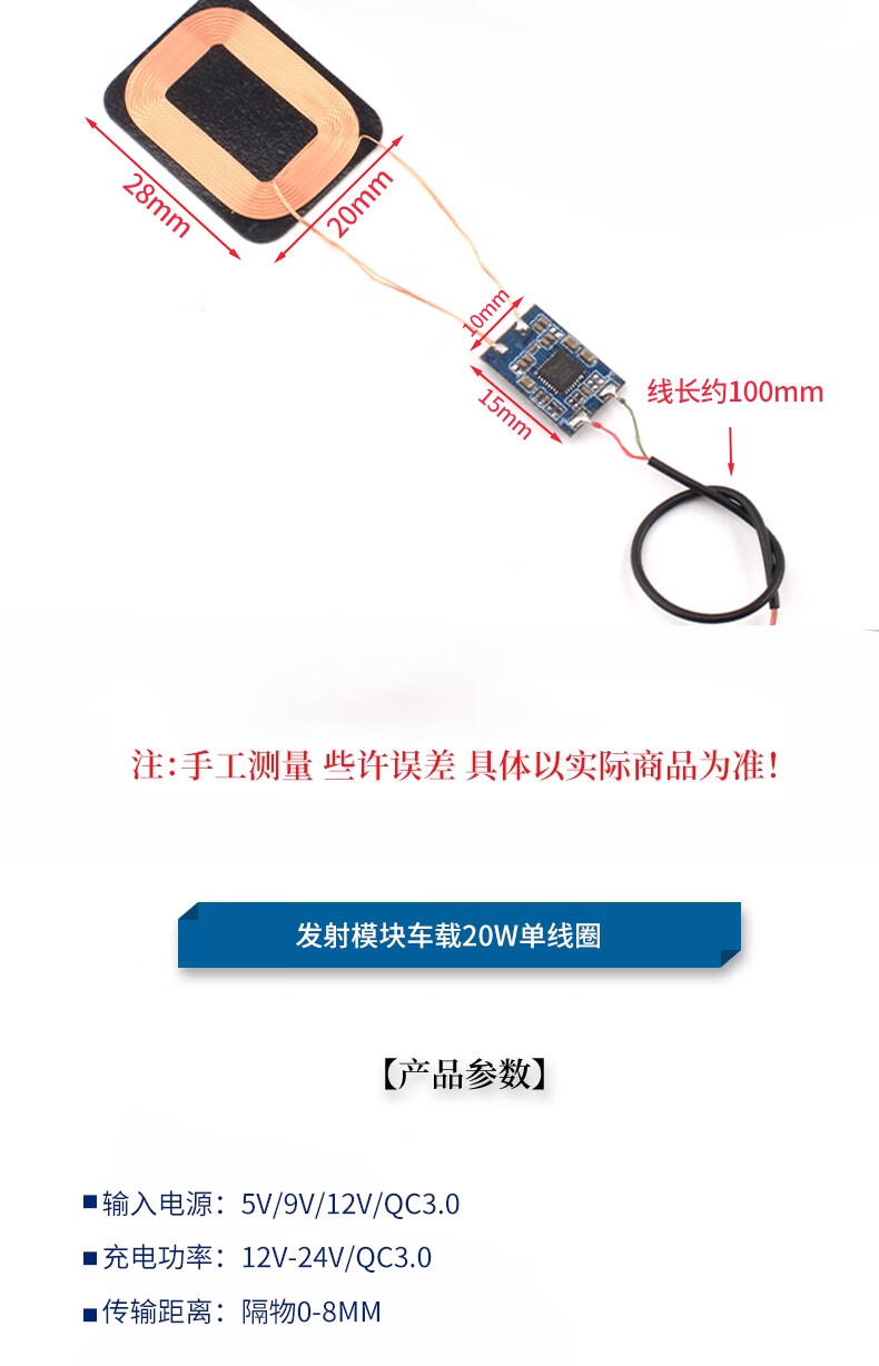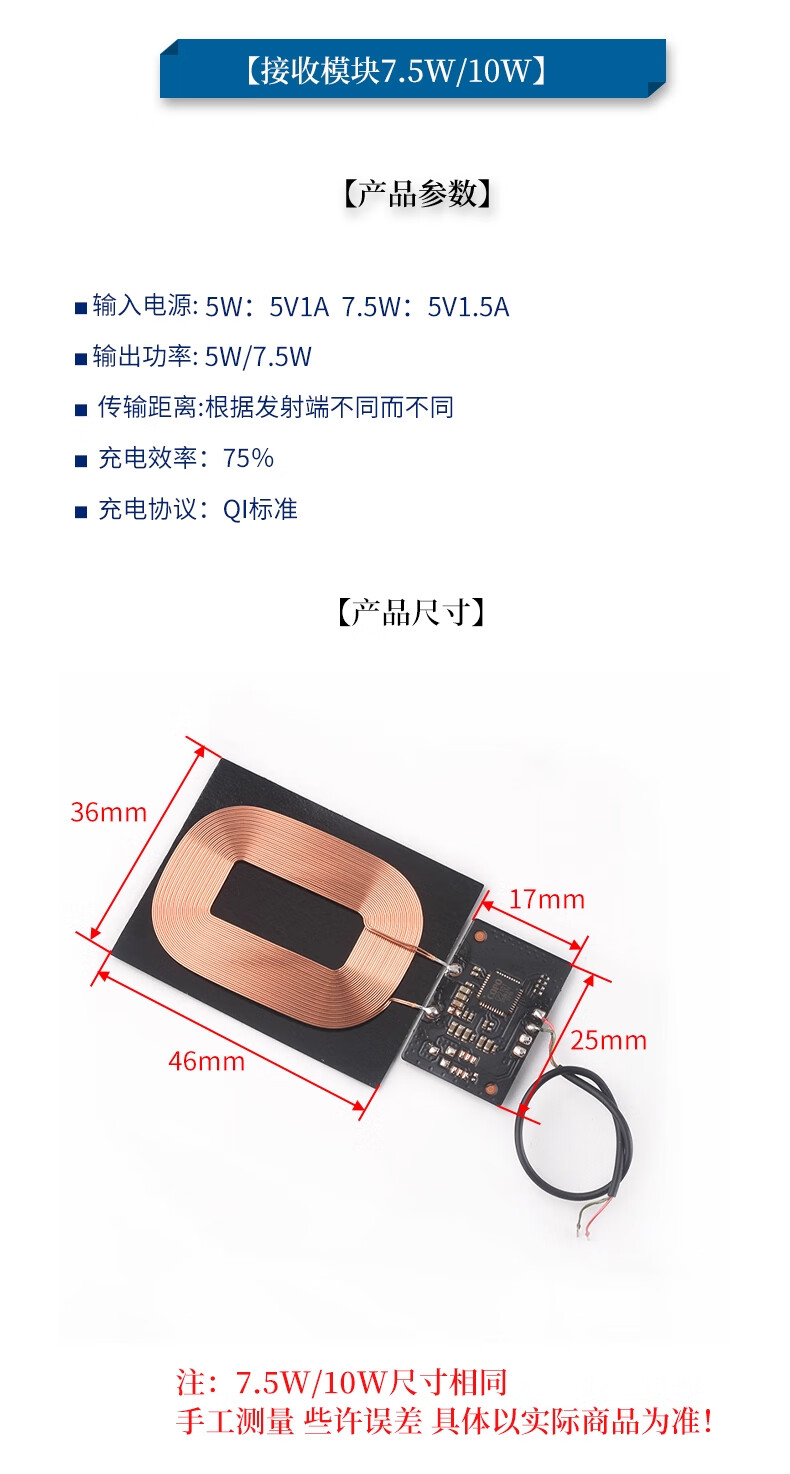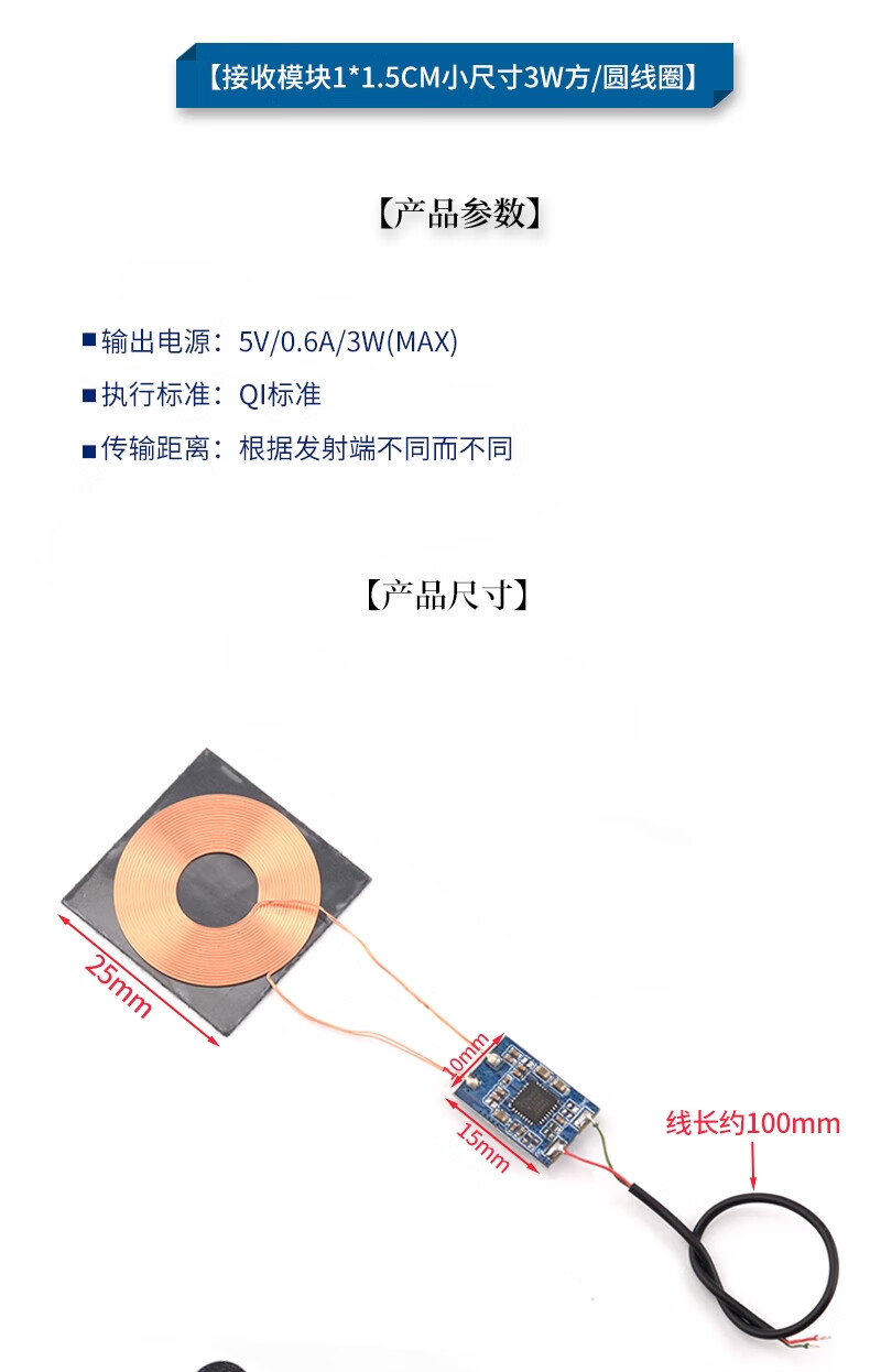ZAVE wireless power charging module receiving module small size 5W 1.5*1.8cm square coil