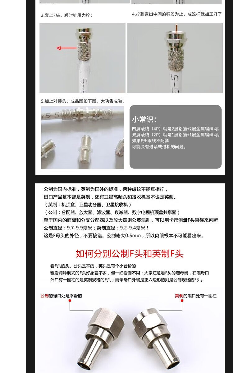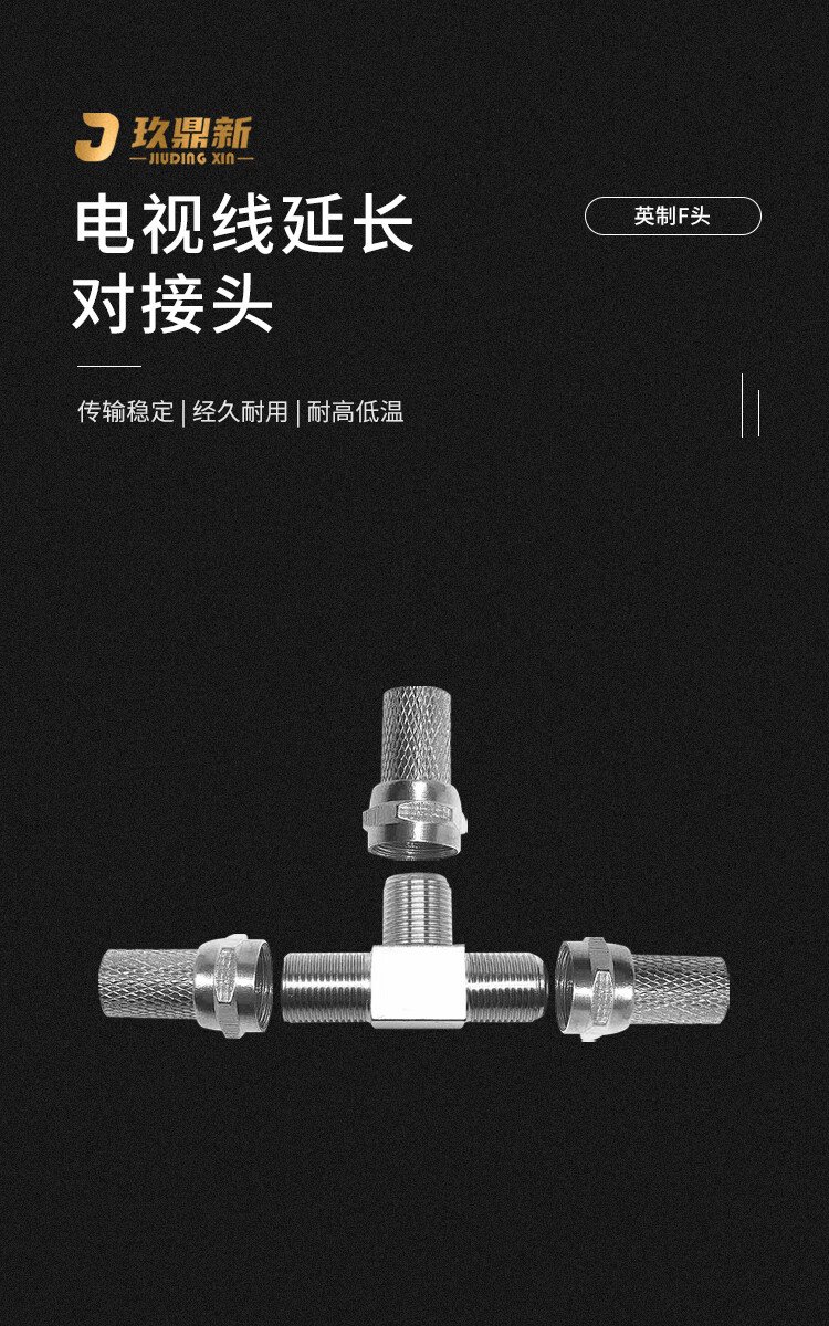 Jiudingxin cable TV cable HD closed-circuit antenna extension cable disconnected connector 2 F male headers + 1 straight header JDX-2FJY/1FKK