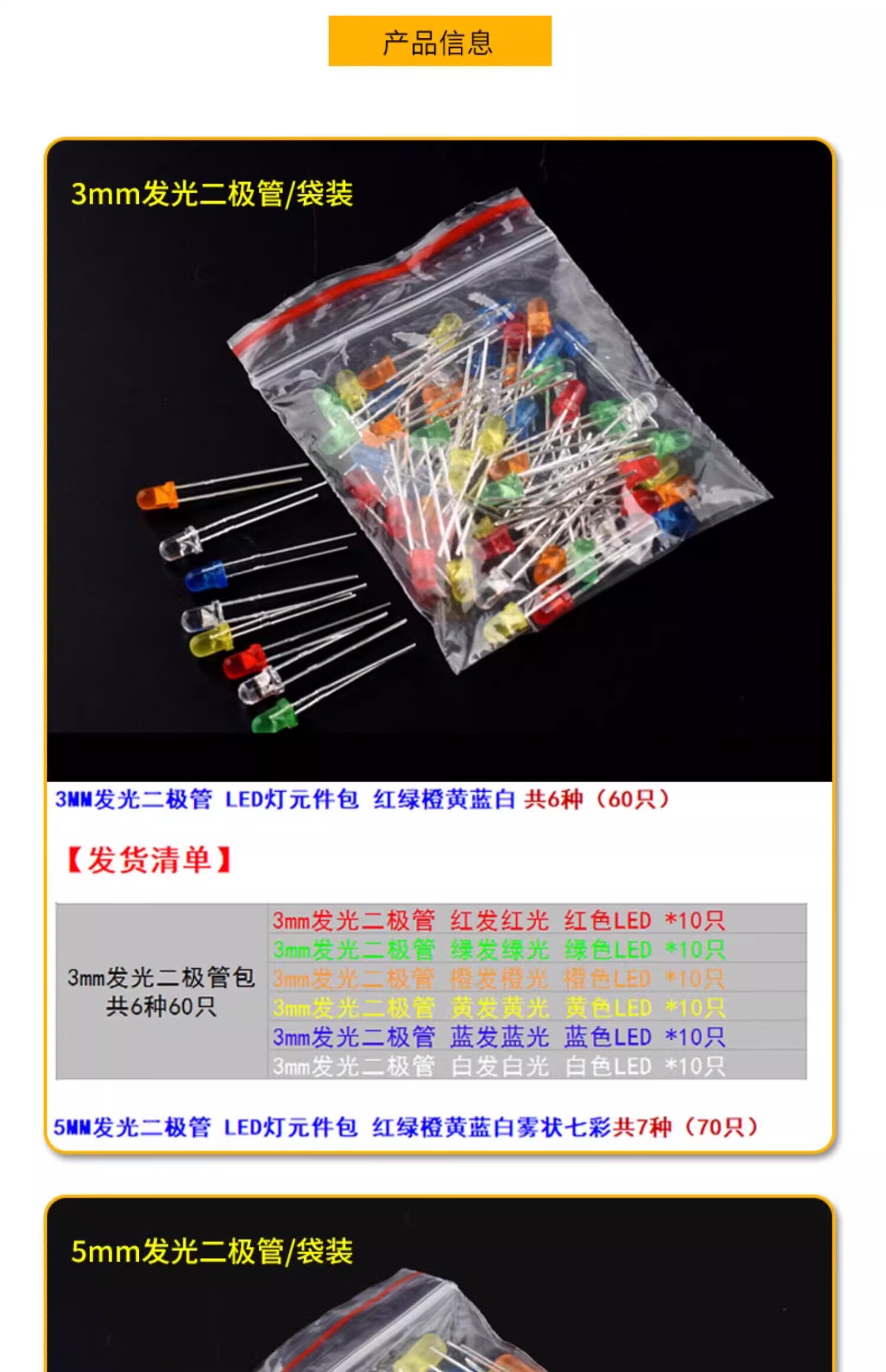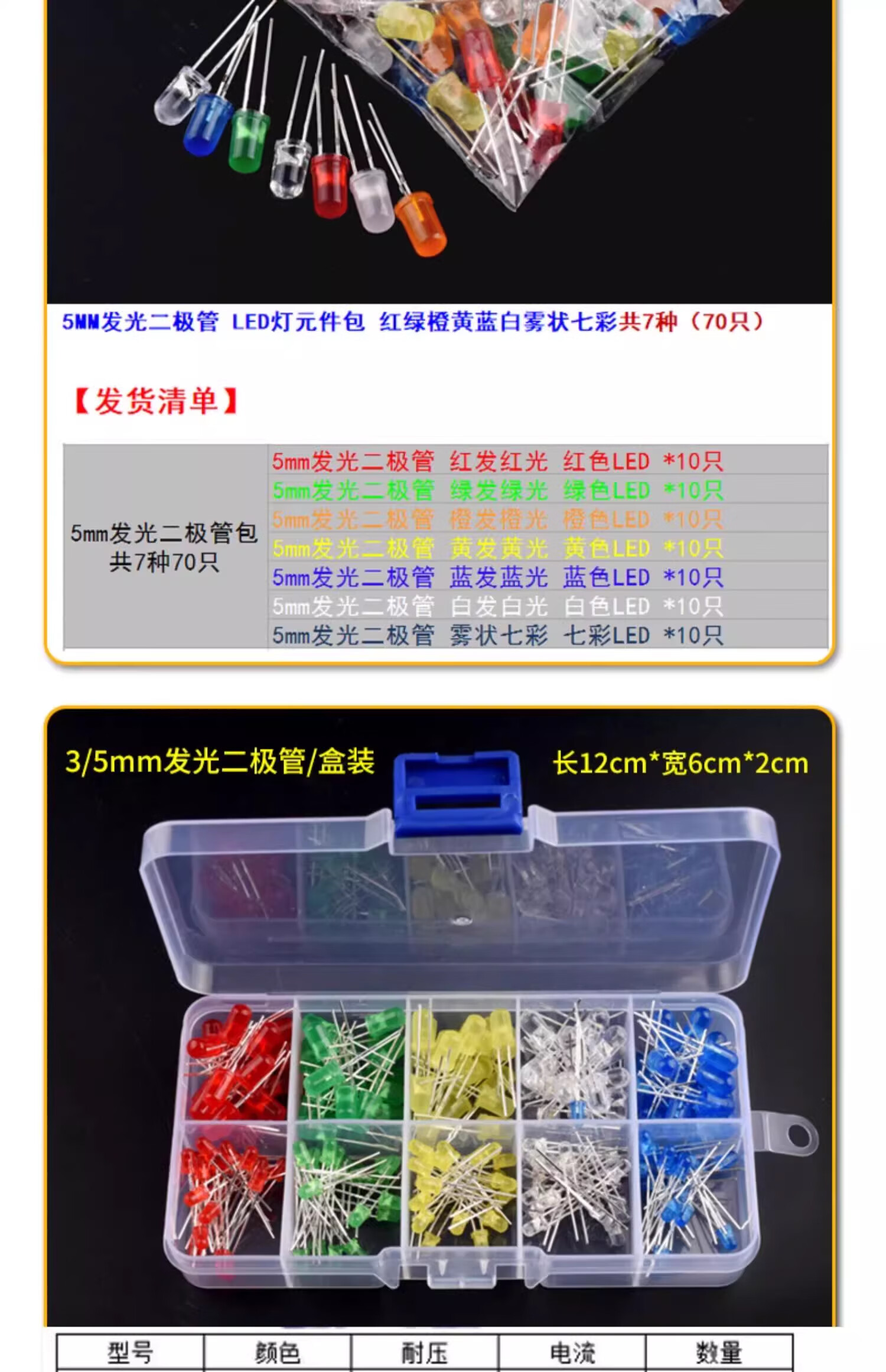 ZAVE light-emitting diode package LED lamp bead component package 3528LED package 5 types (50 pieces in total)