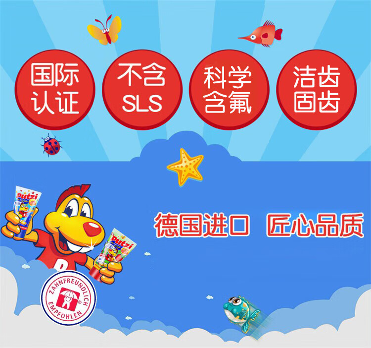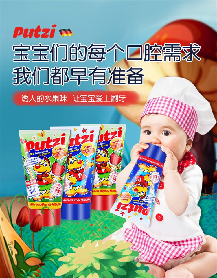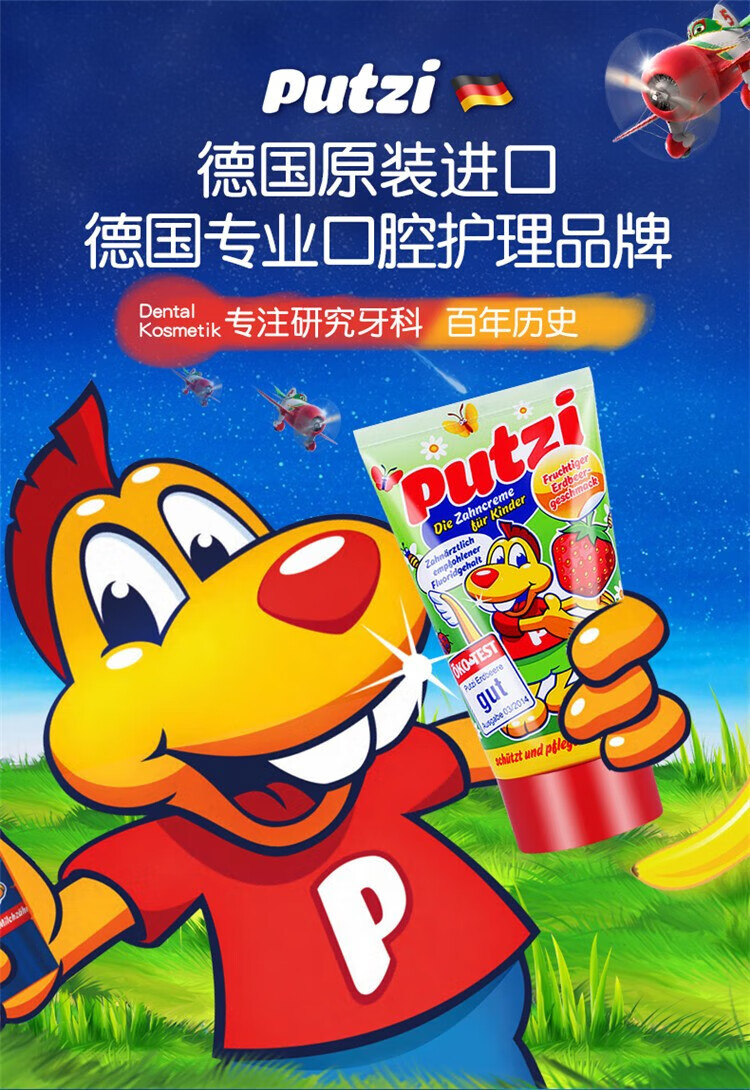Puci children's toothpaste imported from Germany, 0-10 years old, mild foam, low fluoride anti-cavity toothpaste, strawberry flavor 50ml