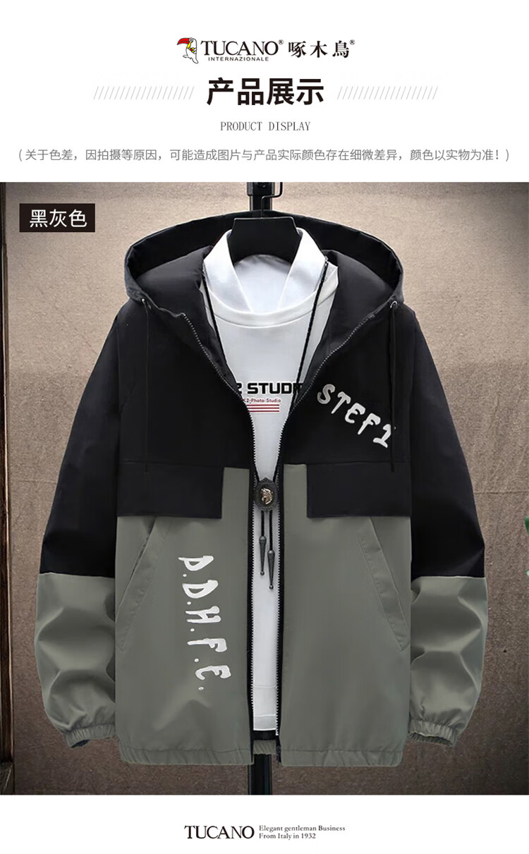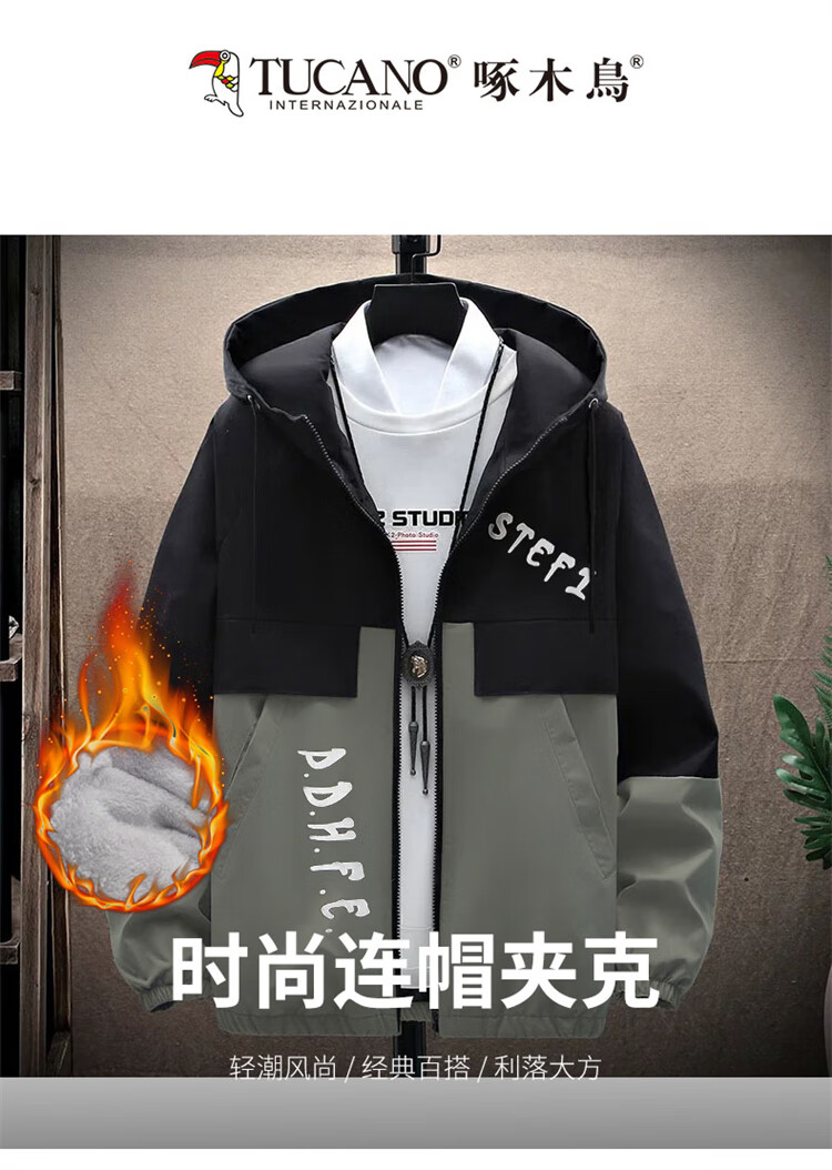 Woodpecker (TUCANO) Jacket Men's Autumn and Winter Work Jacket Men's Korean Style Casual Loose Handsome Men's Clothing Black Gray Velvet 2XL