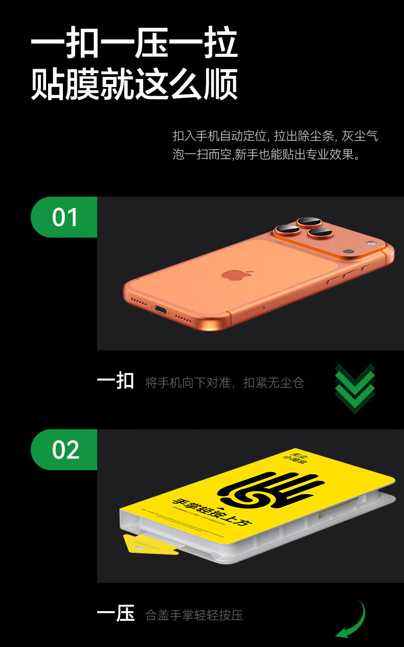 Pinsheng is suitable for Apple 17/16Pro tempered film iPhone 17/16Pro mobile phone film high-definition full coverage without blocking the screen, anti-fall, anti-fingerprint, dust-proof and dust-free, 2-piece film