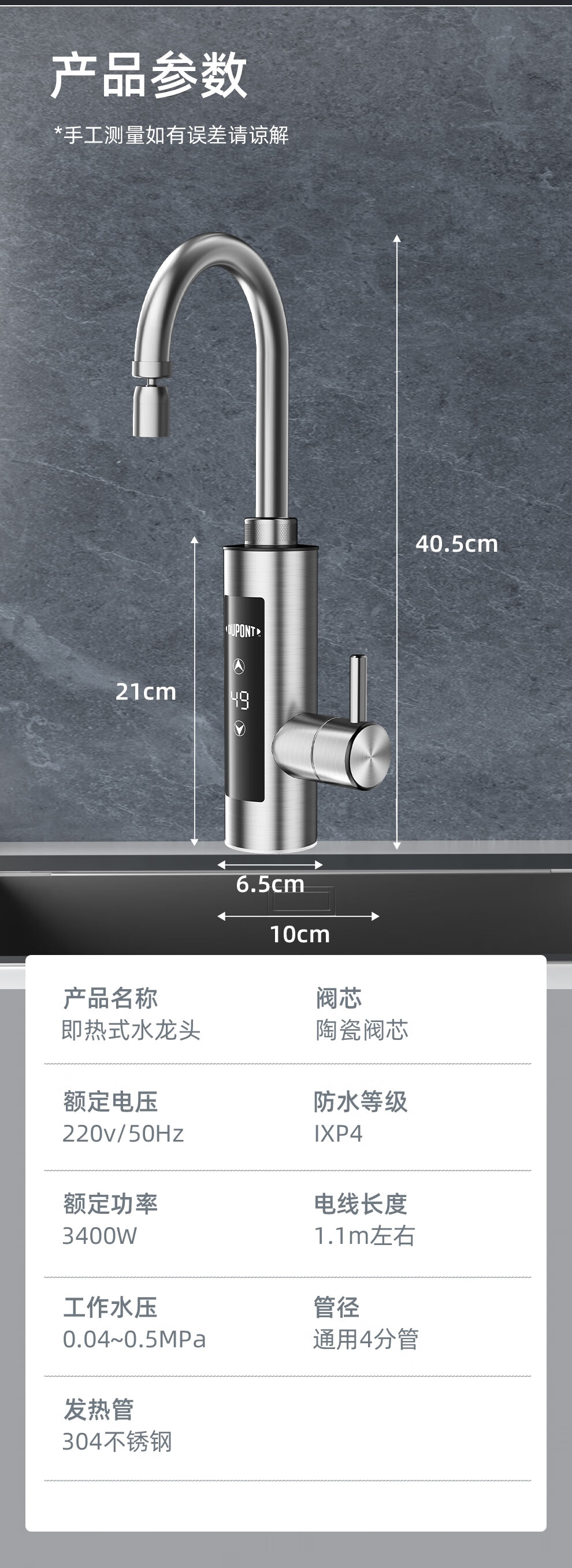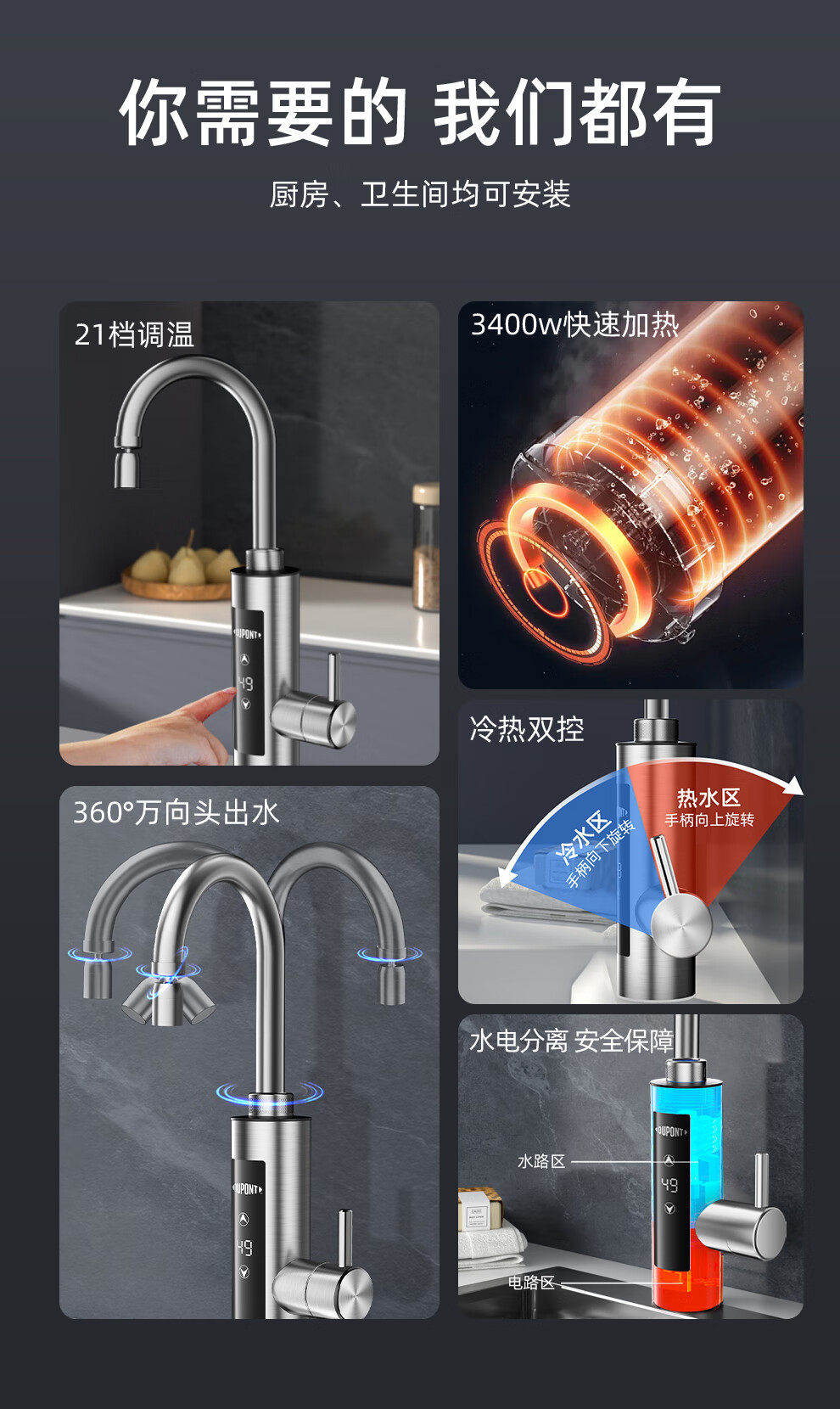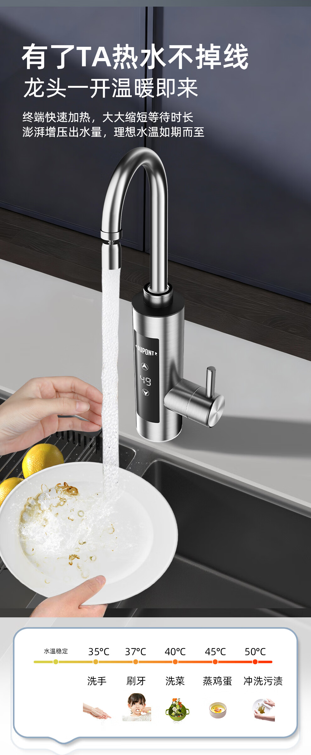 DuPont (DU PONT) DuPont electric hot water faucet variable frequency constant temperature instant water heater kitchen electric water heater BHW03F-34