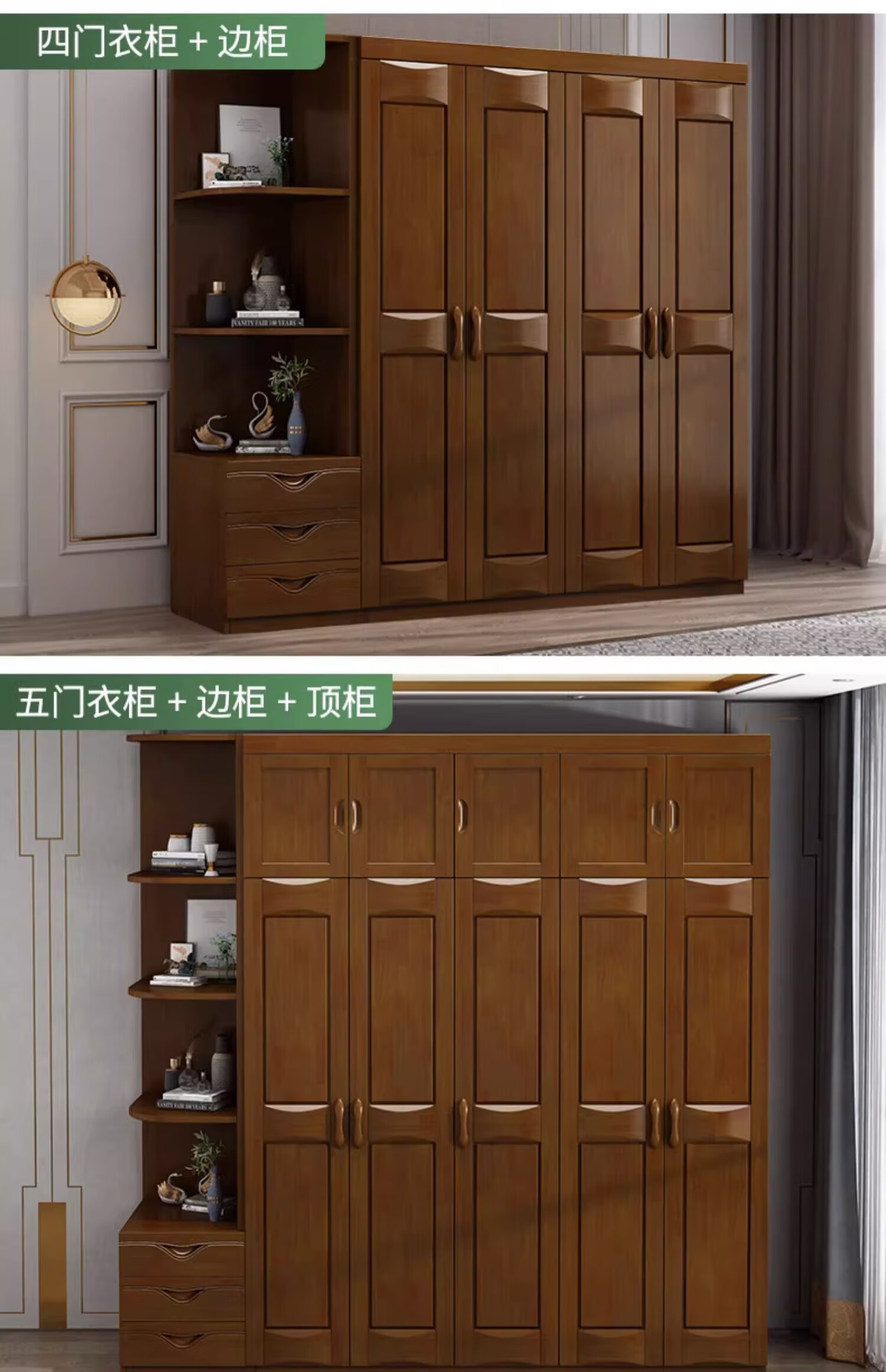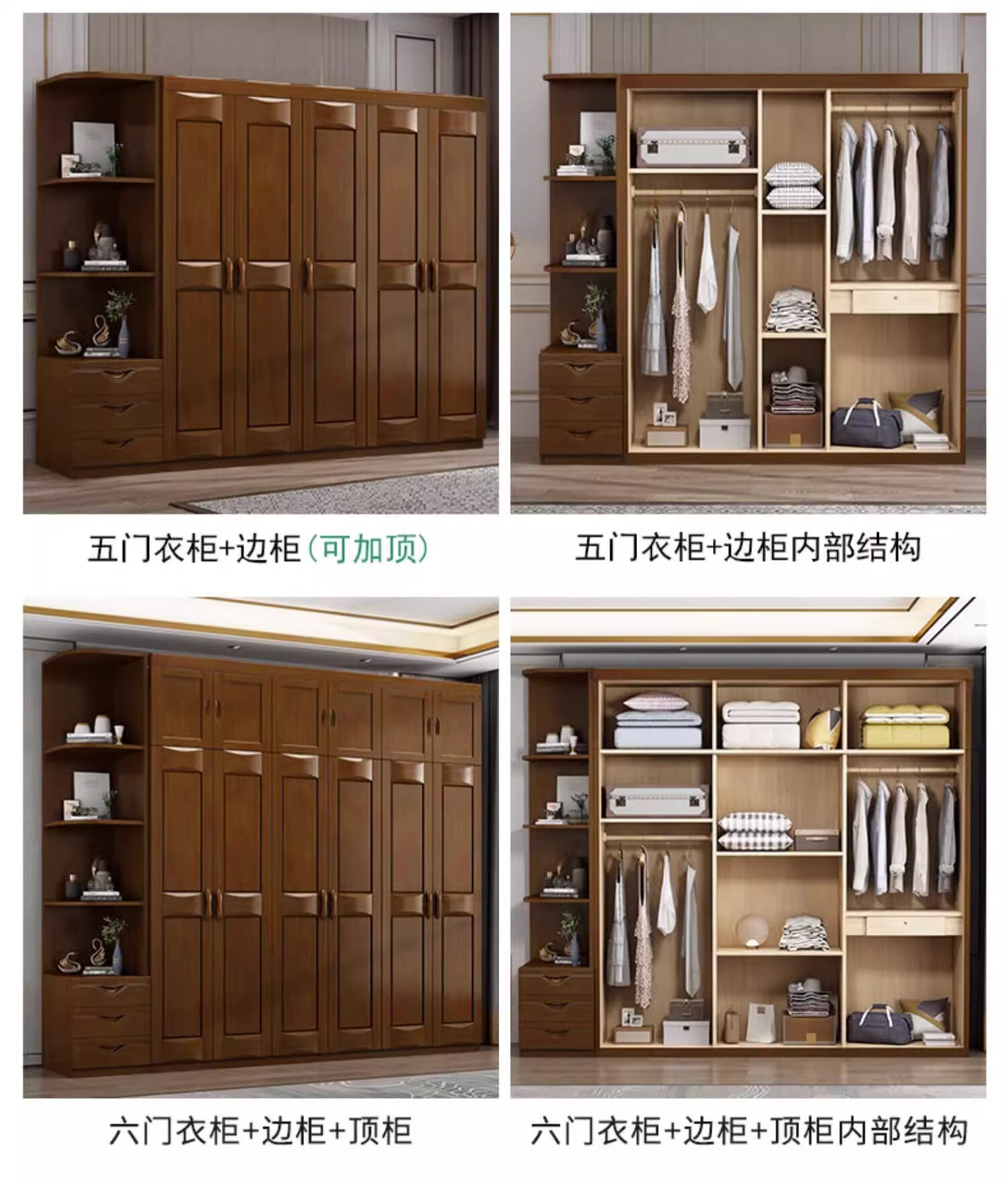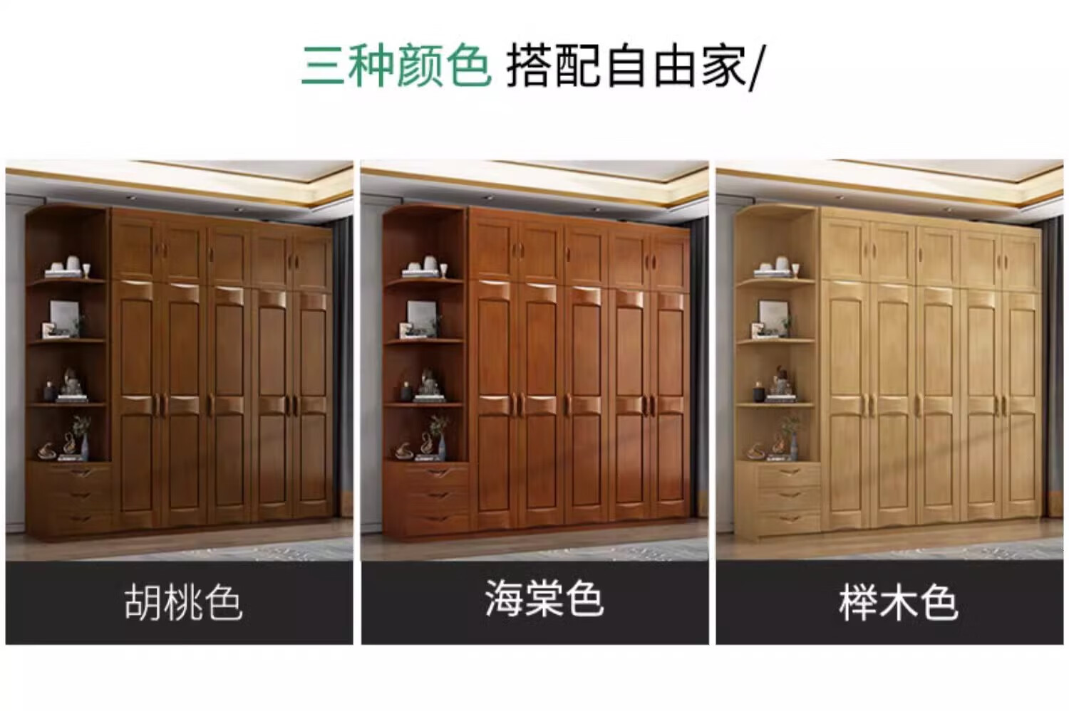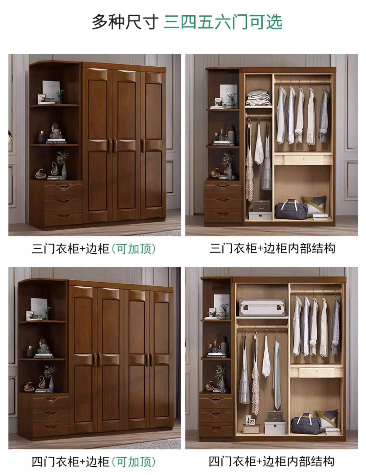 Jiangcheng walnut solid wood wardrobe double-door four-five-six-door modern Chinese-style bedroom can add a large wardrobe 8413K#