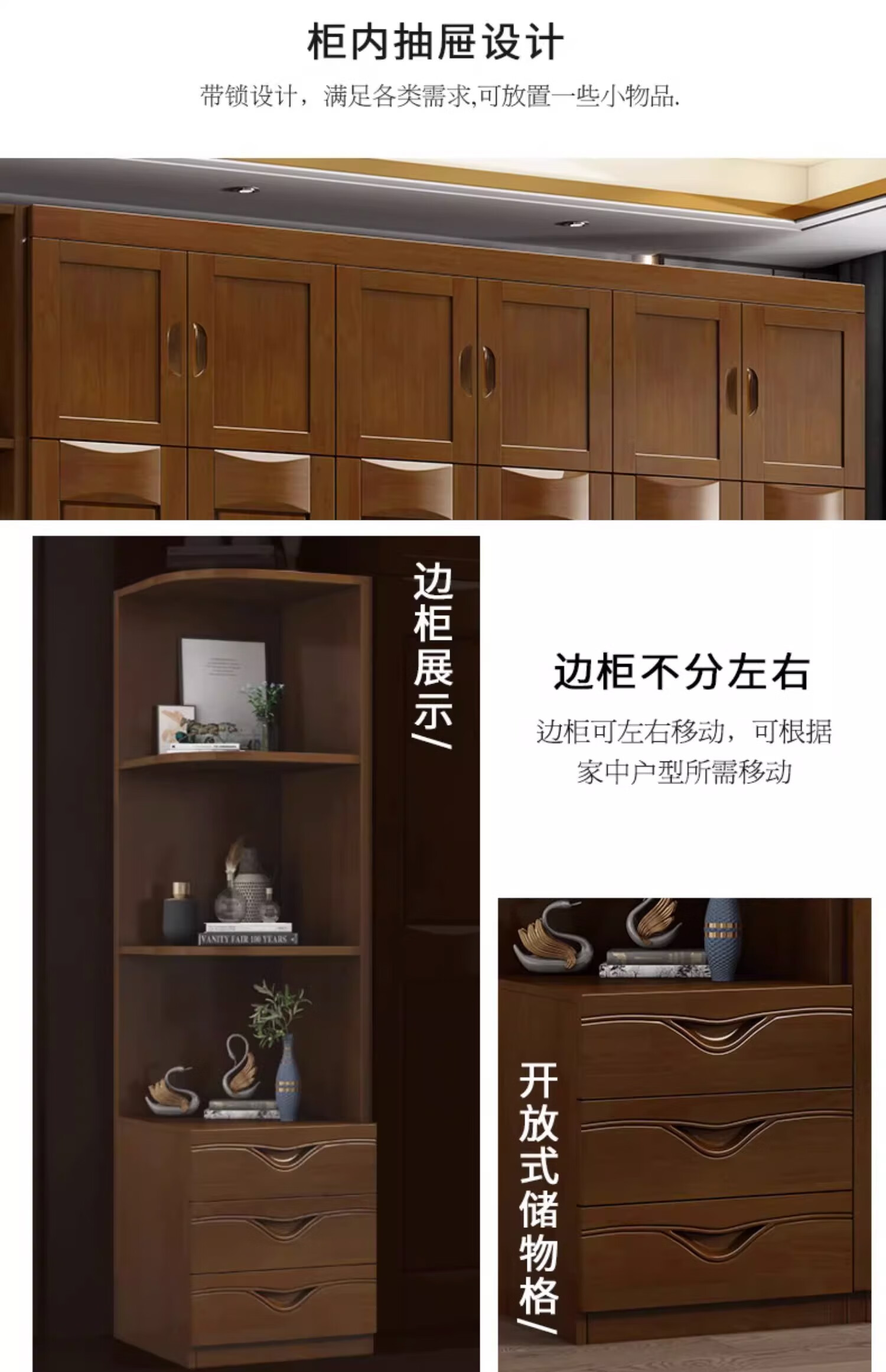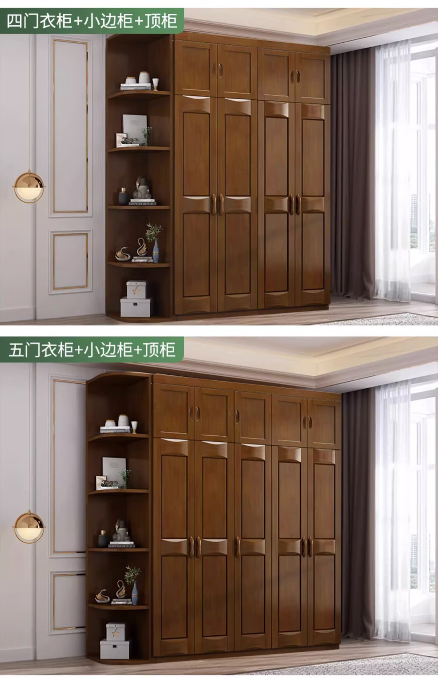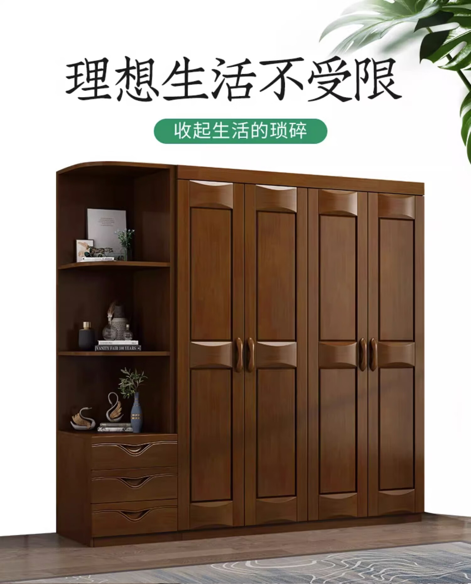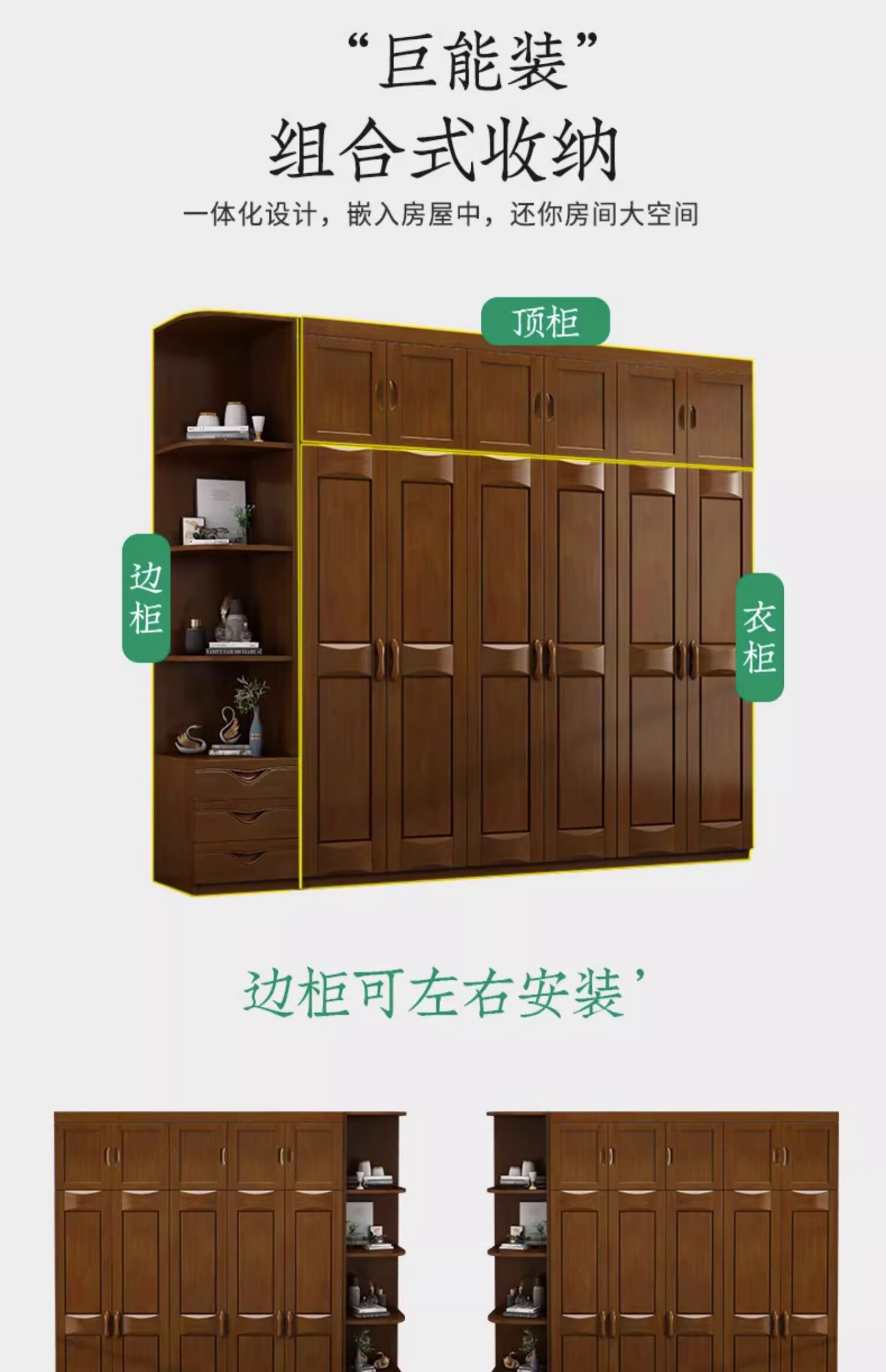 Jiangcheng walnut solid wood wardrobe double-door four-five-six-door modern Chinese-style bedroom can add a large wardrobe 8413K#