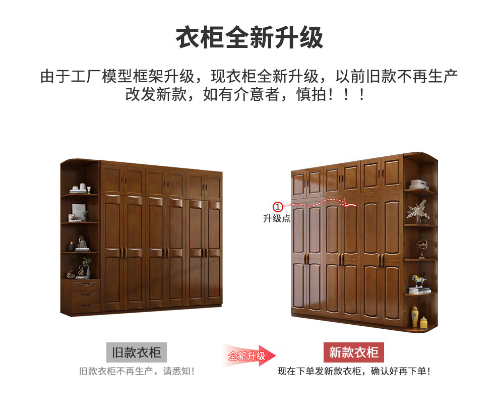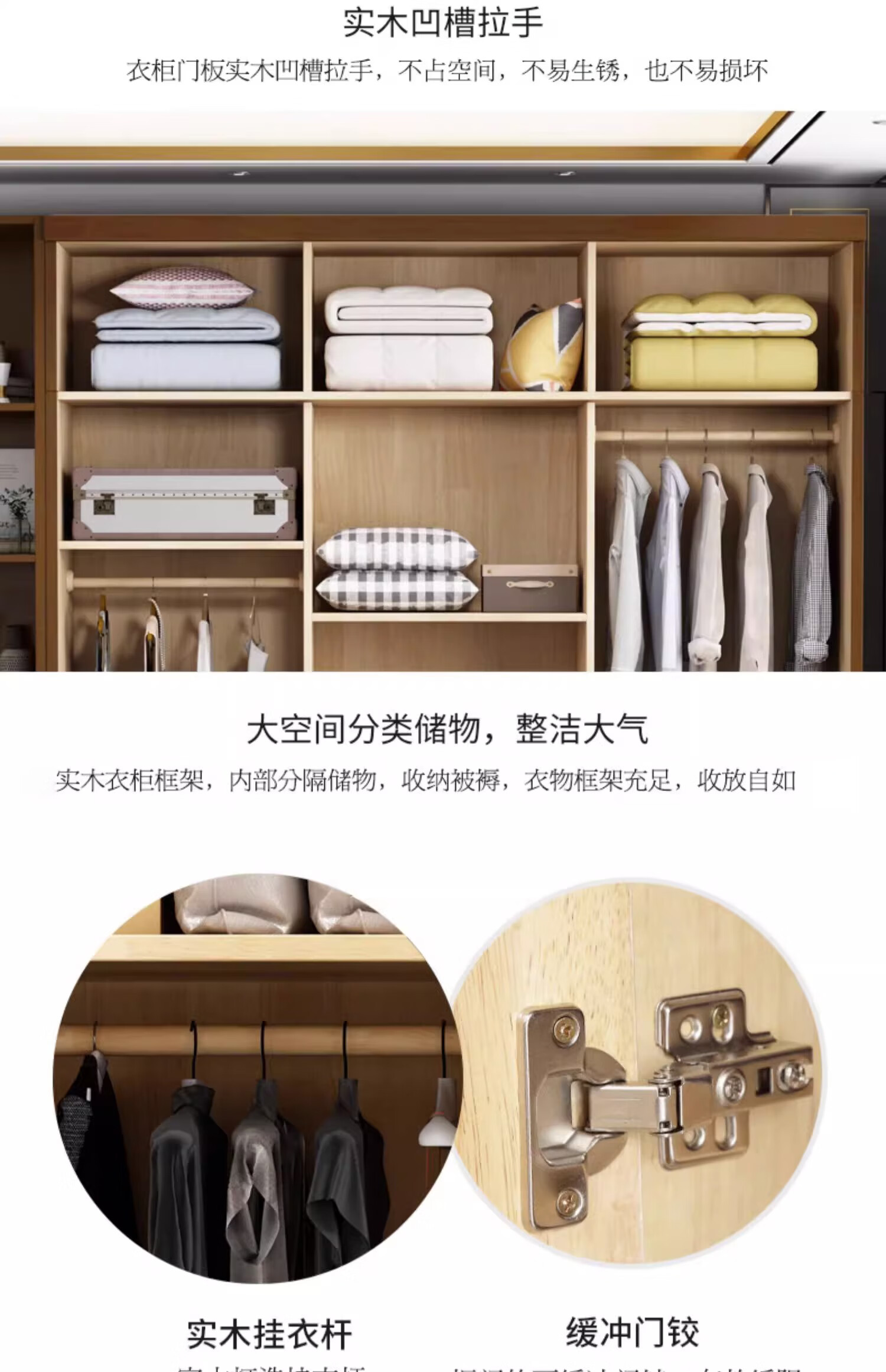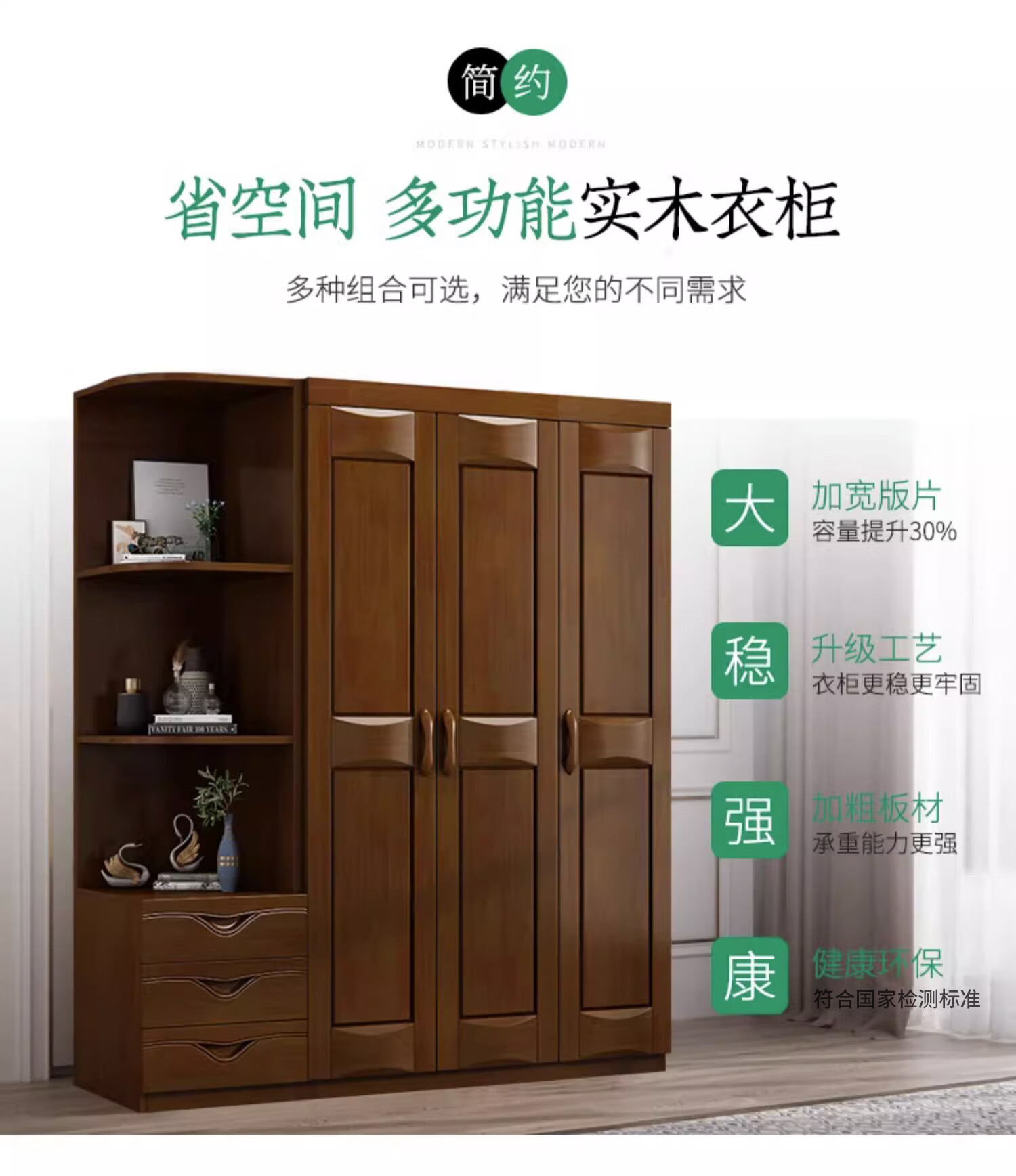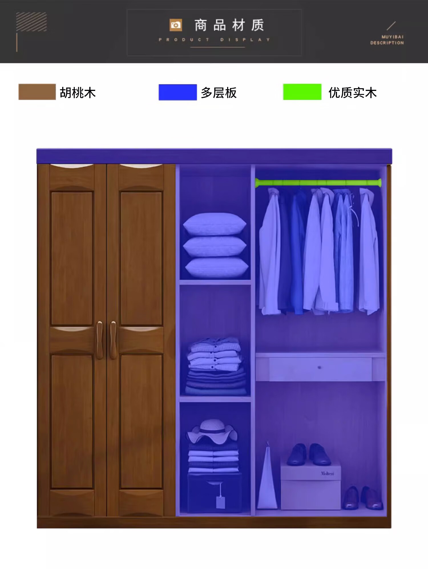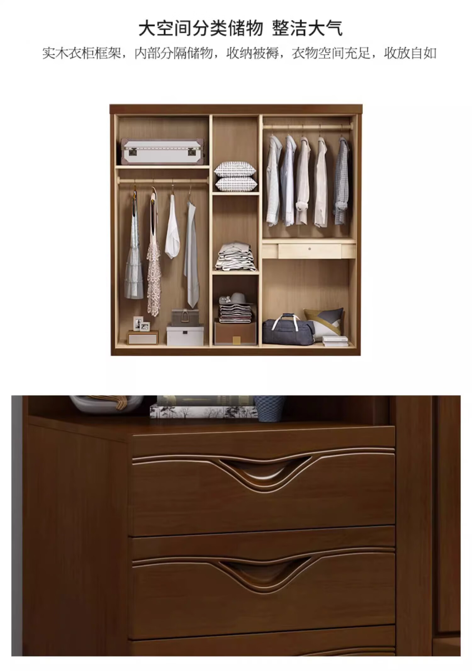 Jiangcheng walnut solid wood wardrobe double-door four-five-six-door modern Chinese-style bedroom can add a large wardrobe 8413K#
